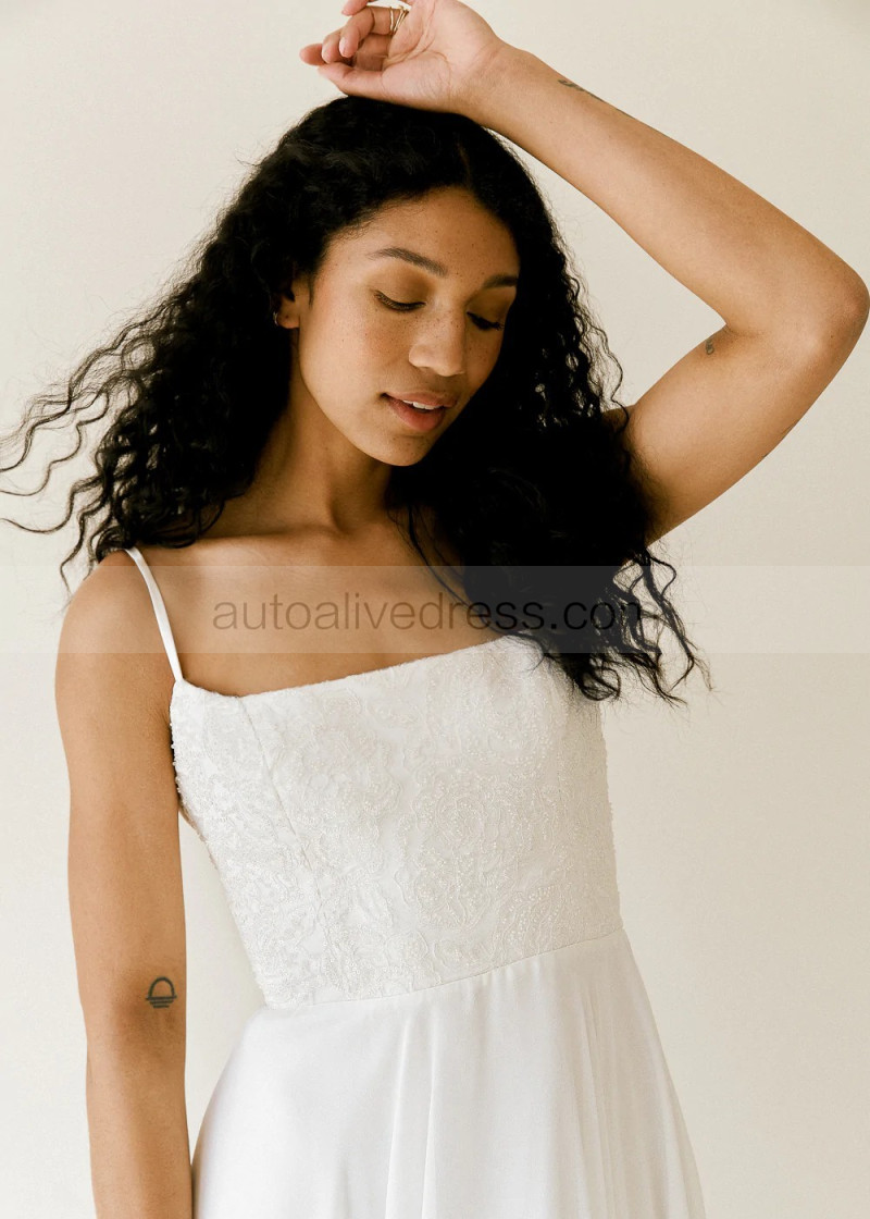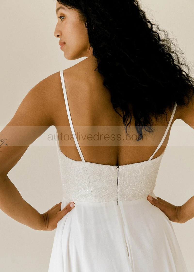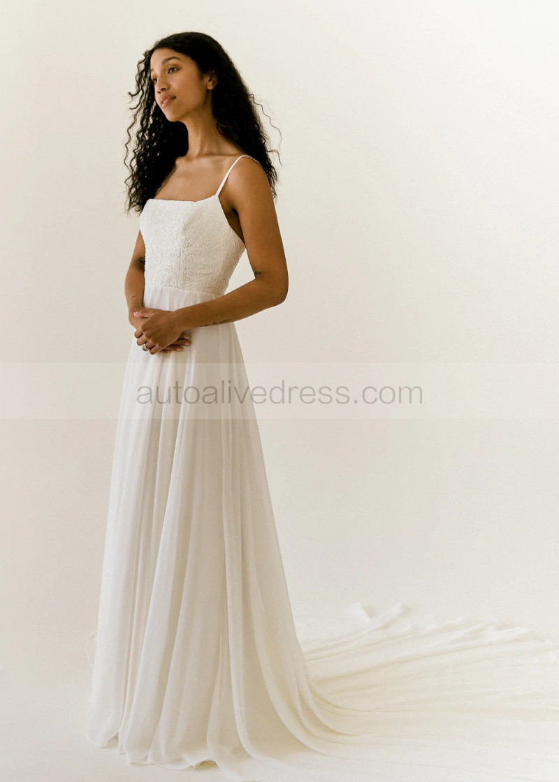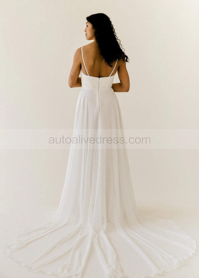 Ivory Embroidered Lace Chiffon Romantic Wedding Dress