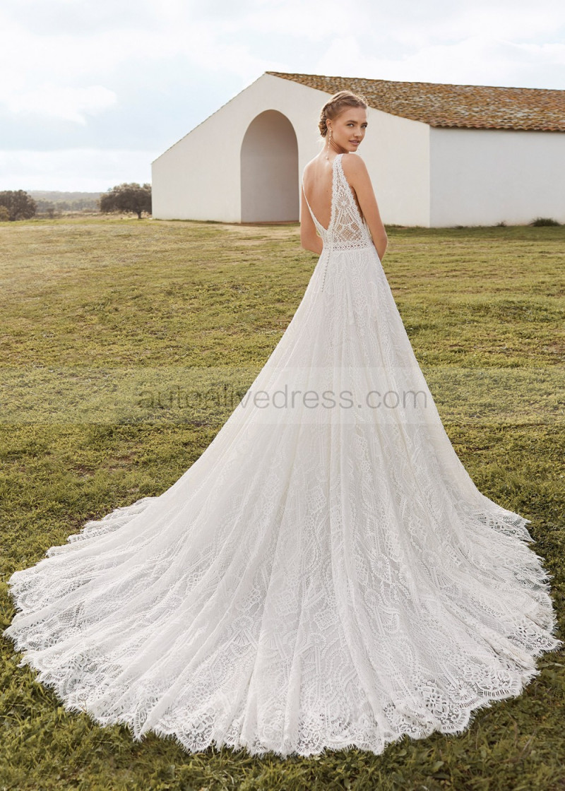 Ivory Eyelash Lace Gorgeous Cathedral Wedding Dress