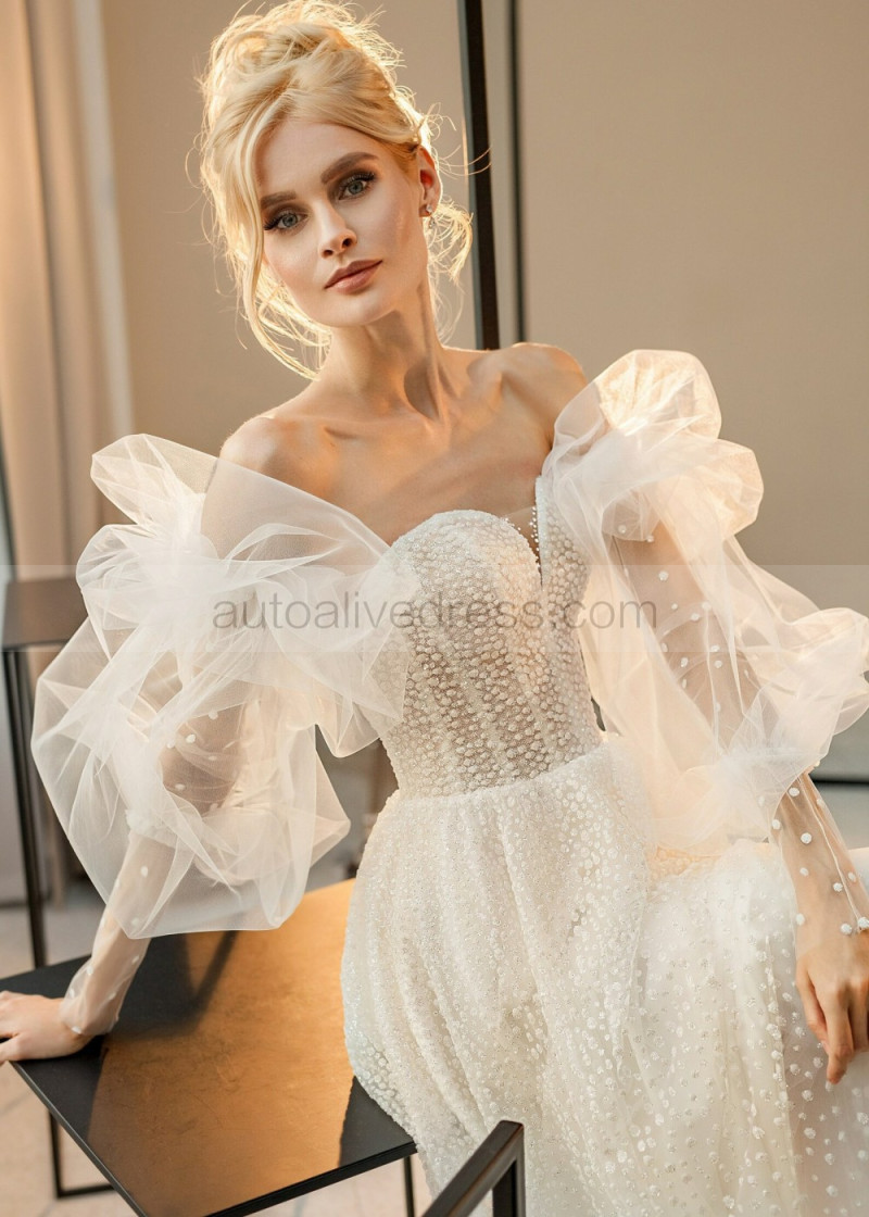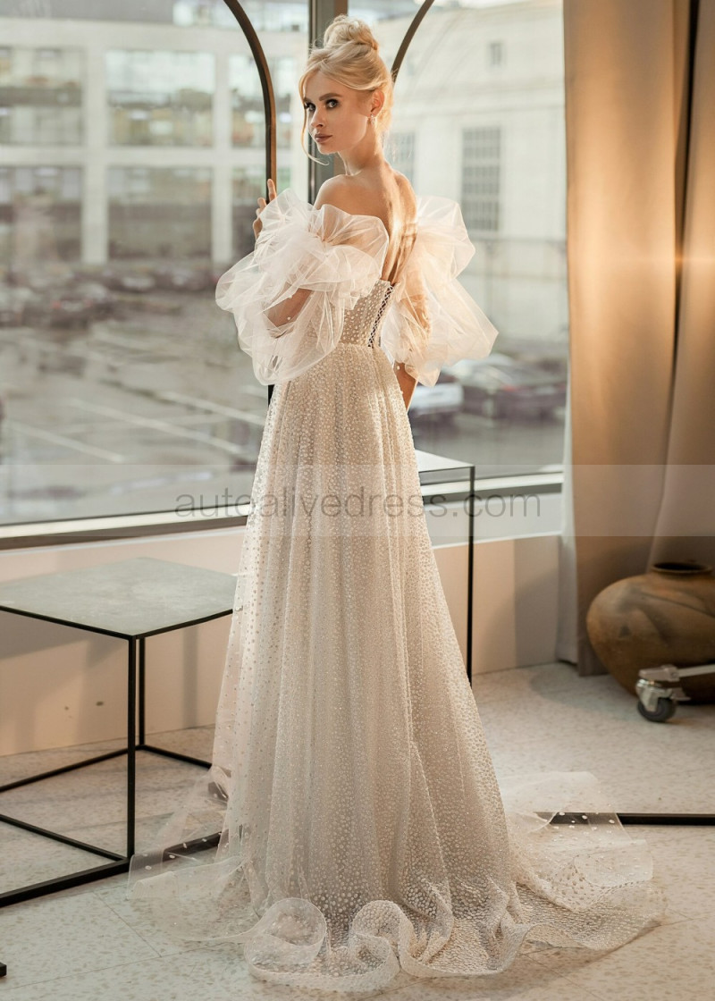 Ivory Glitter Lace Wedding Dress With Detachable Sleeves