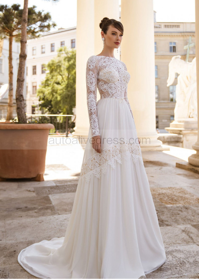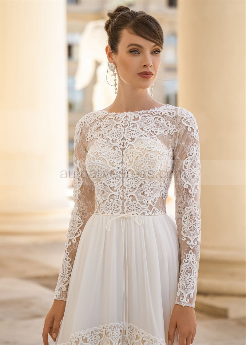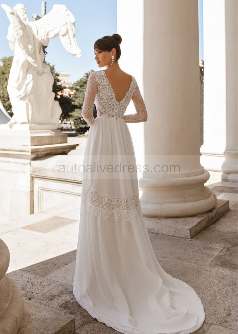 Ivory Lace Chiffon Boho Beach Wedding Dress