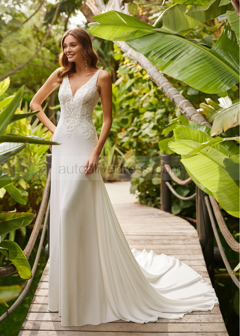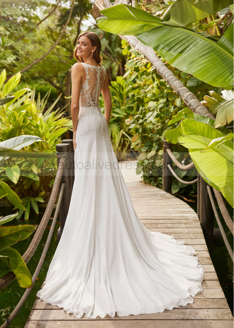 Ivory Lace Chiffon Illusion Back Unique Wedding Dress