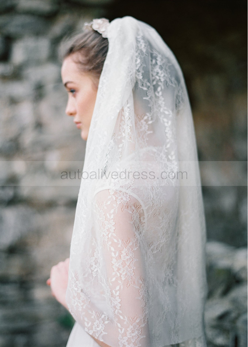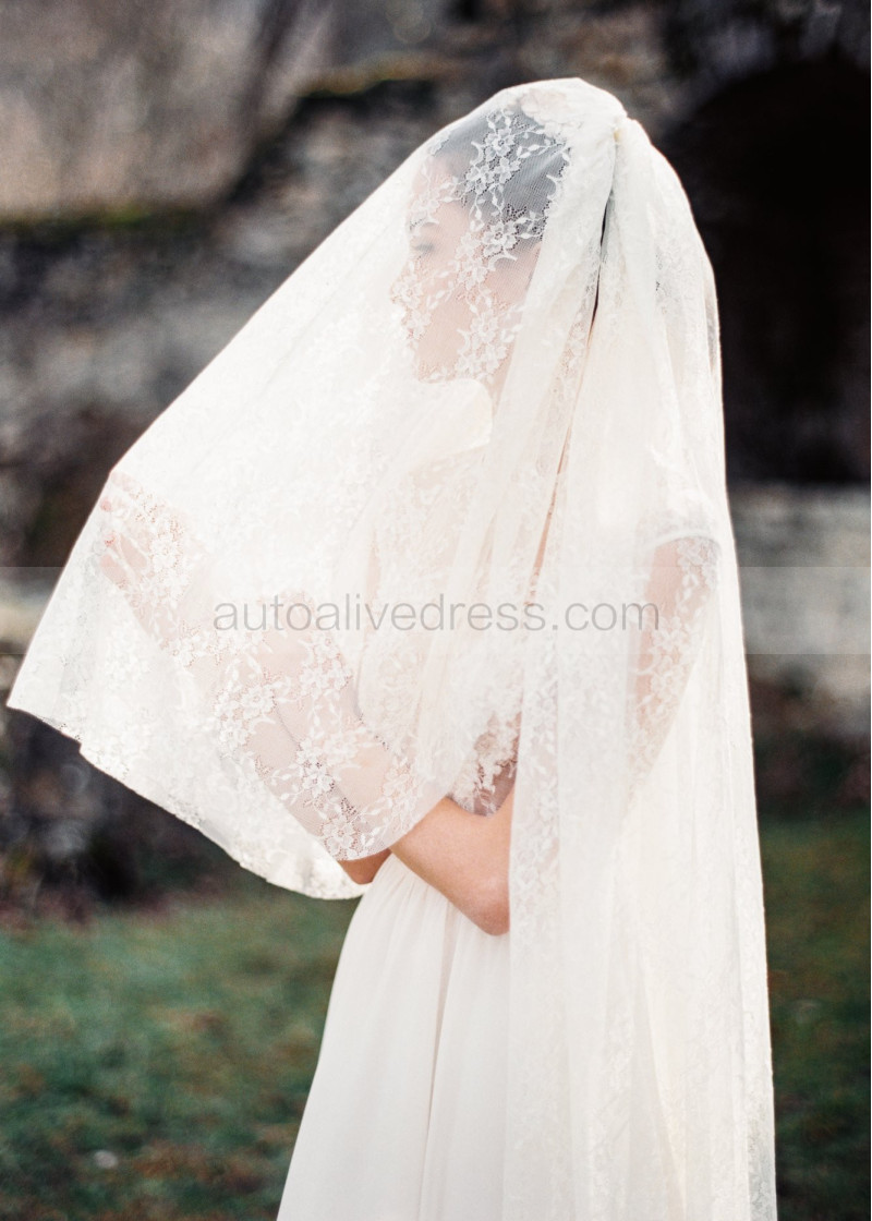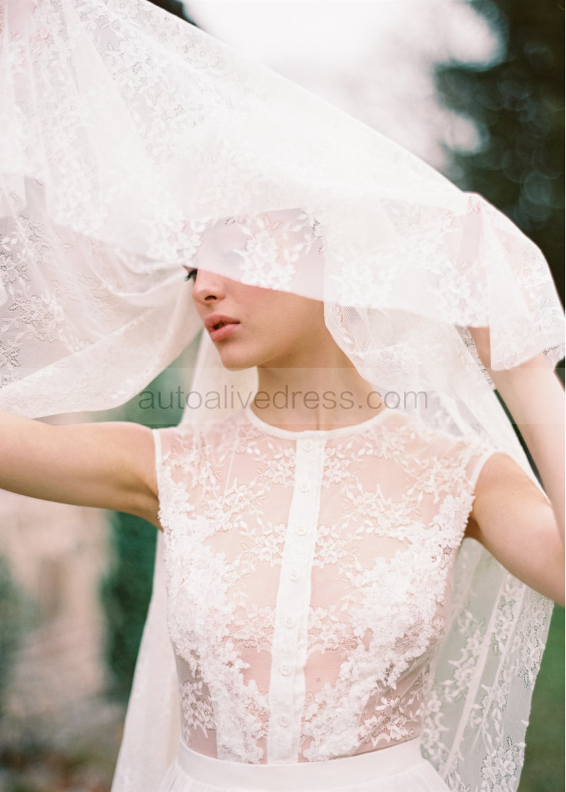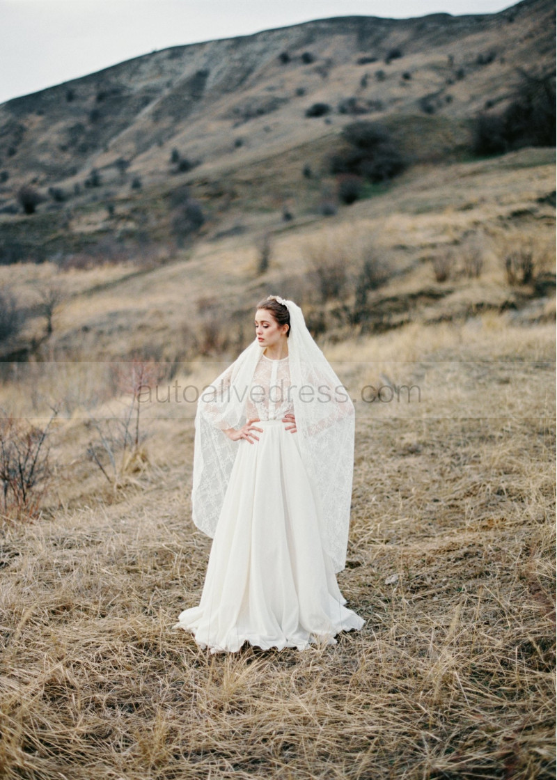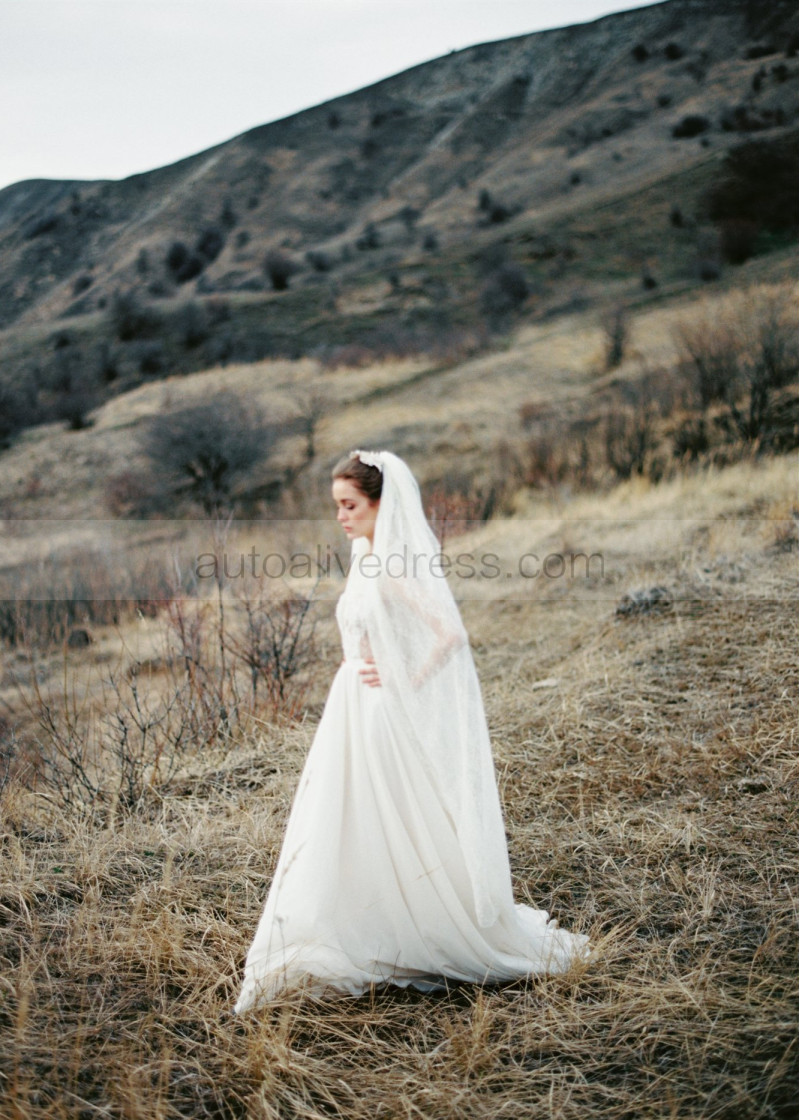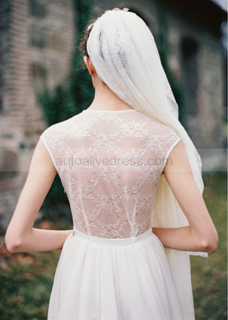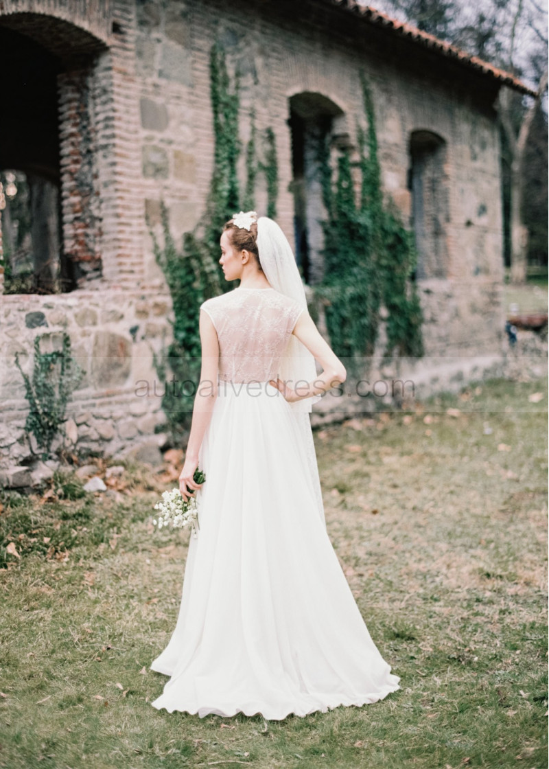Ivory Lace Chiffon Illusion Back Wedding Dress