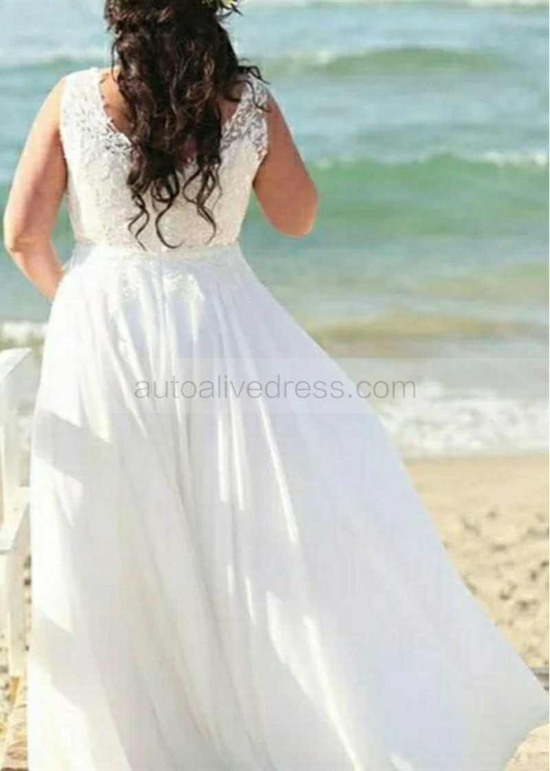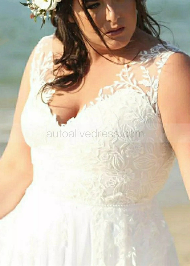 Ivory Lace Chiffon Plus Size Wedding Dress