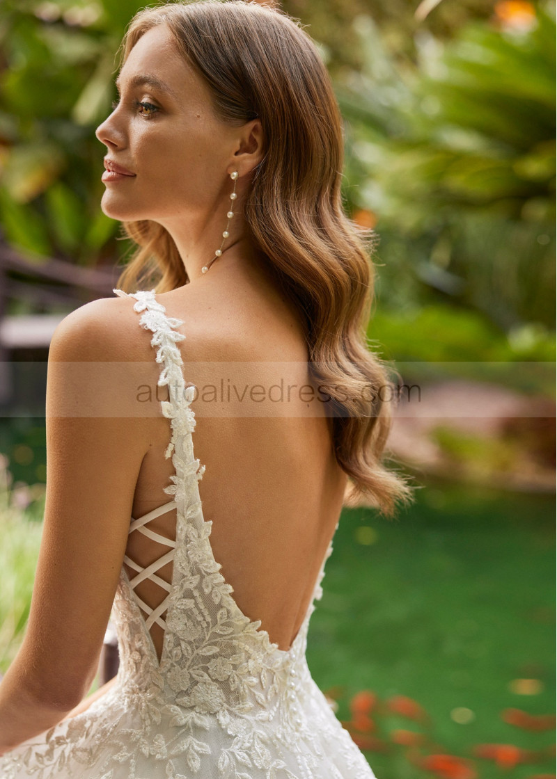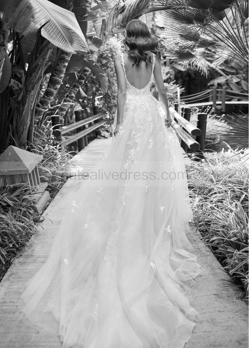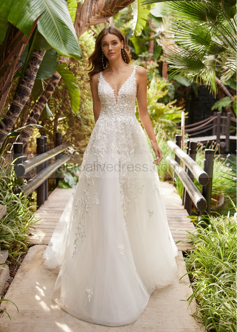 Ivory Lace Glitter Tulle Open Back Top Fashion Wedding Dress