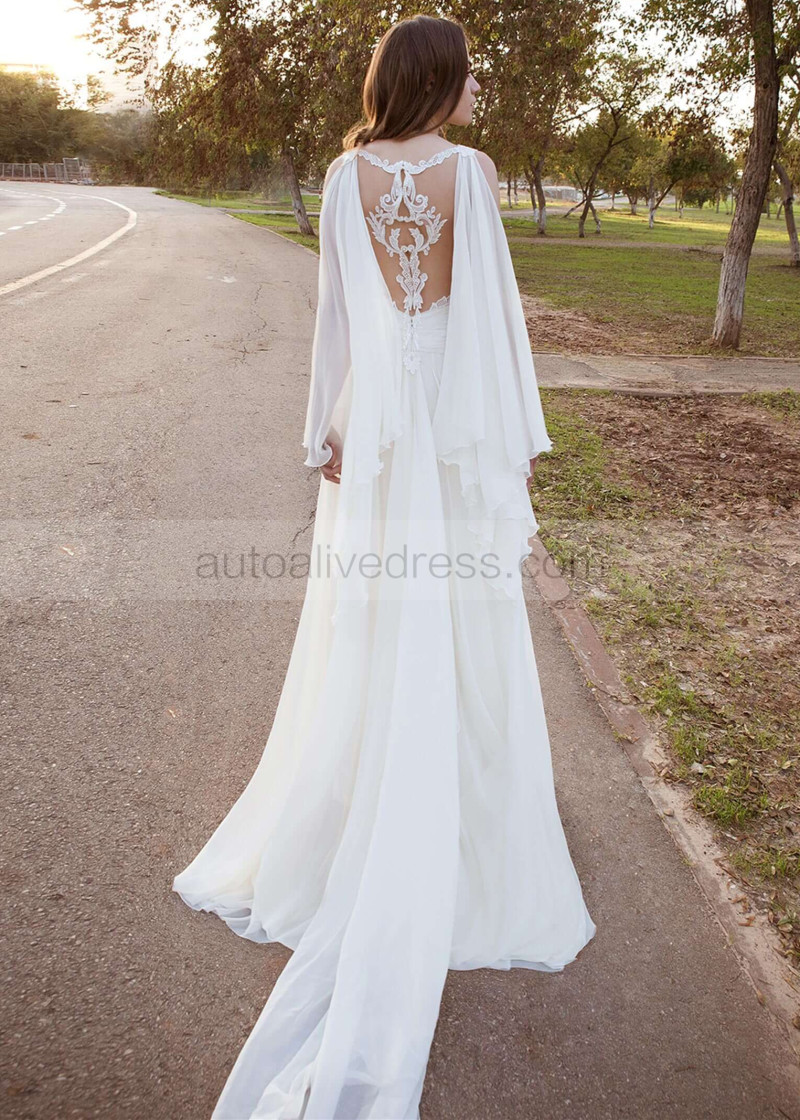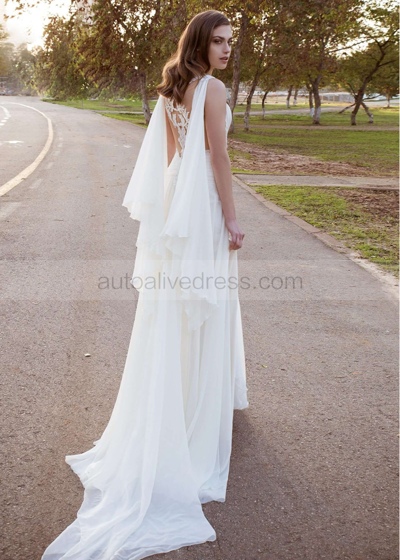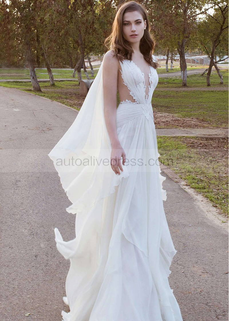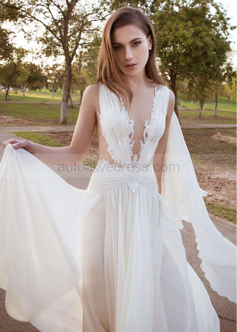 Ivory Lace Pleated Chiffon Sexy Wedding Dress