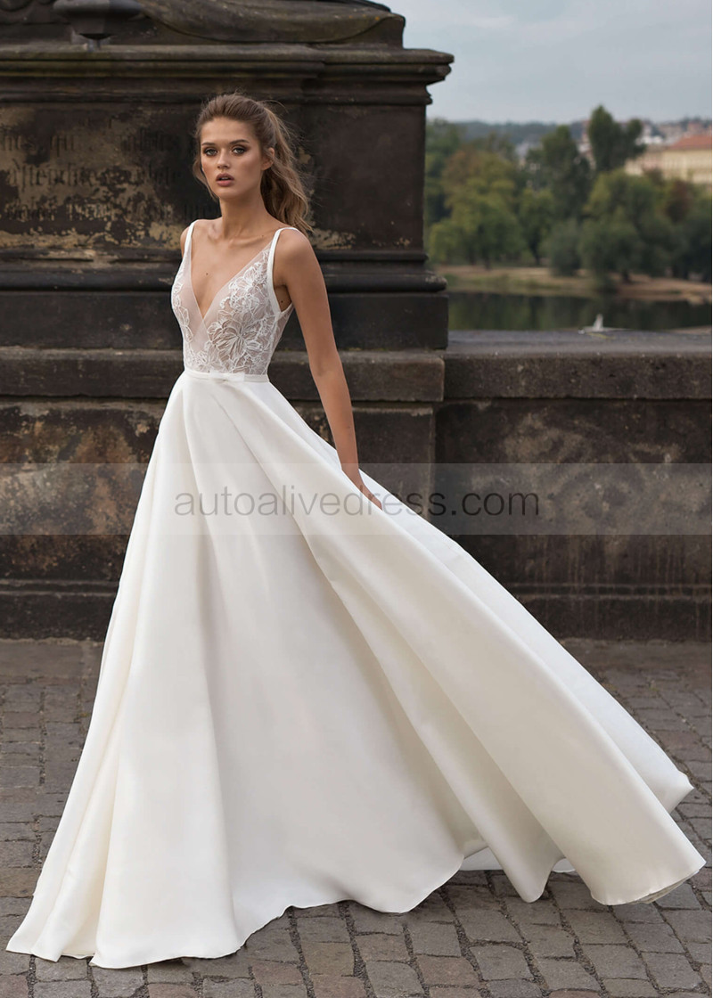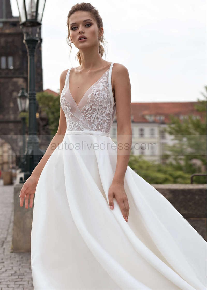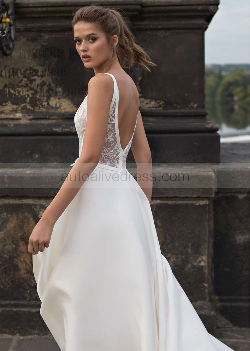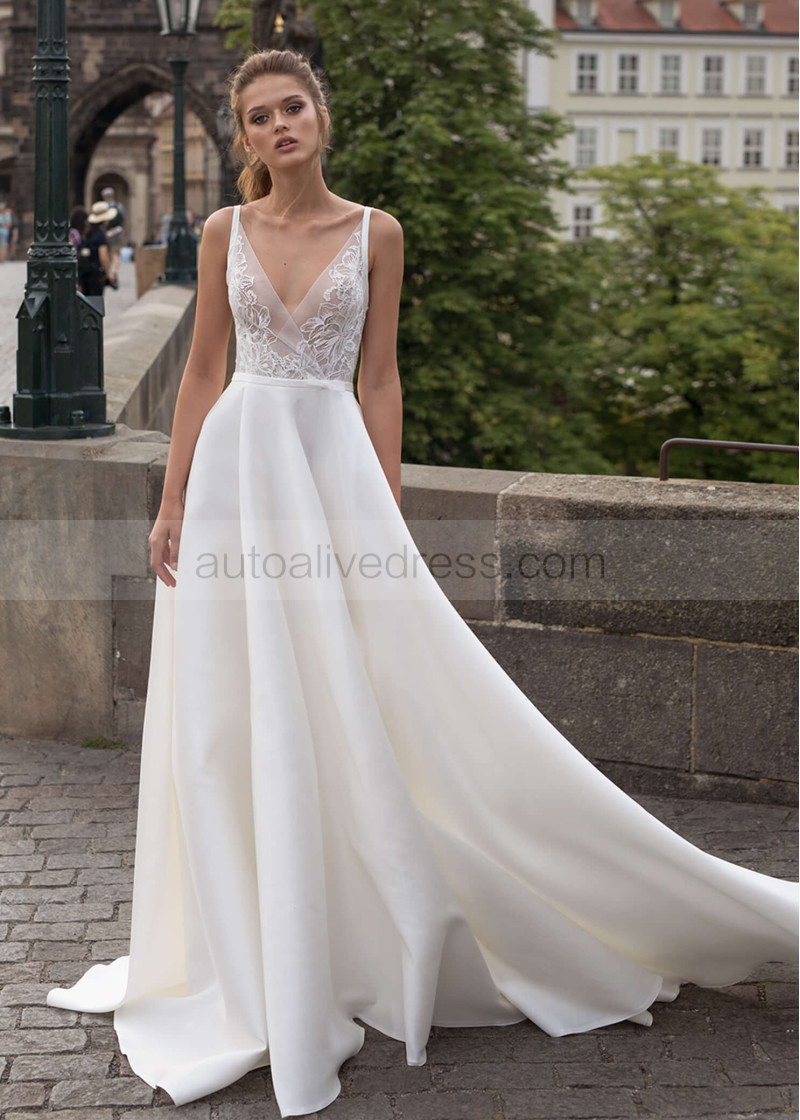 Ivory Lace Taffeta Wrapped Wedding Dress