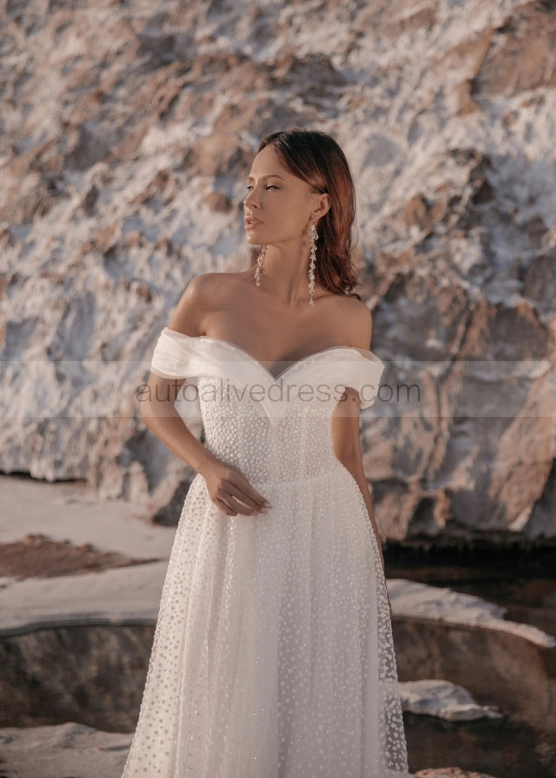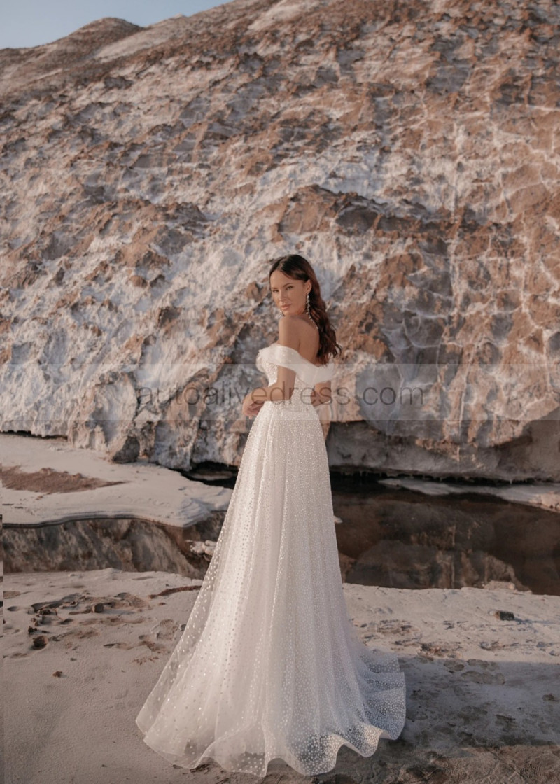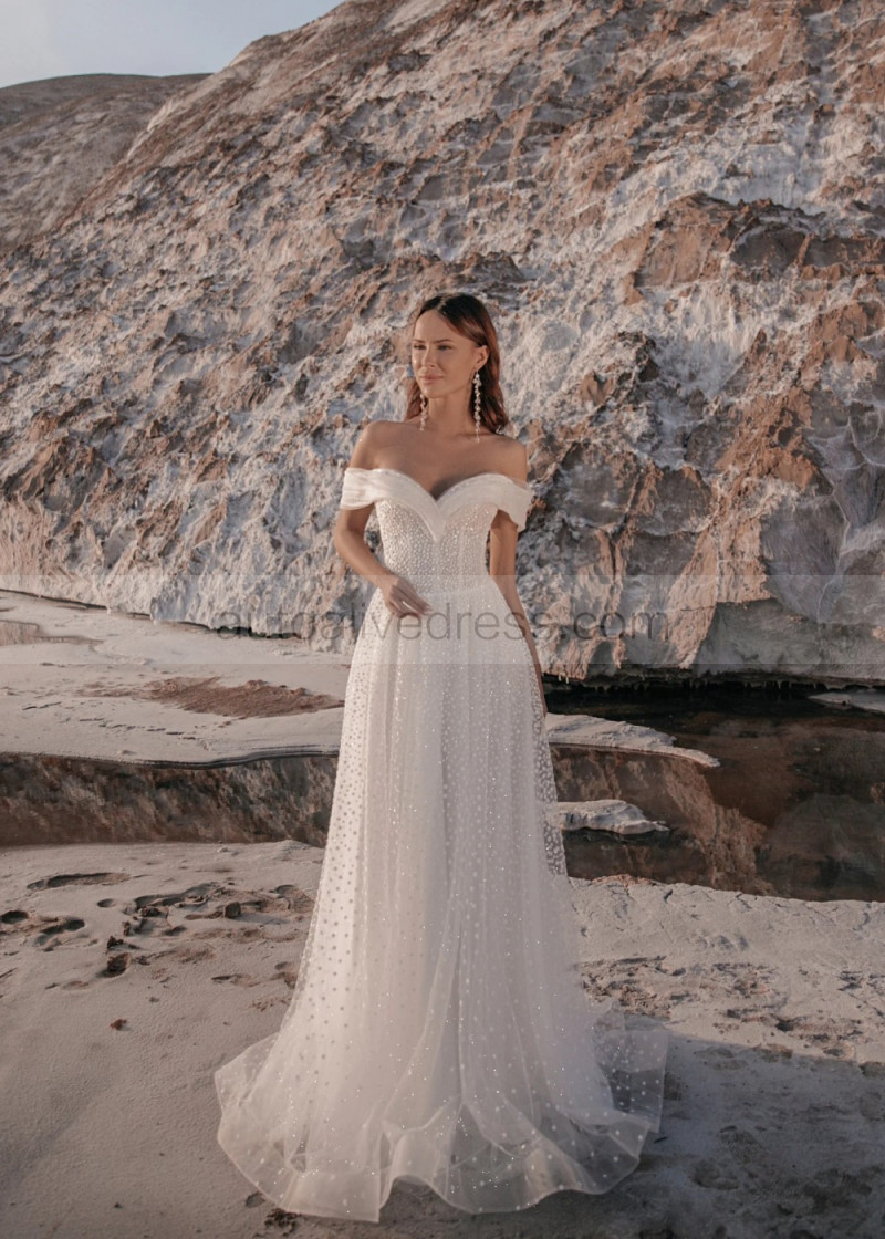 Ivory Lace Tulle Chic Wedding Dress With Removable Train