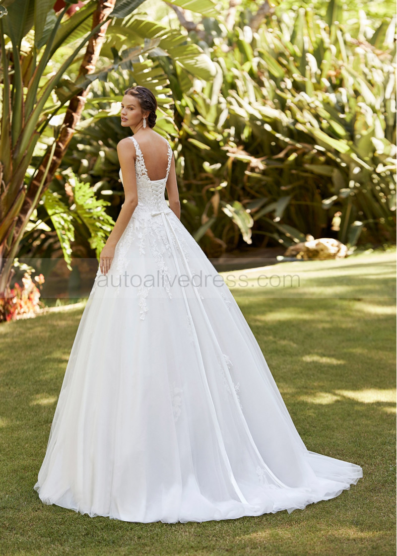 Ivory Lace Tulle Corset Back Elegant Wedding Dress
