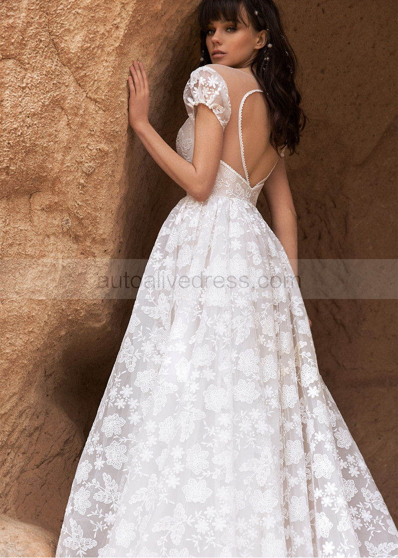 Ivory Lace Tulle Heart-shaped Back Elegant Wedding Dress