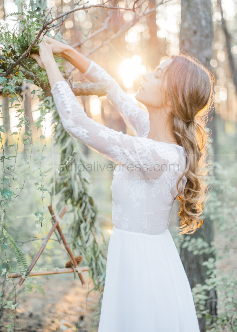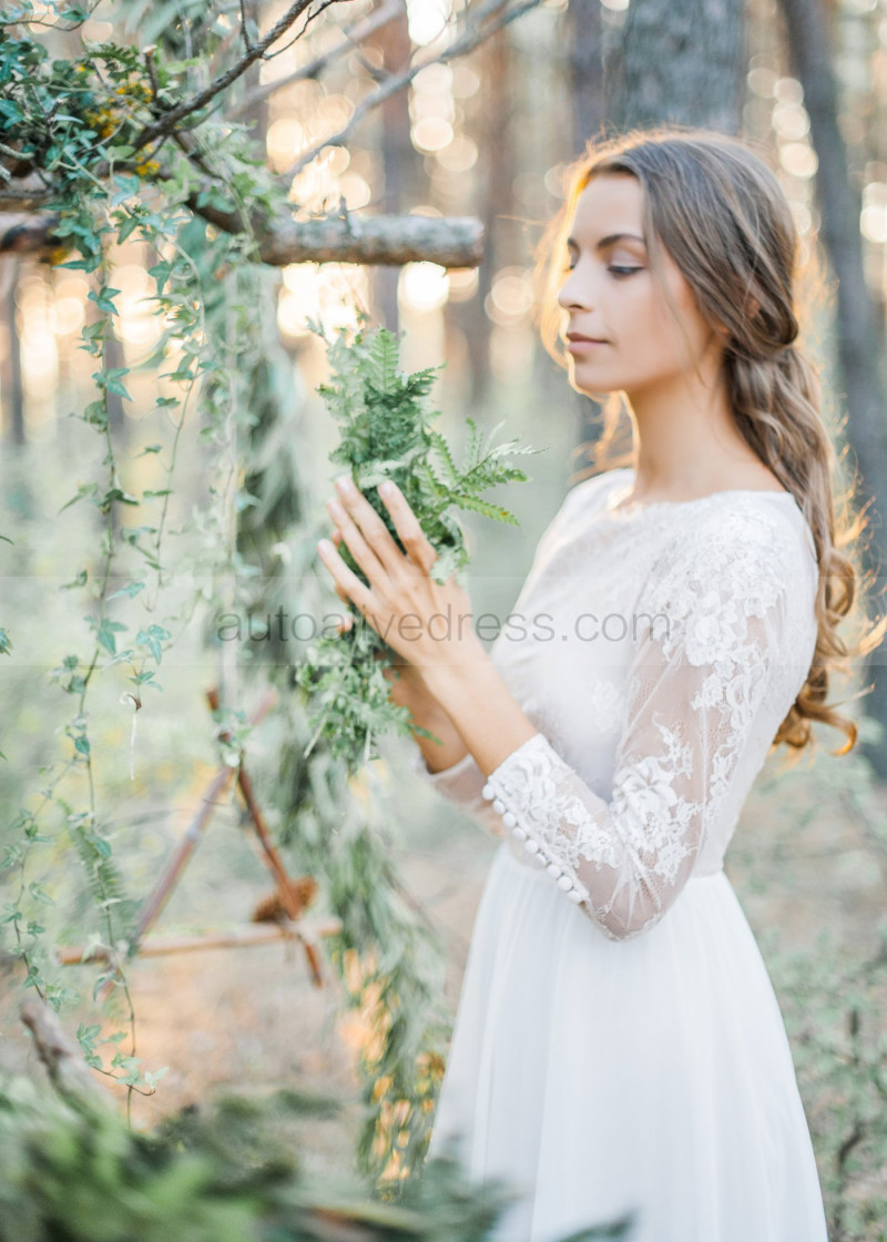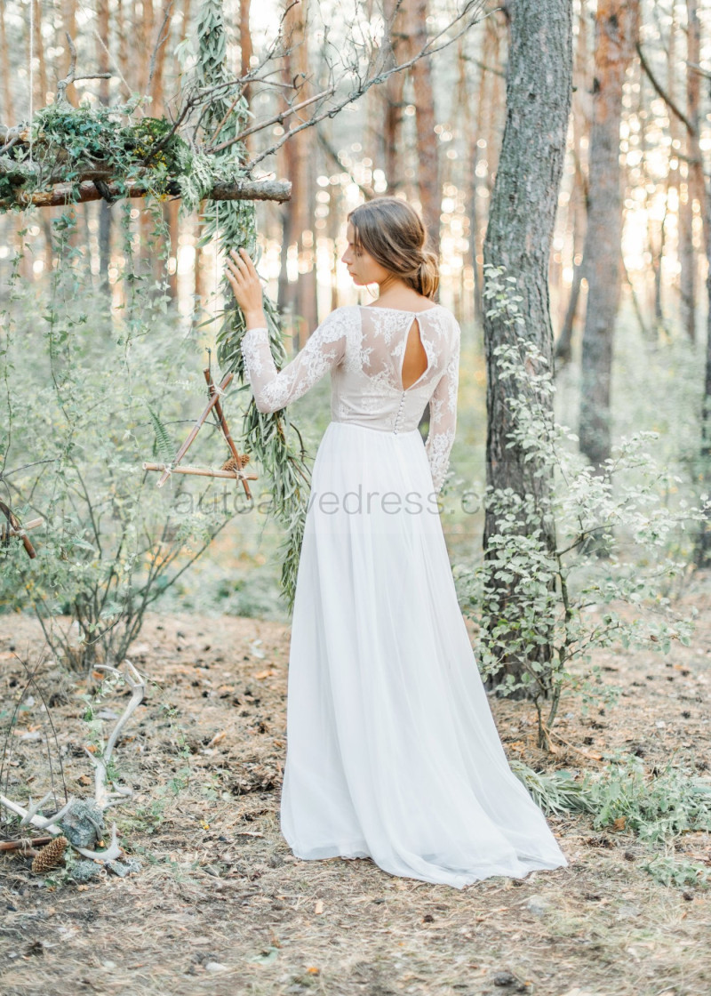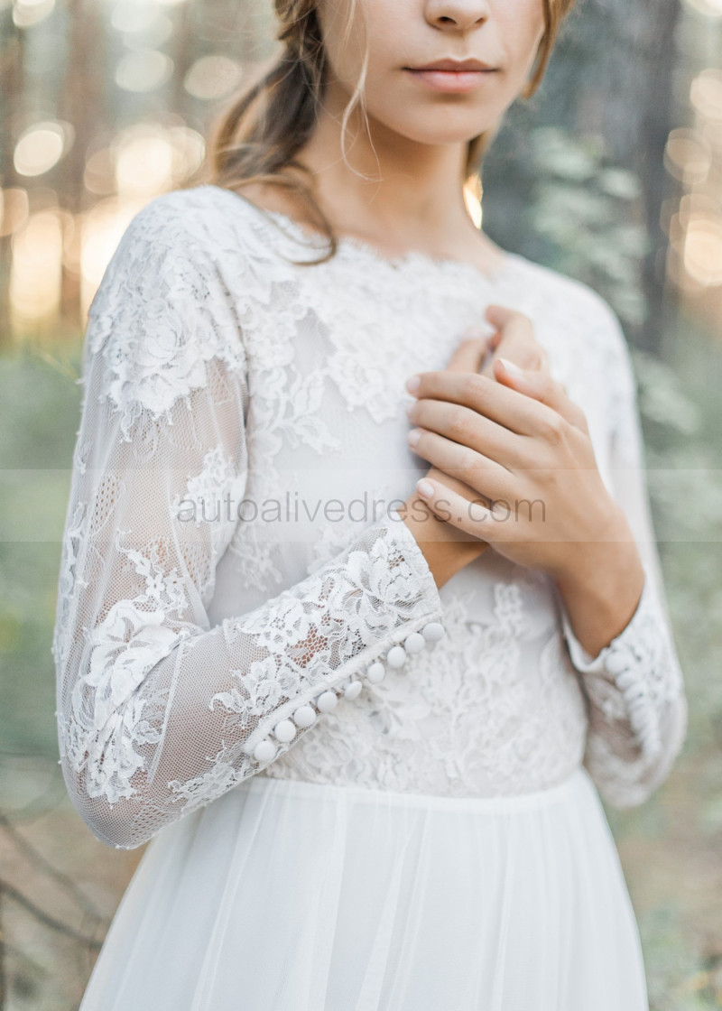 Ivory Lace Tulle Keyhole Back Wedding Dress
