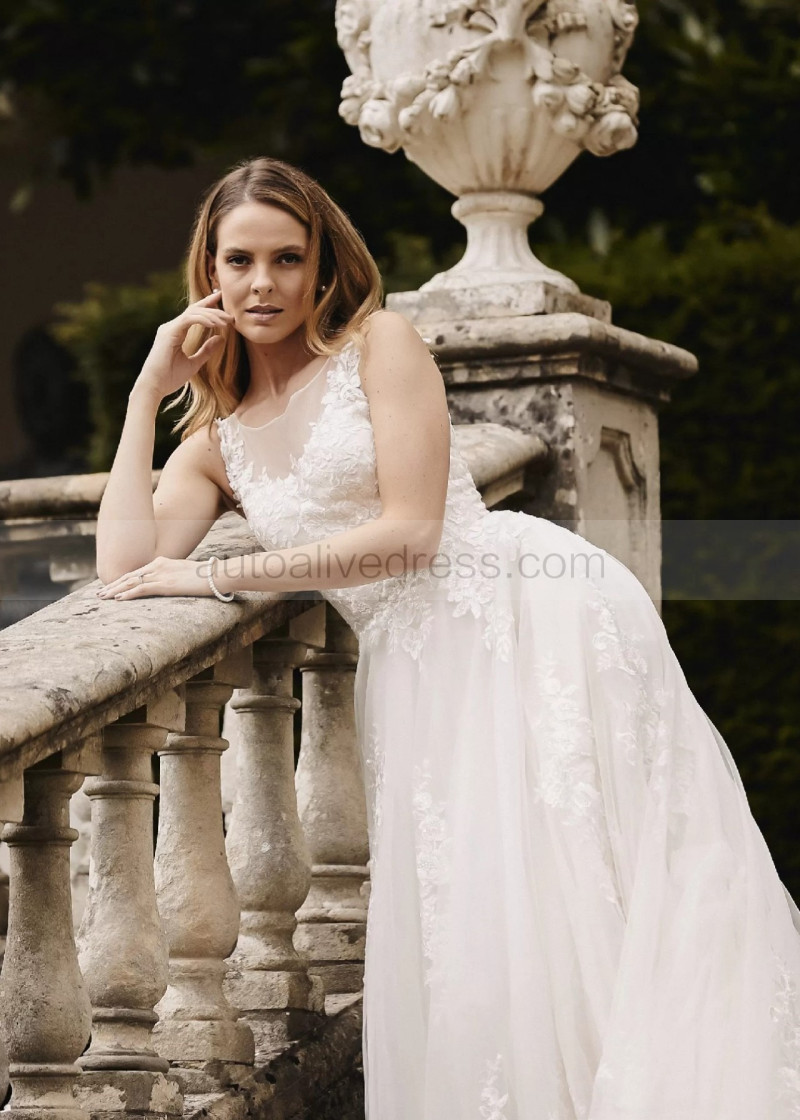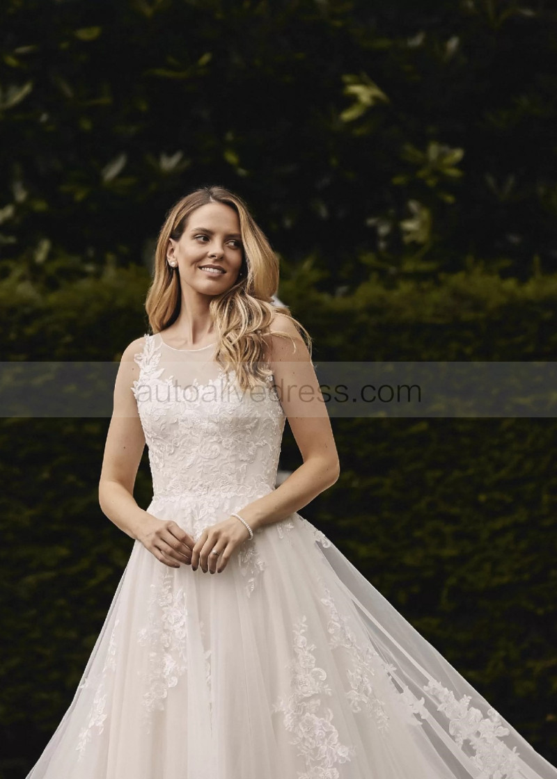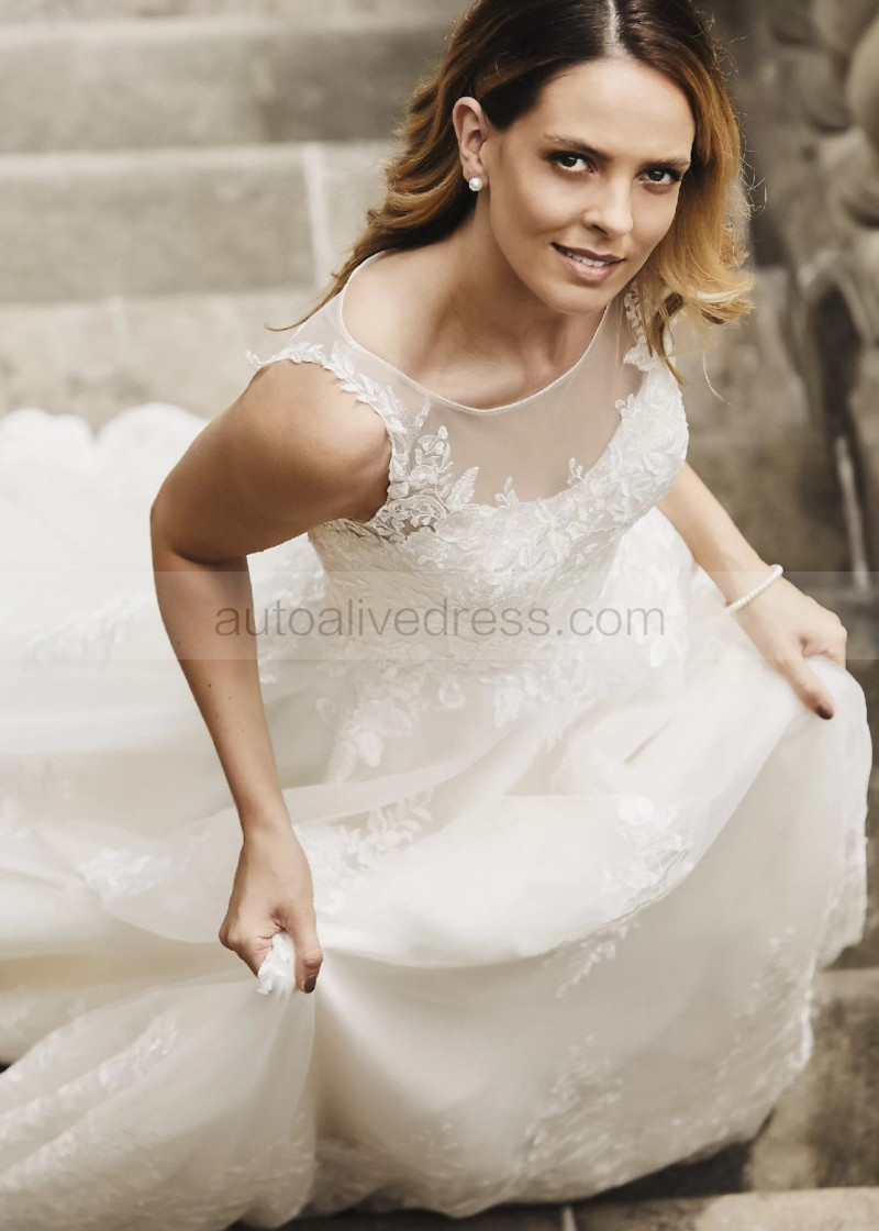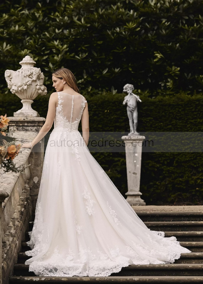 Ivory Lace Tulle Sheer Buttons Back Latest Wedding Dress