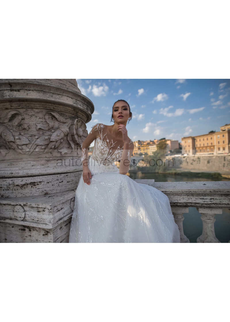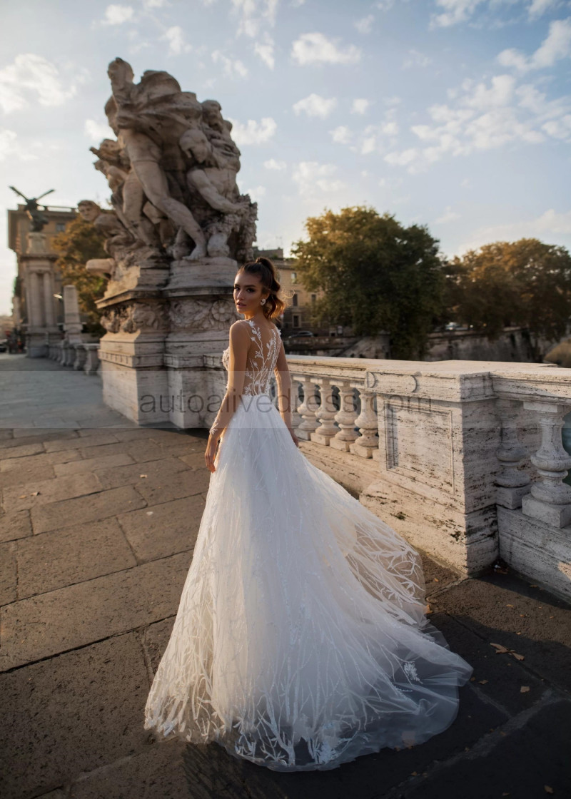 Ivory Lace Tulle Sparkly Sexy Wedding Dress