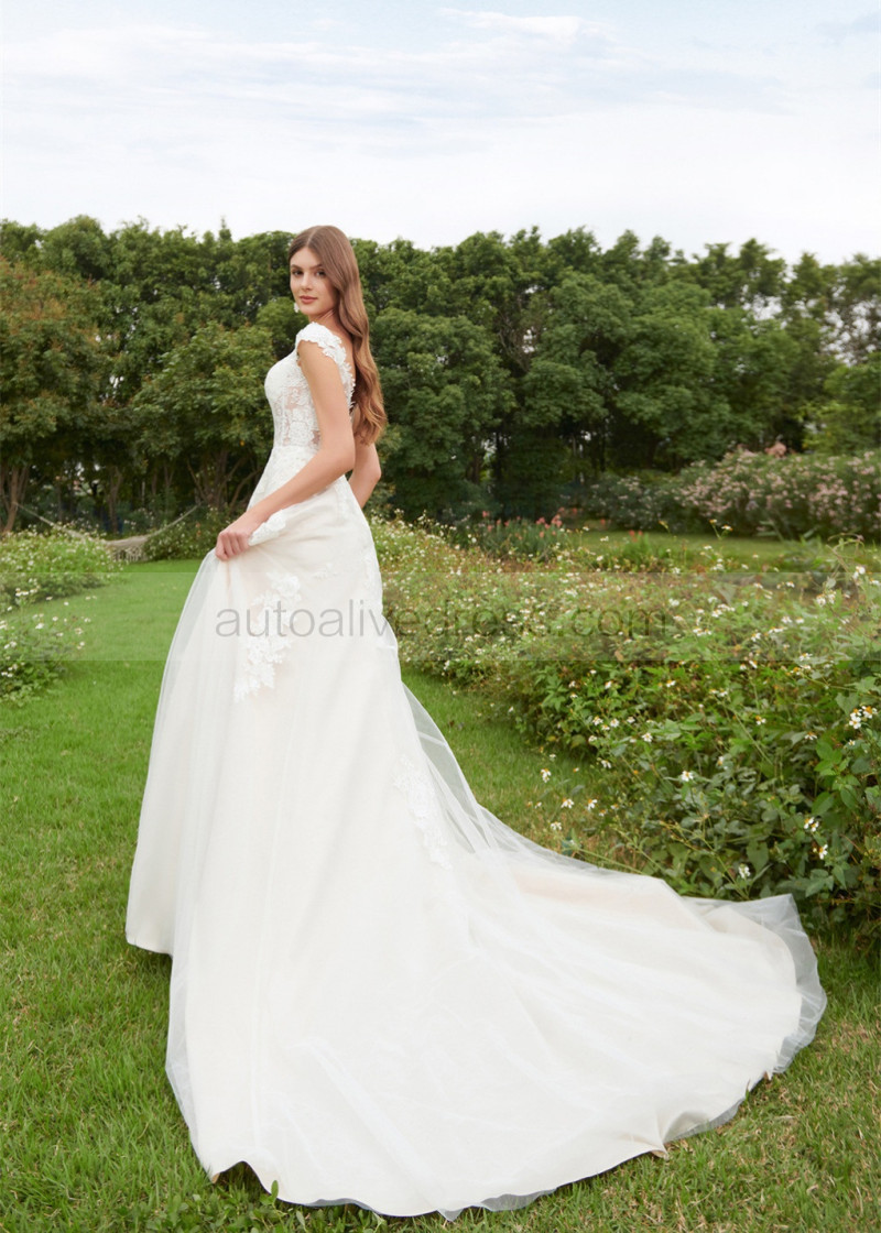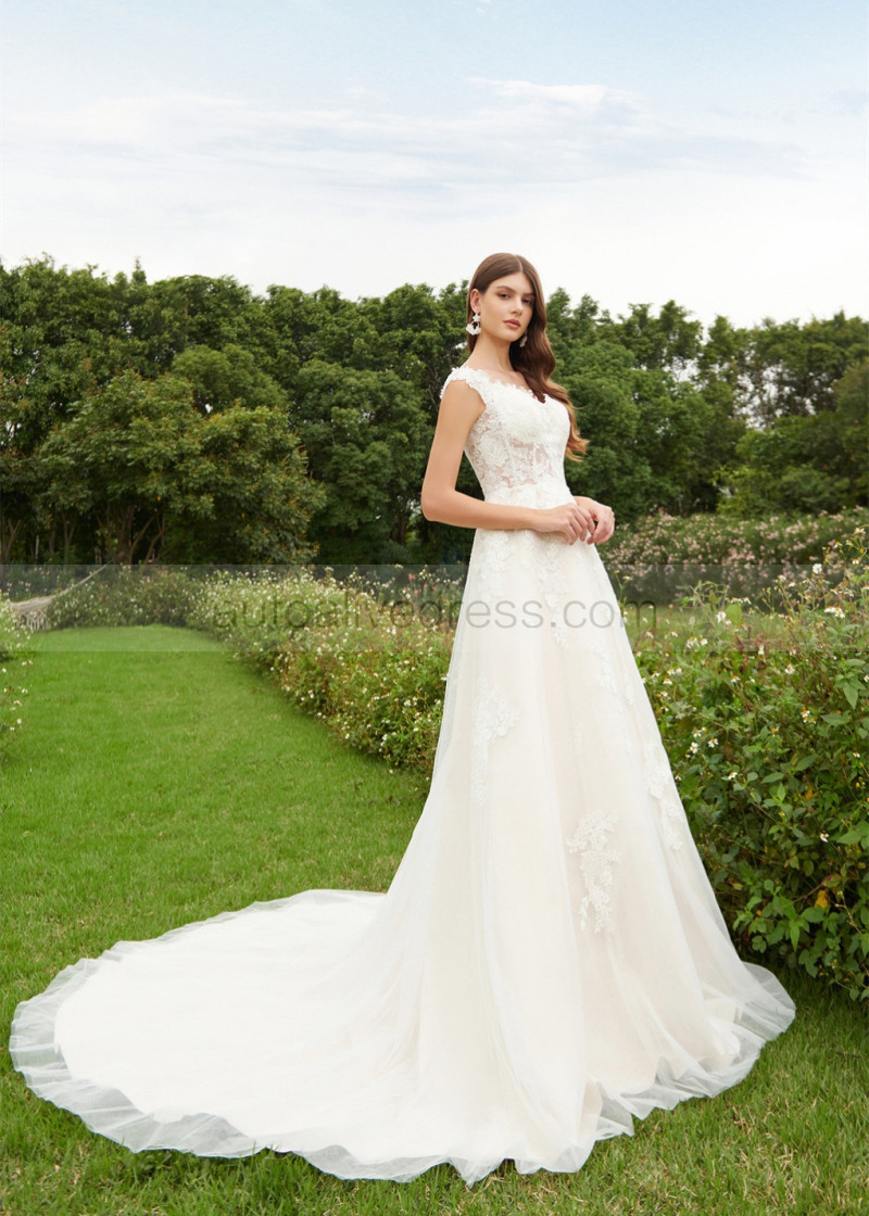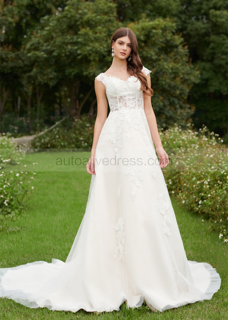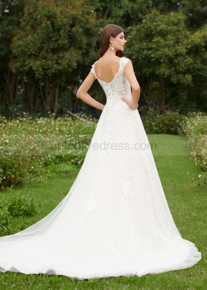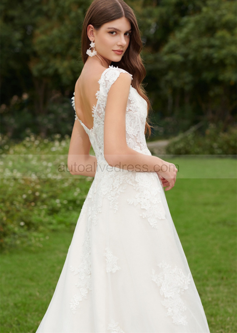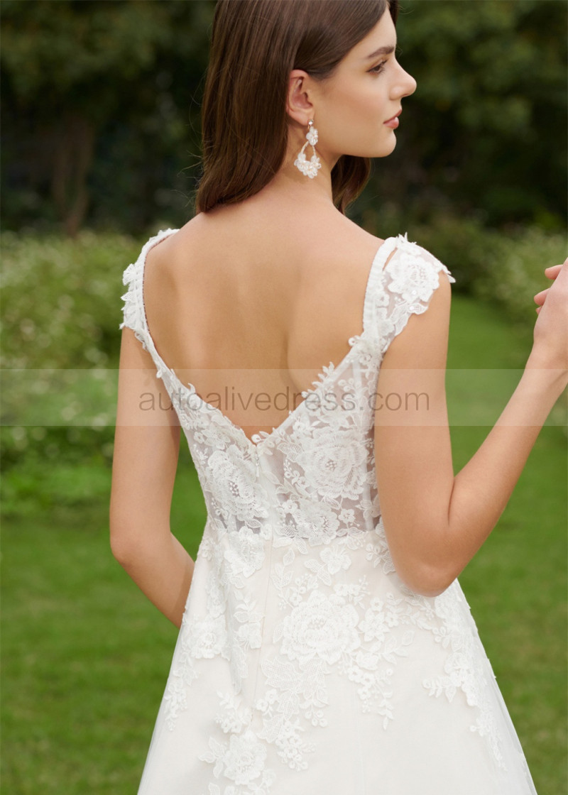 Ivory Lace Tulle V Back Affordable Wedding Dress