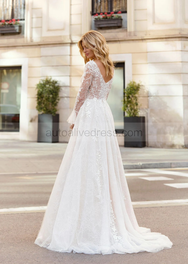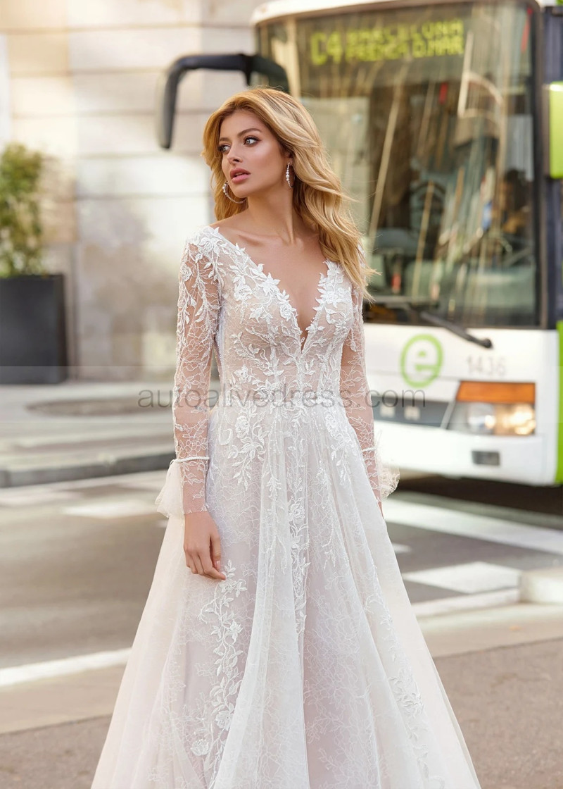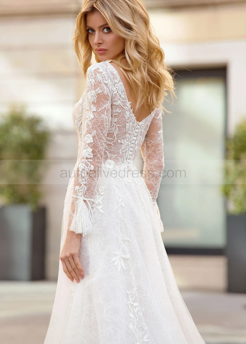 Ivory Lace Tulle V Back Fairy Wedding Dress