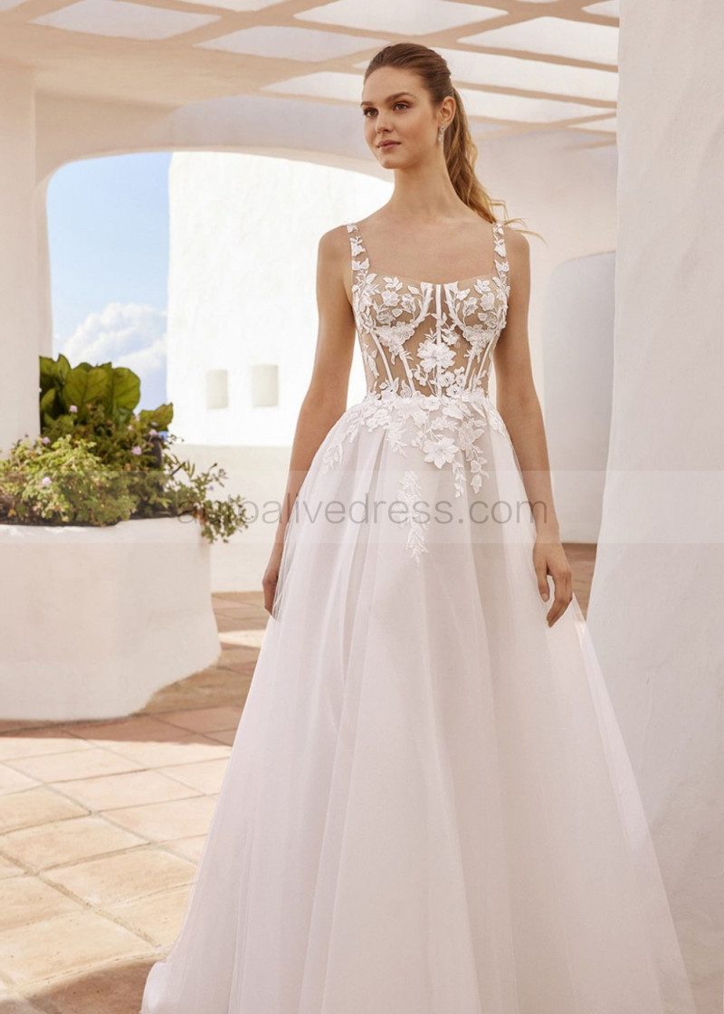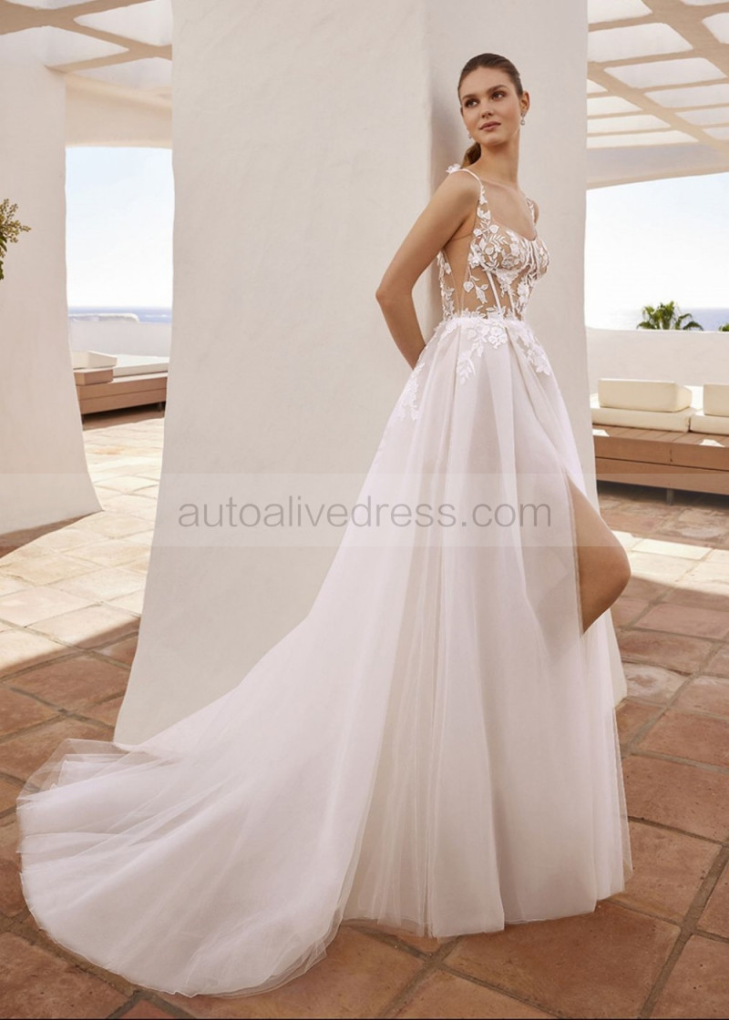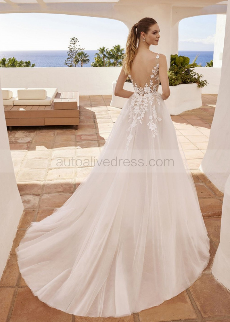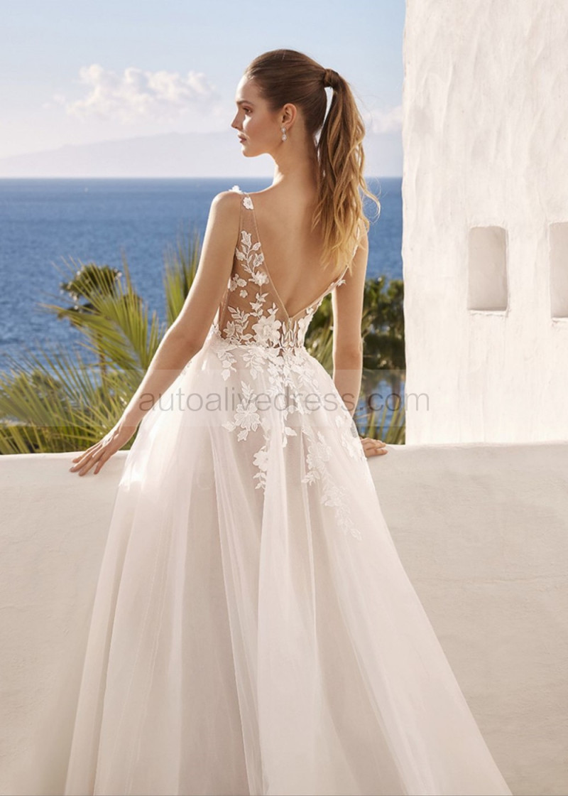 Ivory Lace Tulle V Back Slit Ever Pretty Wedding Dress