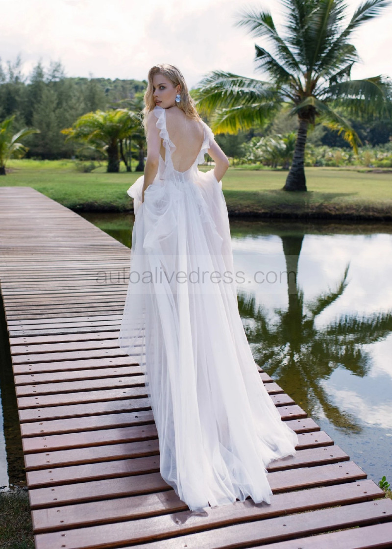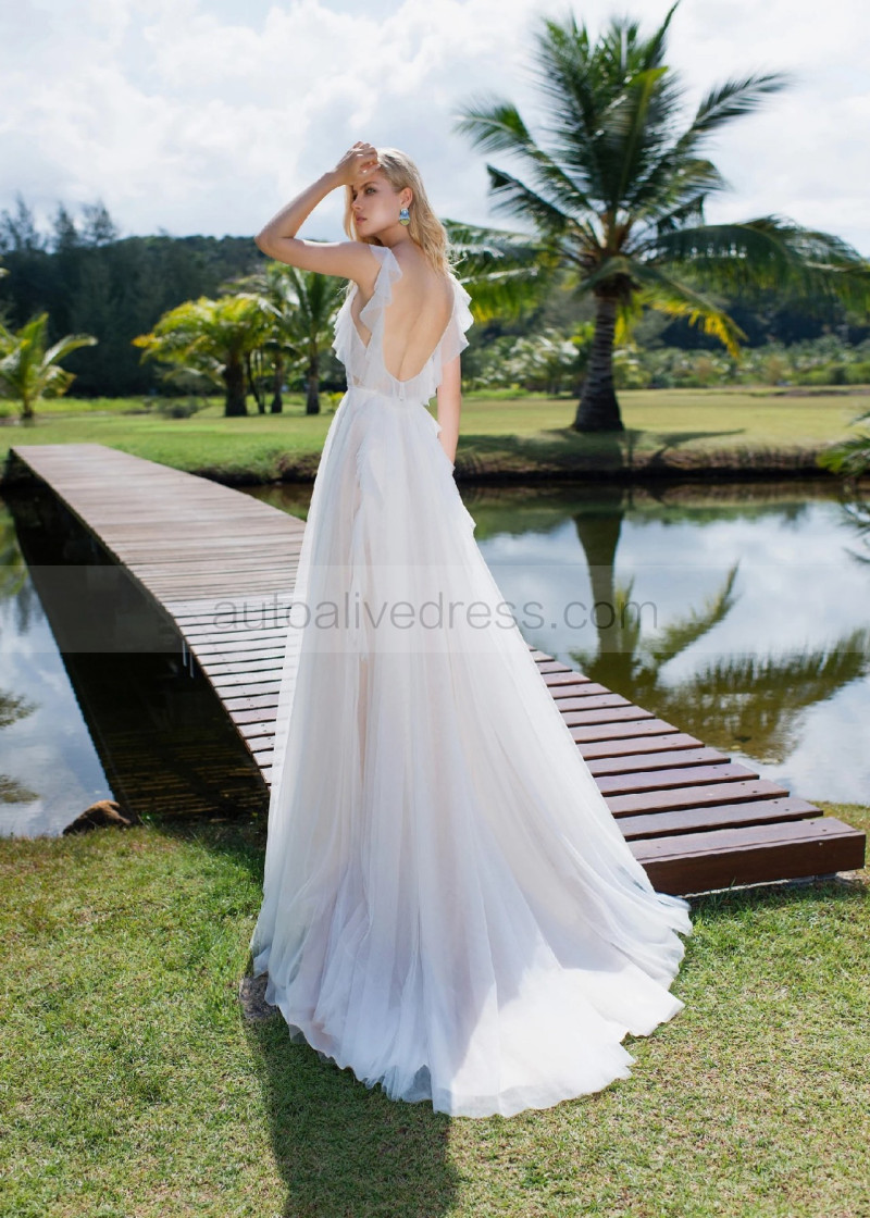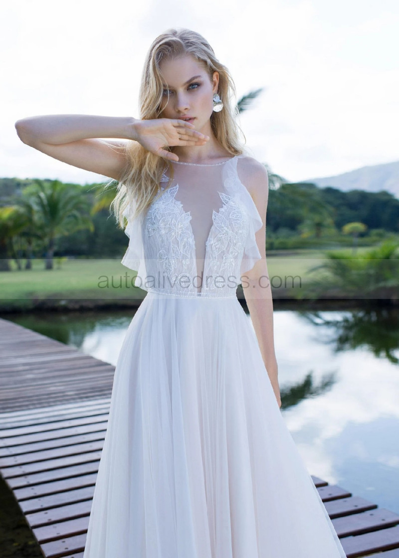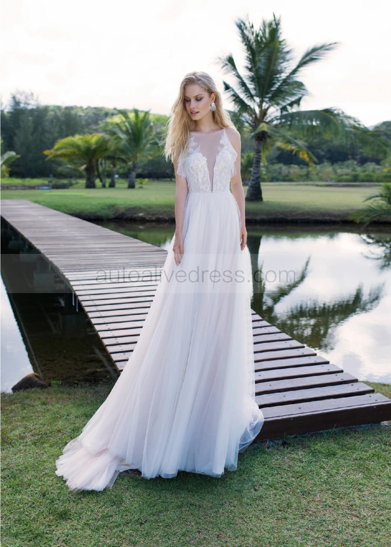 Ivory Lace Tulle V Open Back Wedding Dress