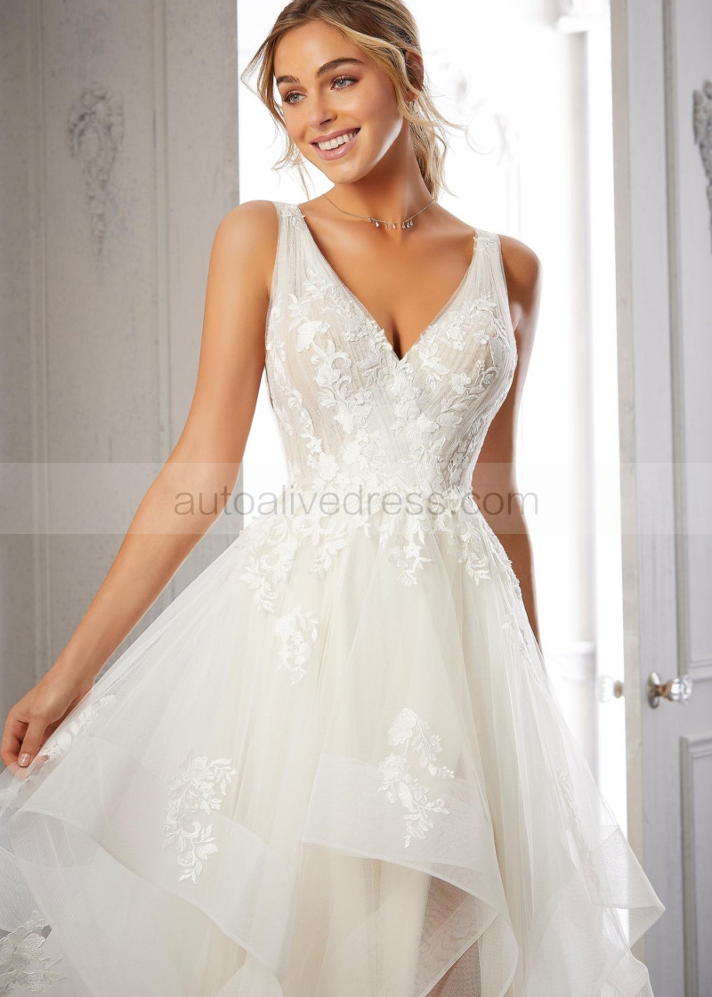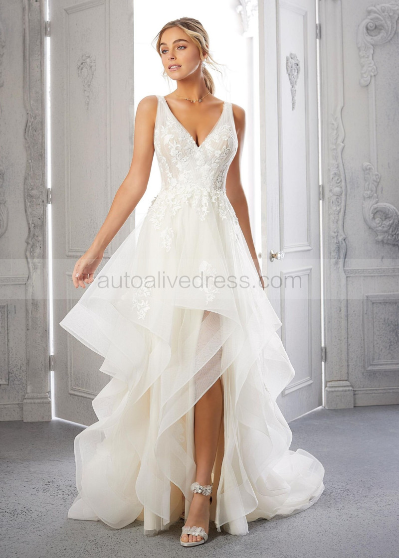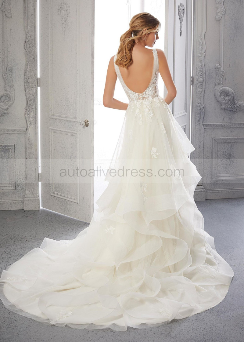 Ivory Lace Tulle Wedding Dress With Horsehair Edge