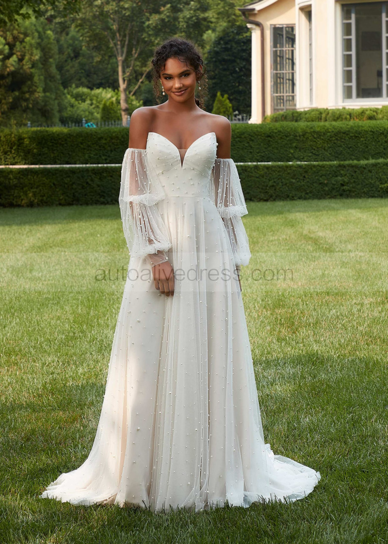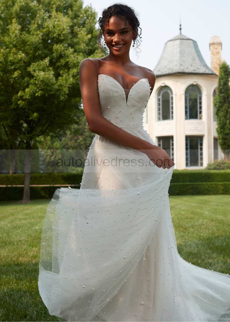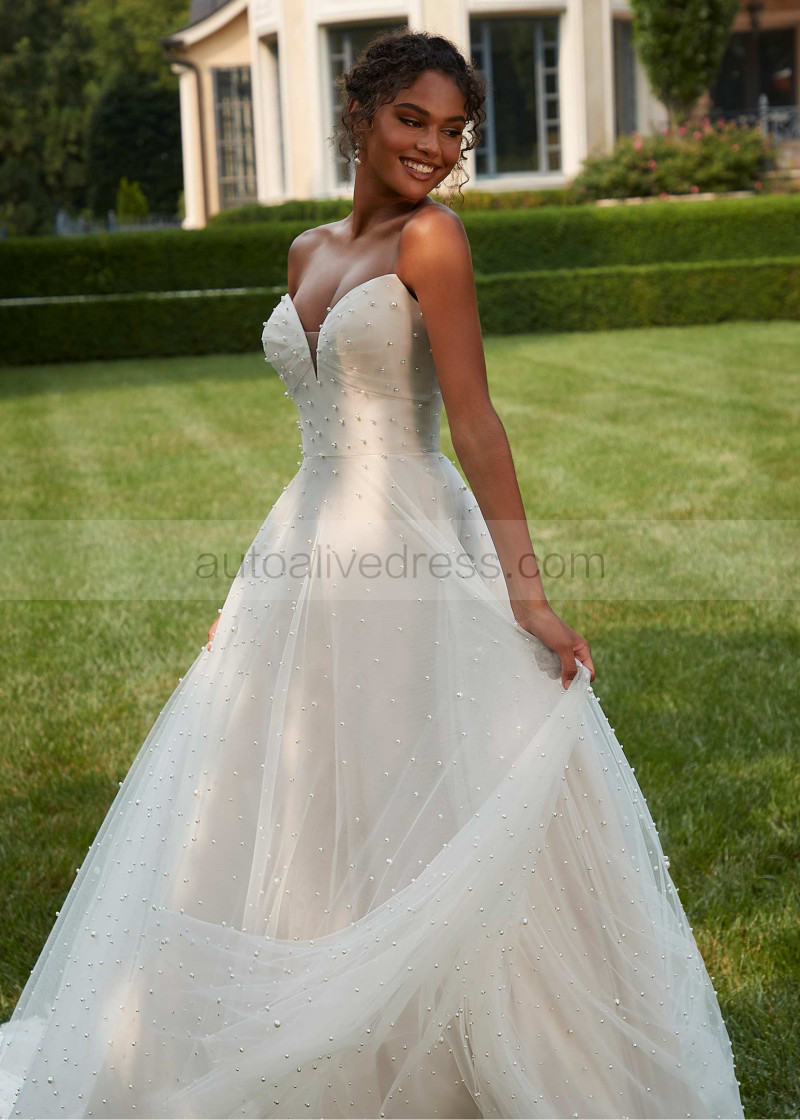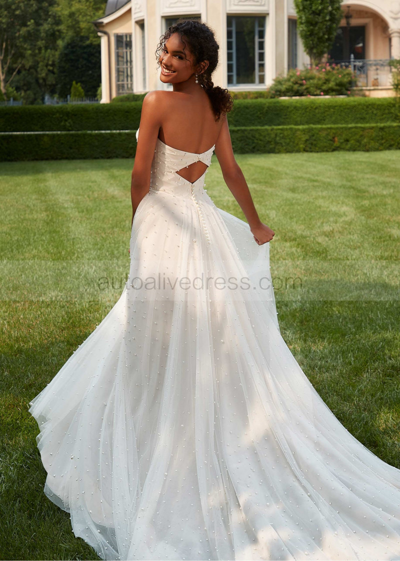 Ivory Pearl Beaded Tulle Keyhole Back Graceful Wedding Dress
