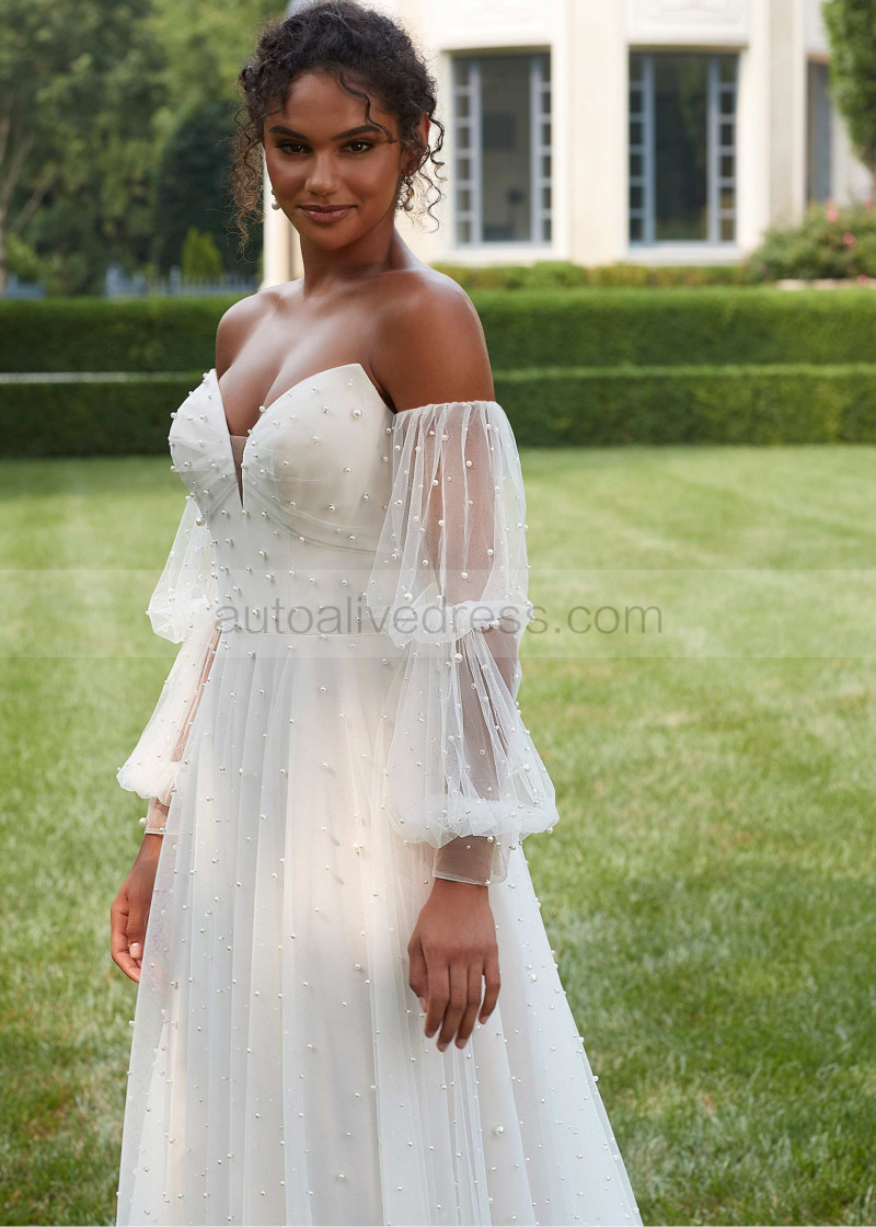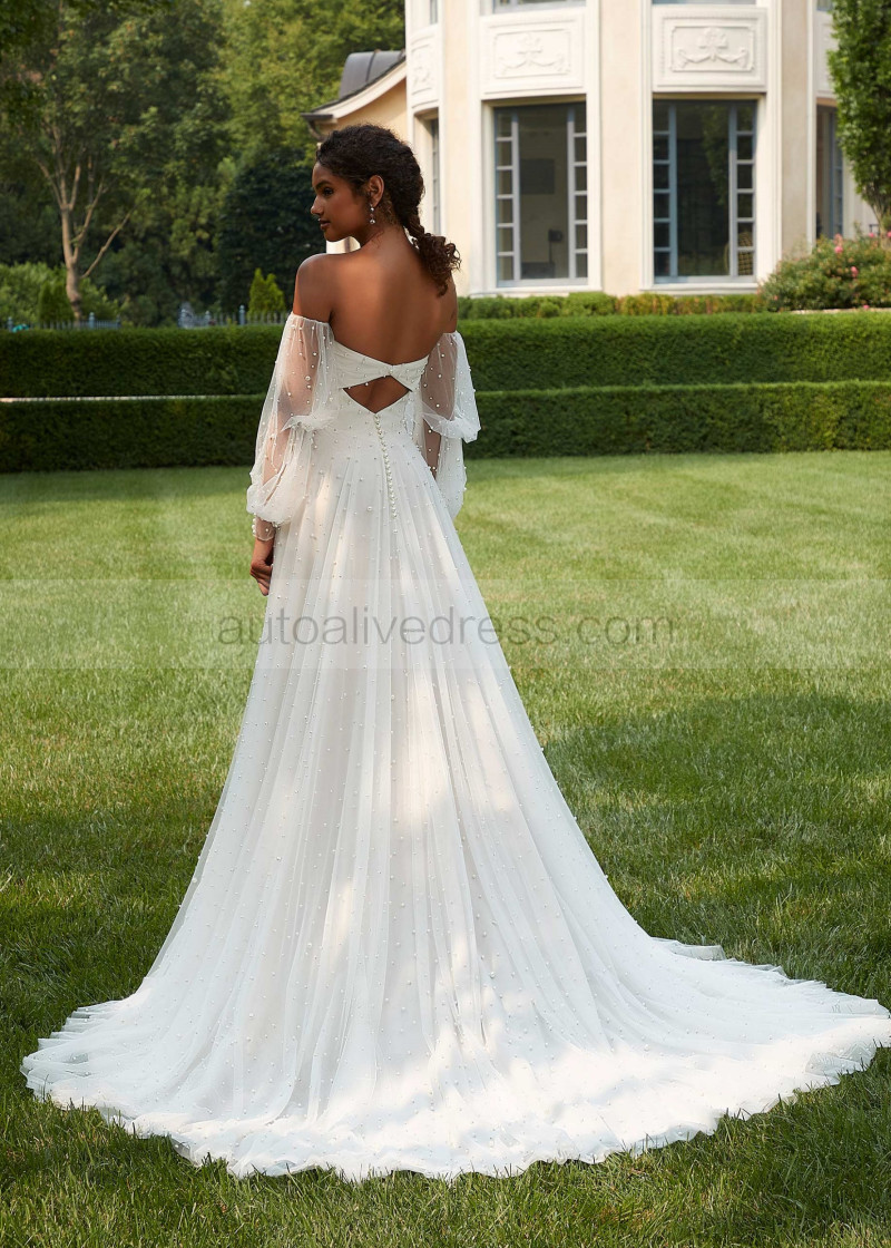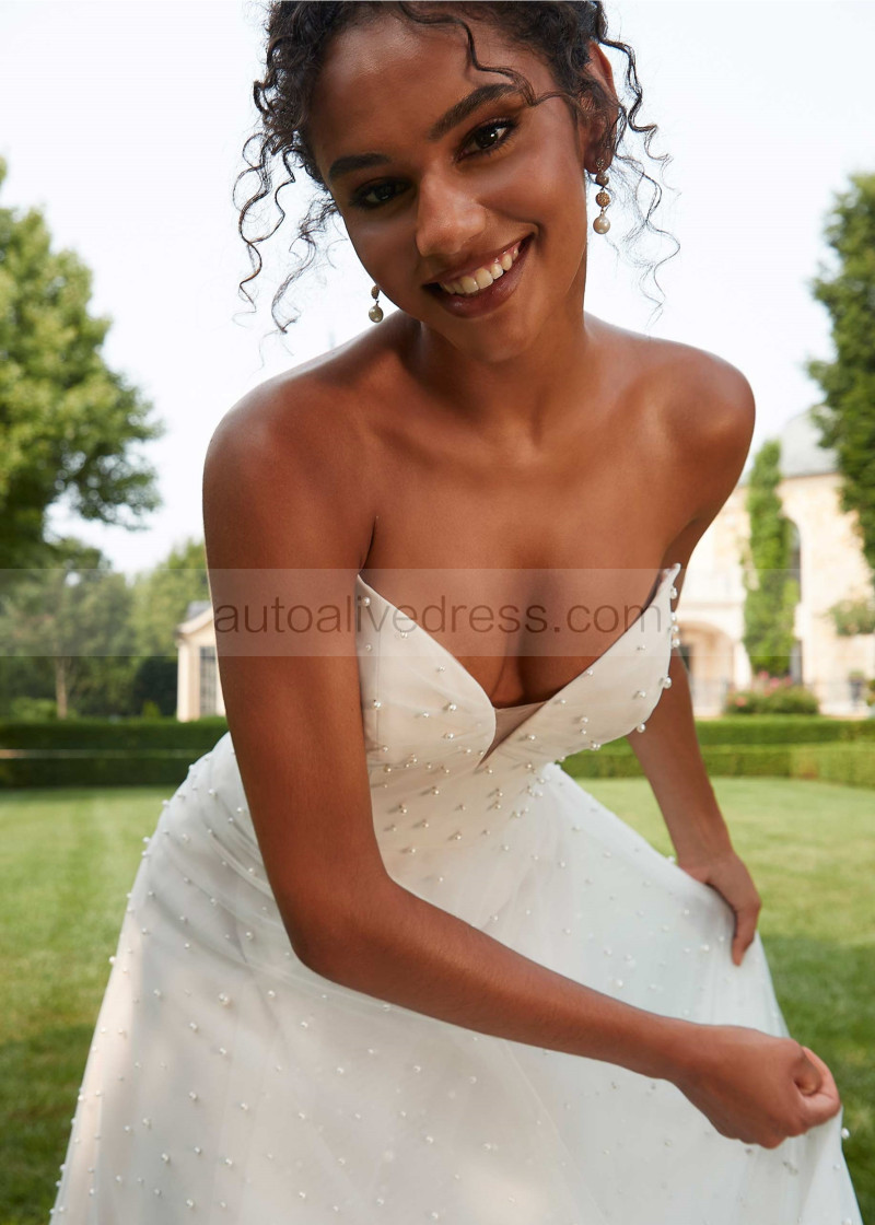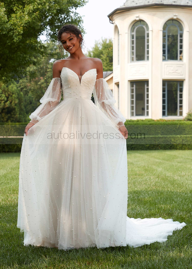 Ivory Pearl Beaded Tulle Keyhole Back Graceful Wedding Dress