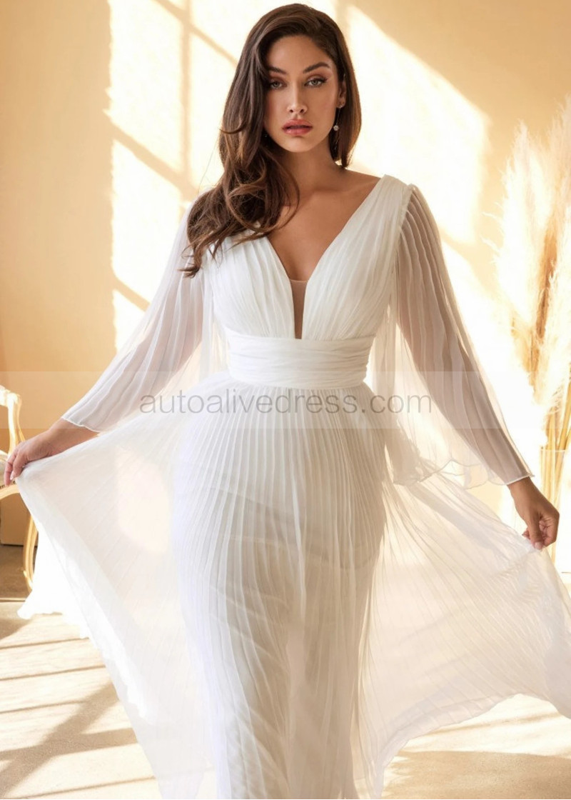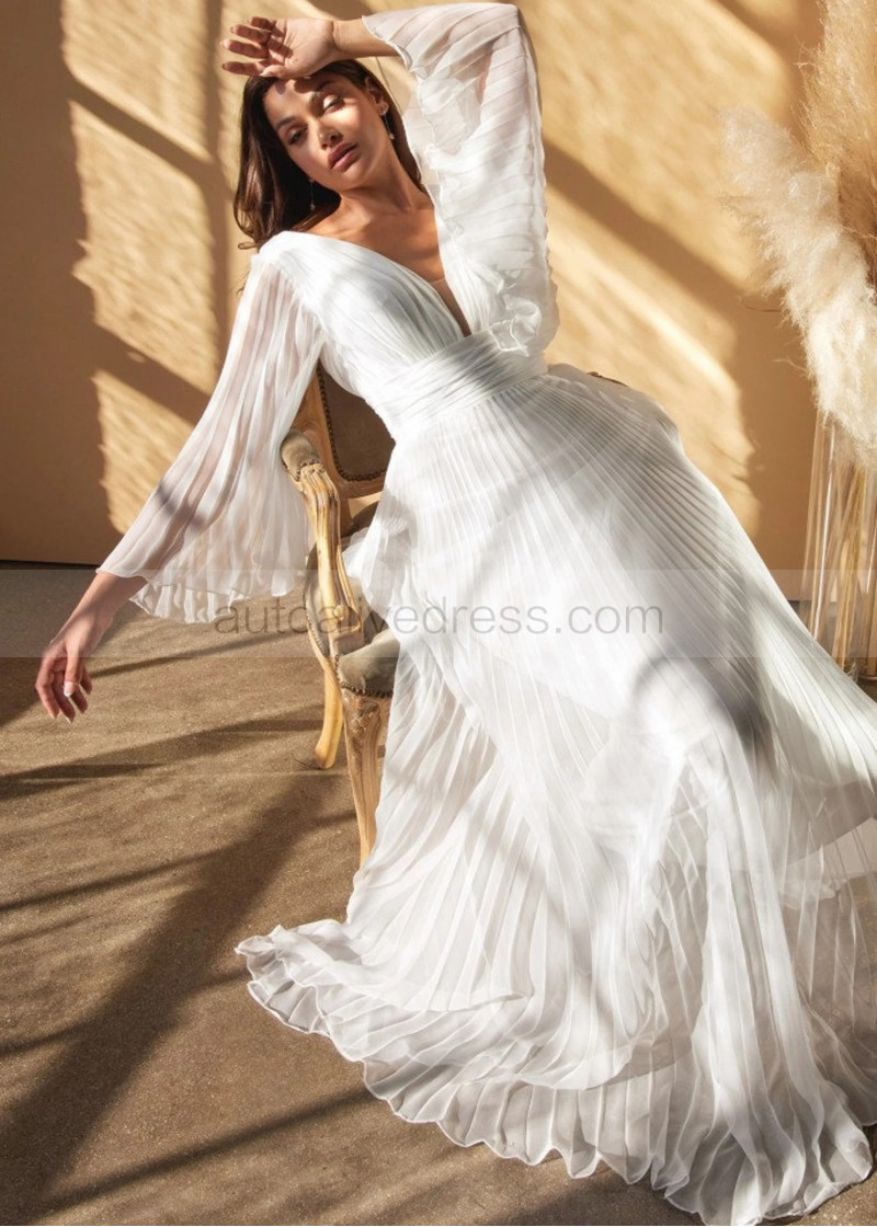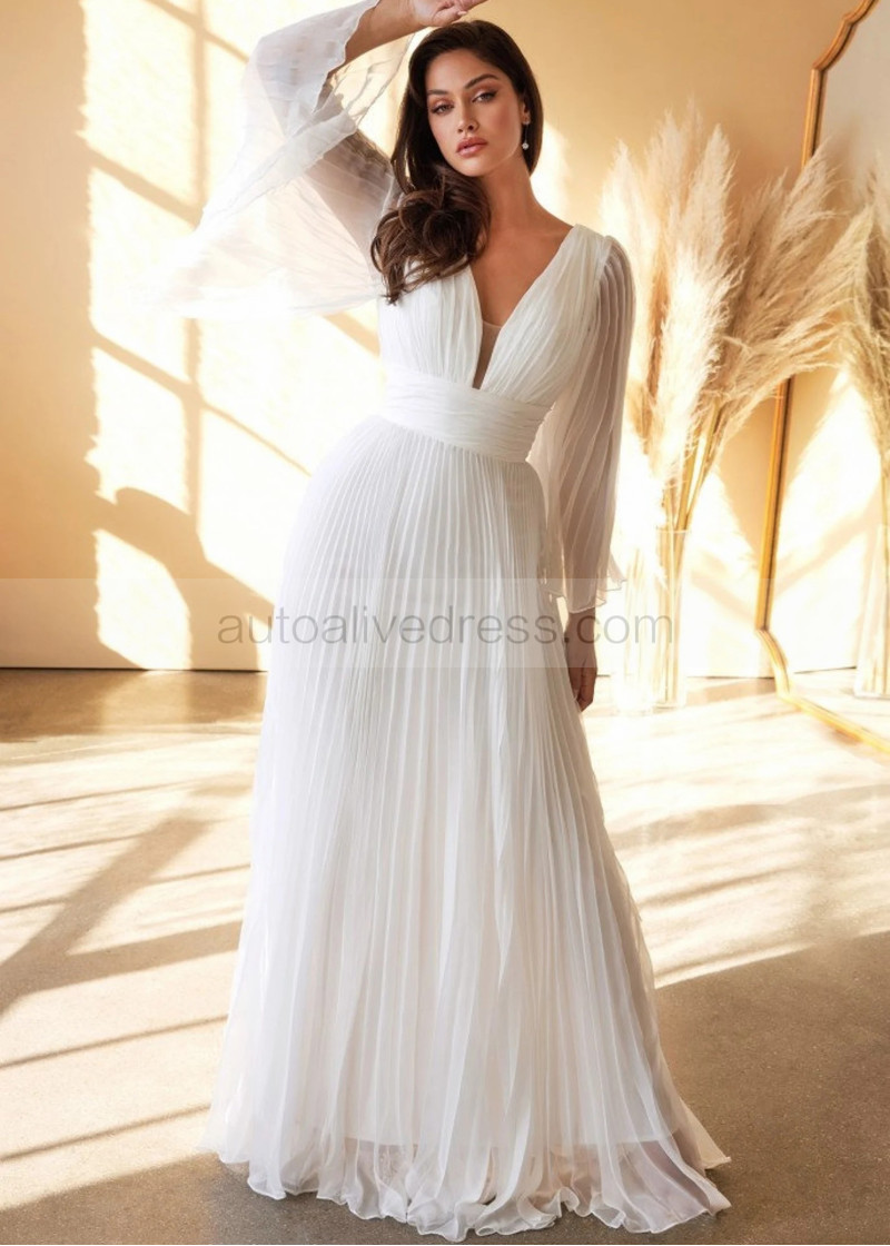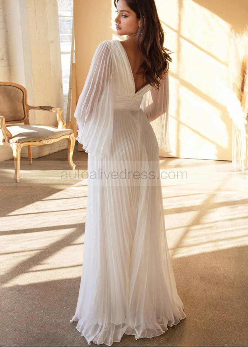 Ivory Pleated Chiffon V Open Back Wedding Dress