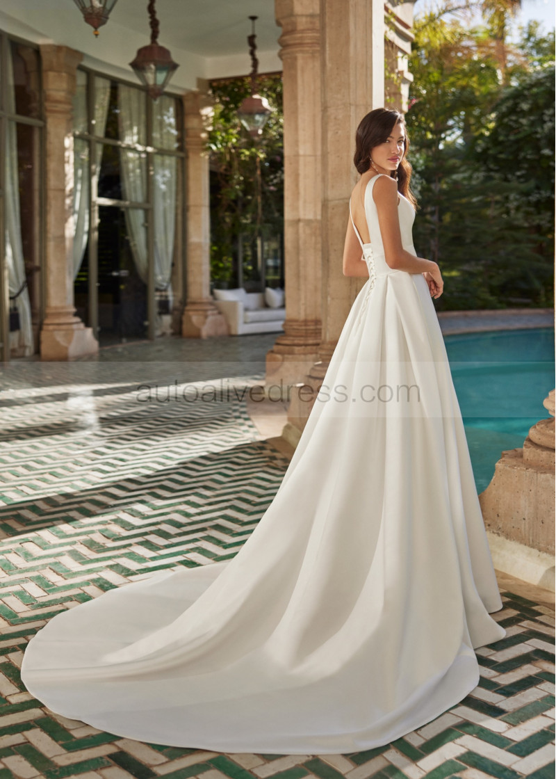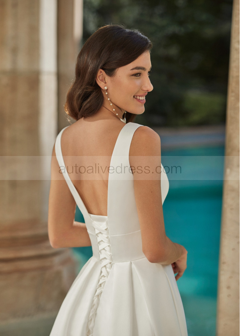 Ivory Satin Corset Back Simple Wedding Dress With Pockets