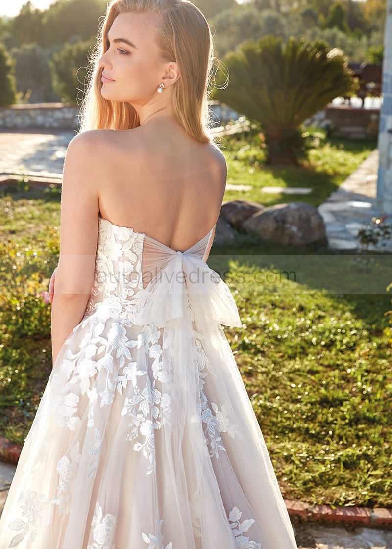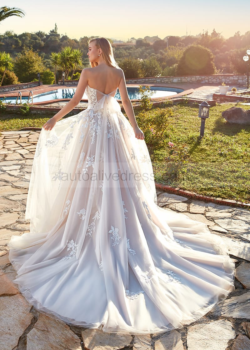 Ivory Sequined Lace Tulle Creative Wedding Dress With Champagne Lining