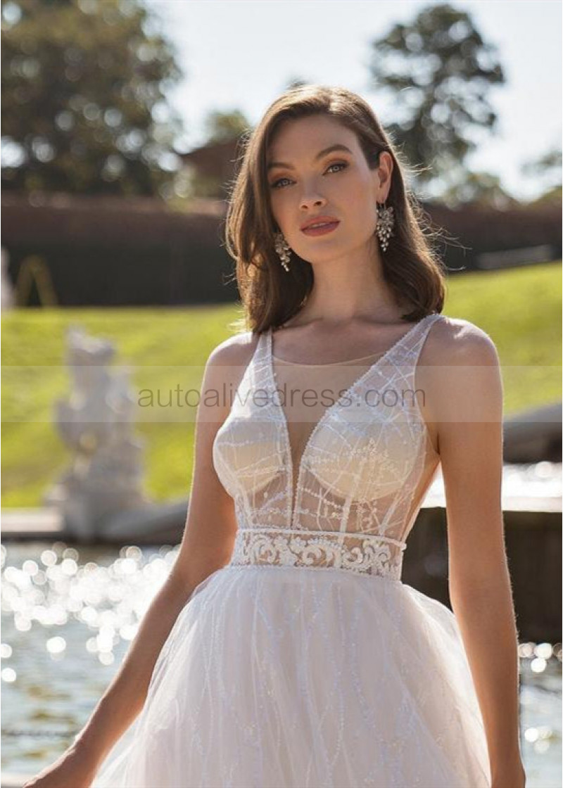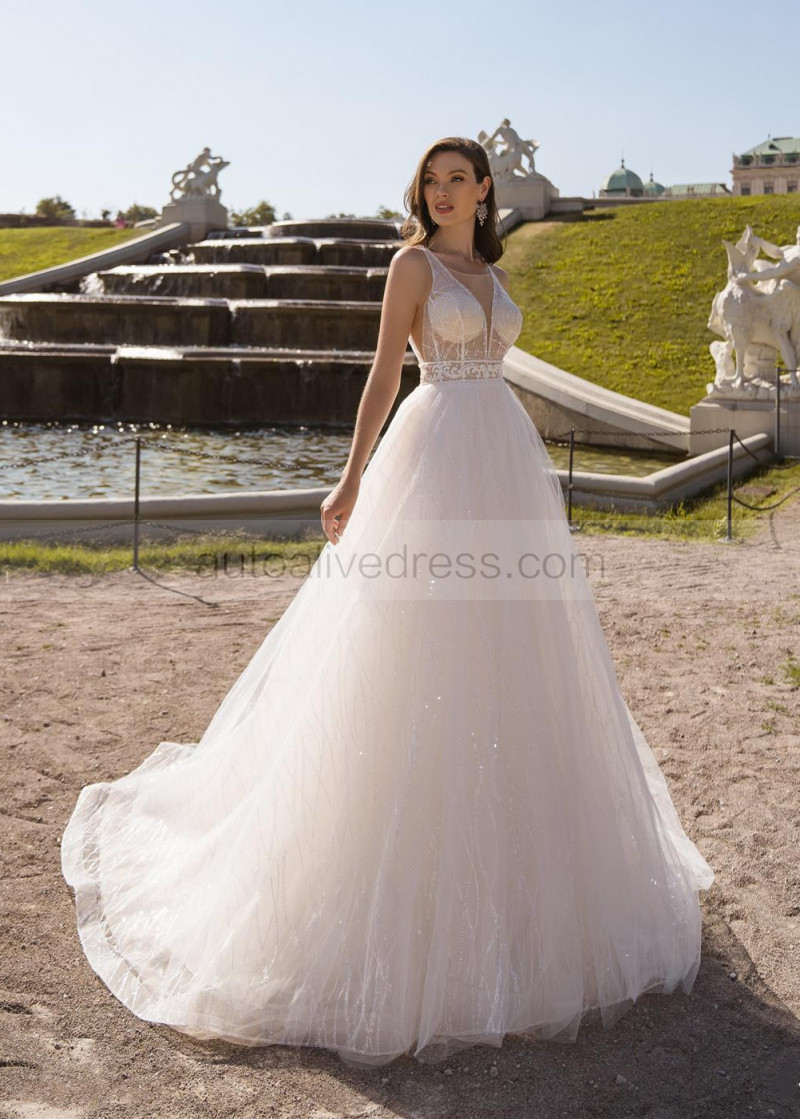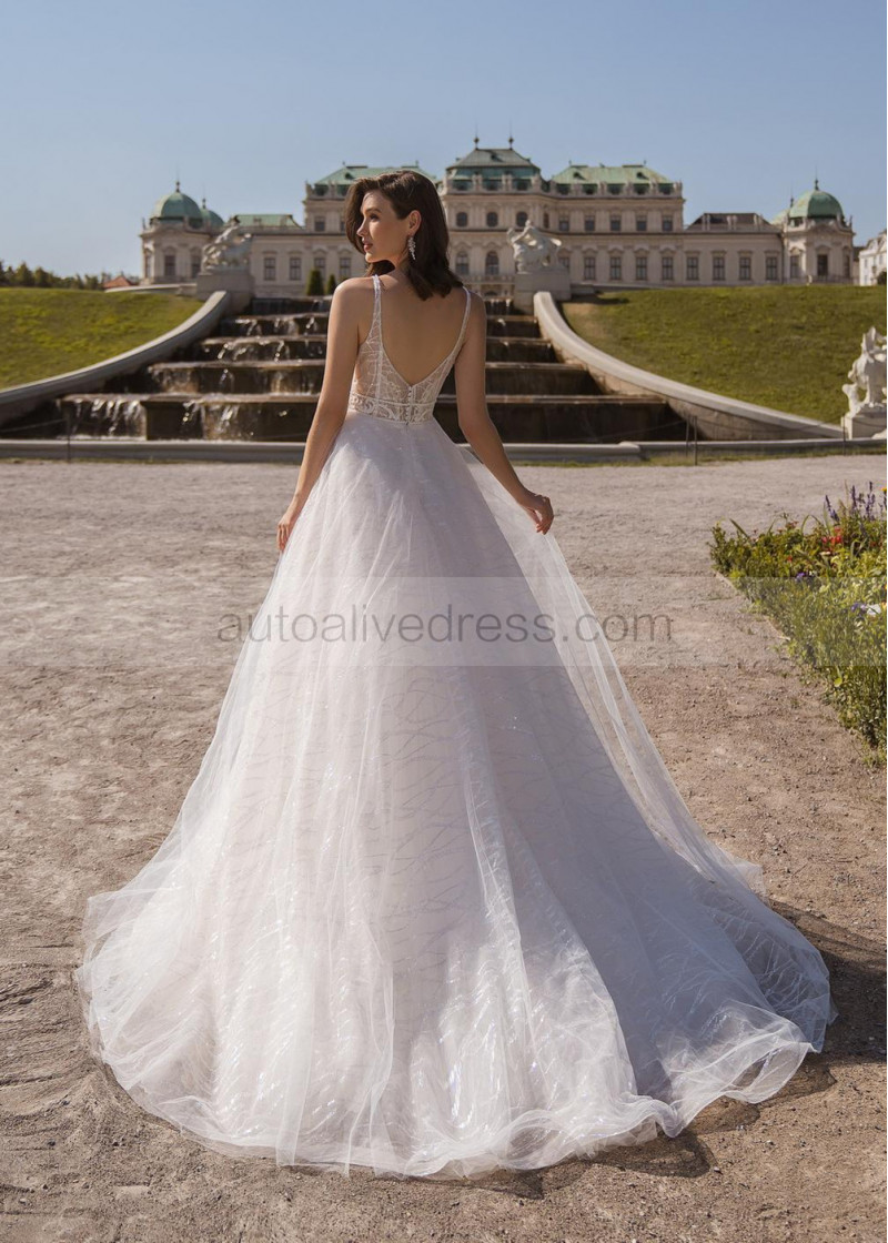 Ivory Sequined Lace Tulle Glitter Wedding Dress