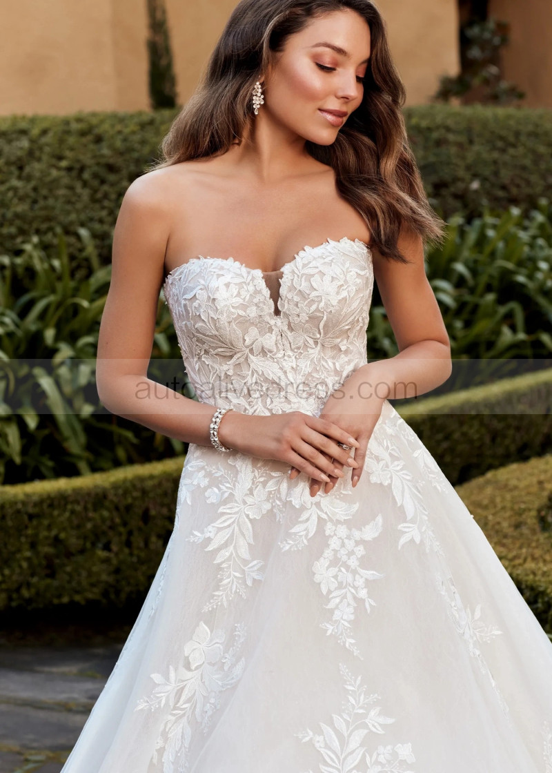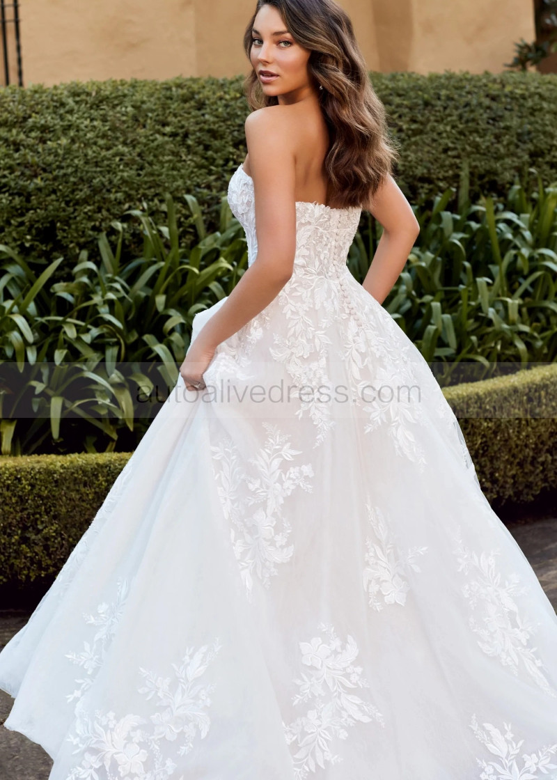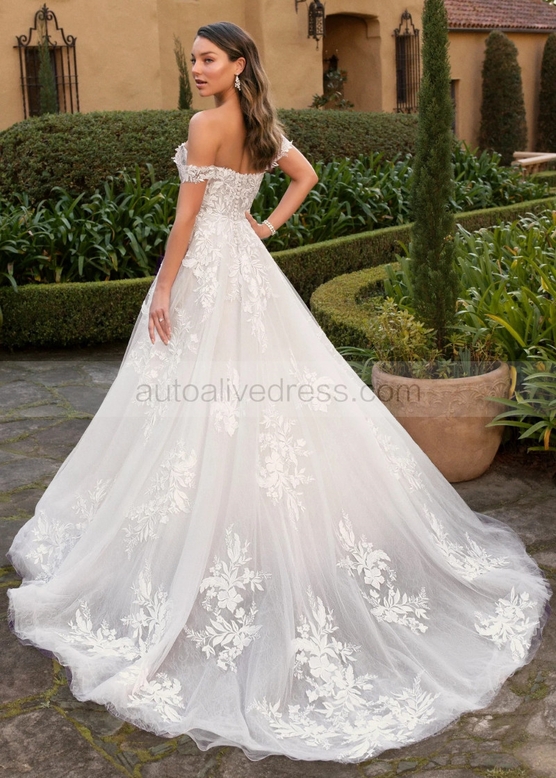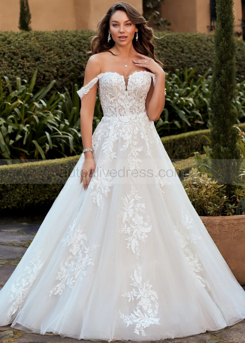 Ivory Sequined Lace Tulle Wedding Dress With Removable Straps