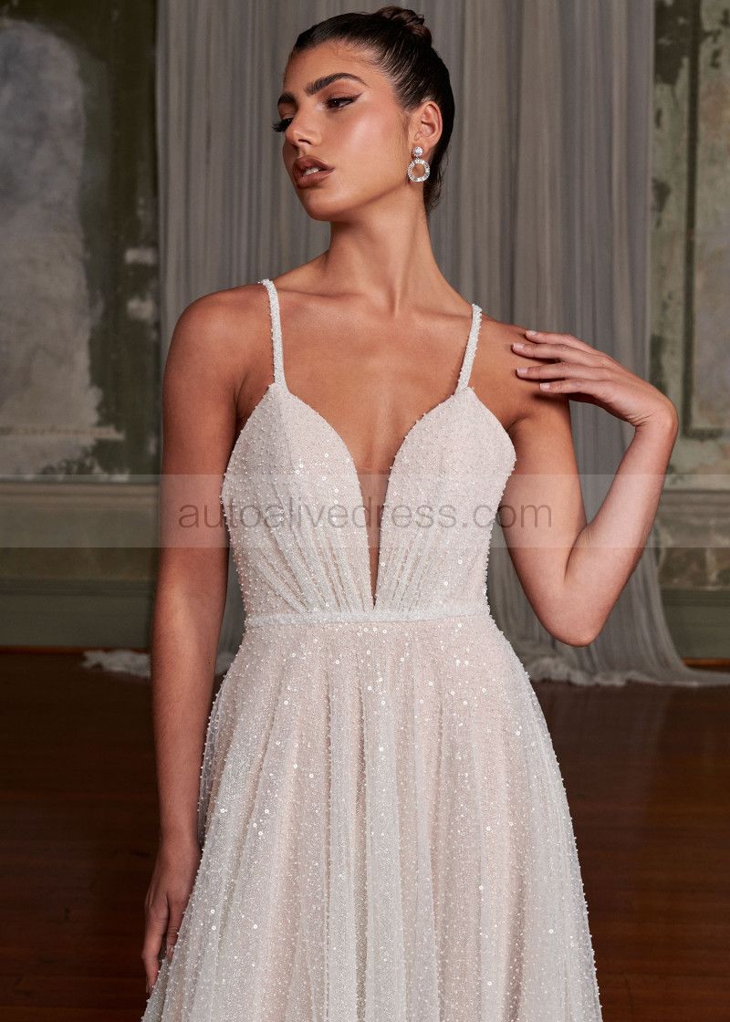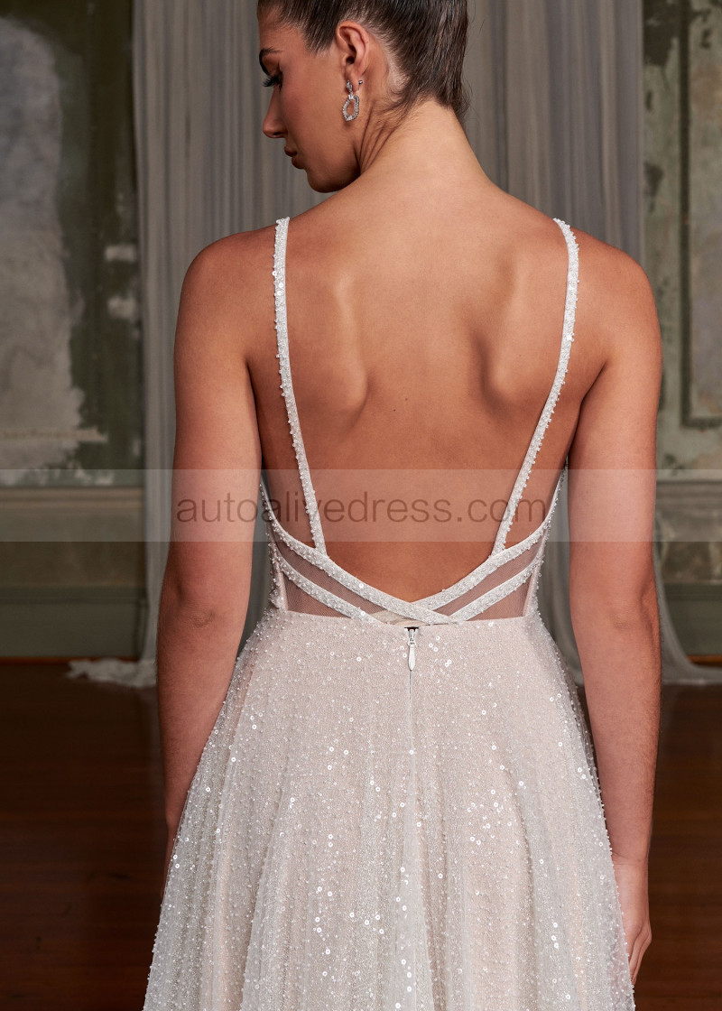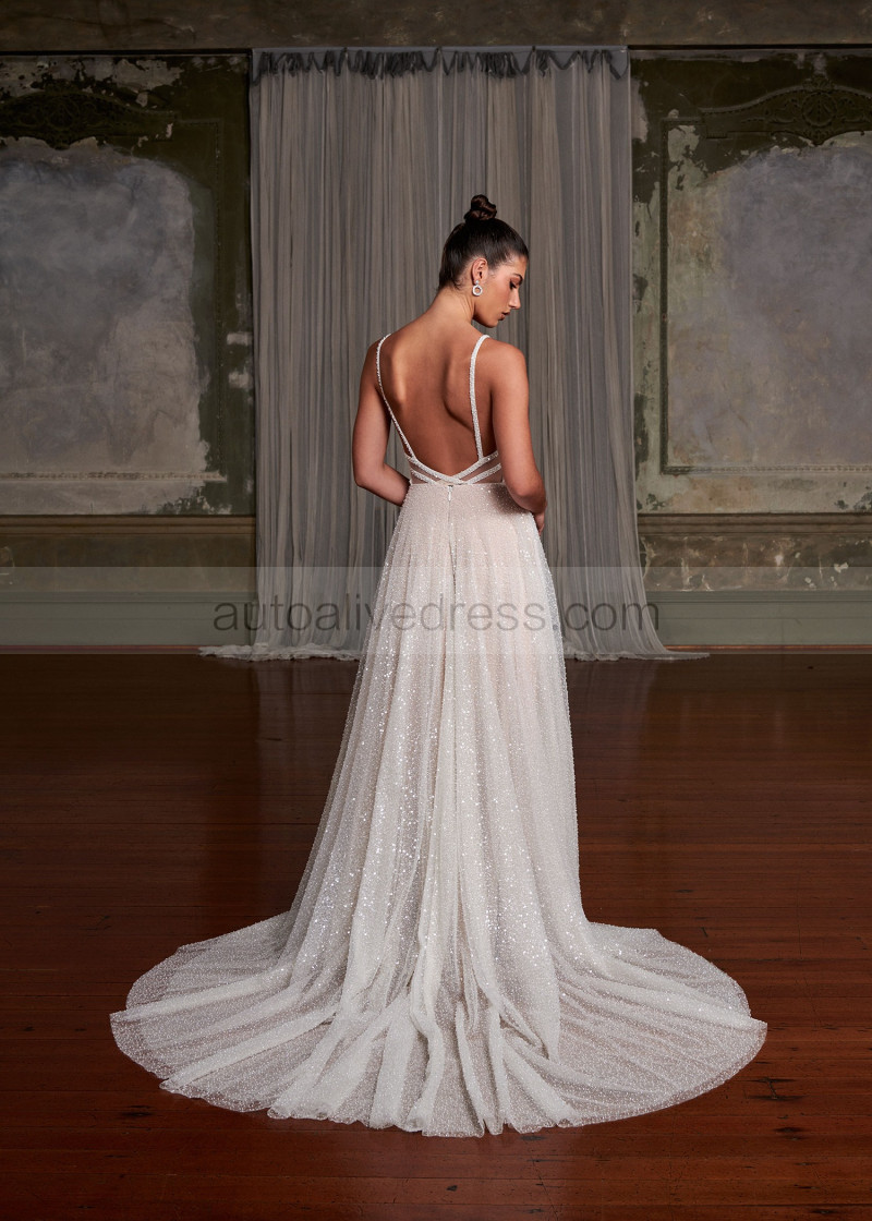 Ivory Shimmering Lace Open Back Luxury Wedding Dress