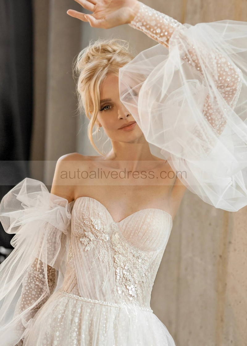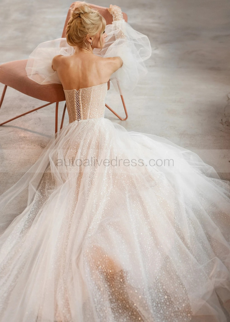 Ivory Sparkly Wedding Dress With Detachable Sleeves