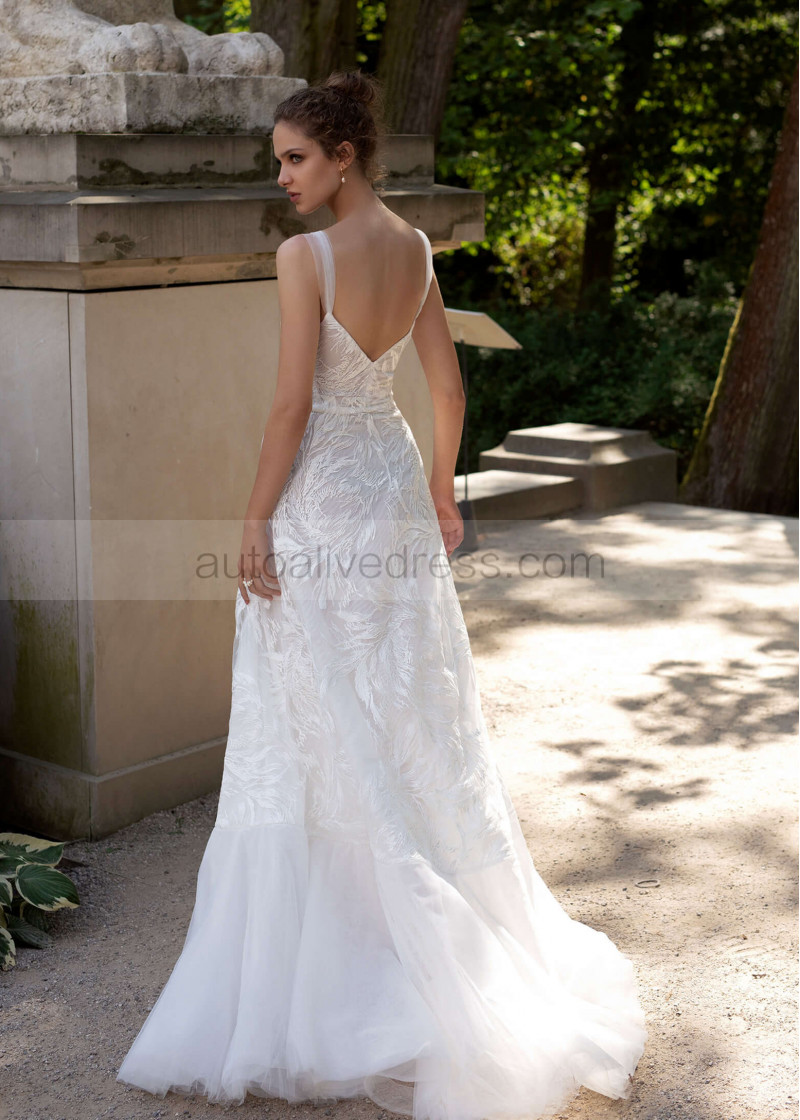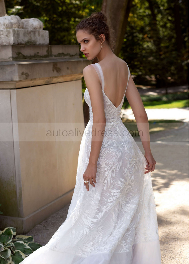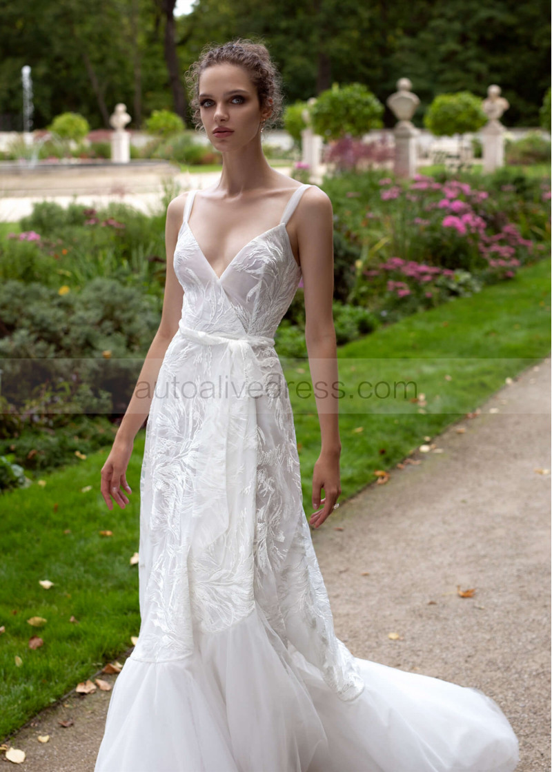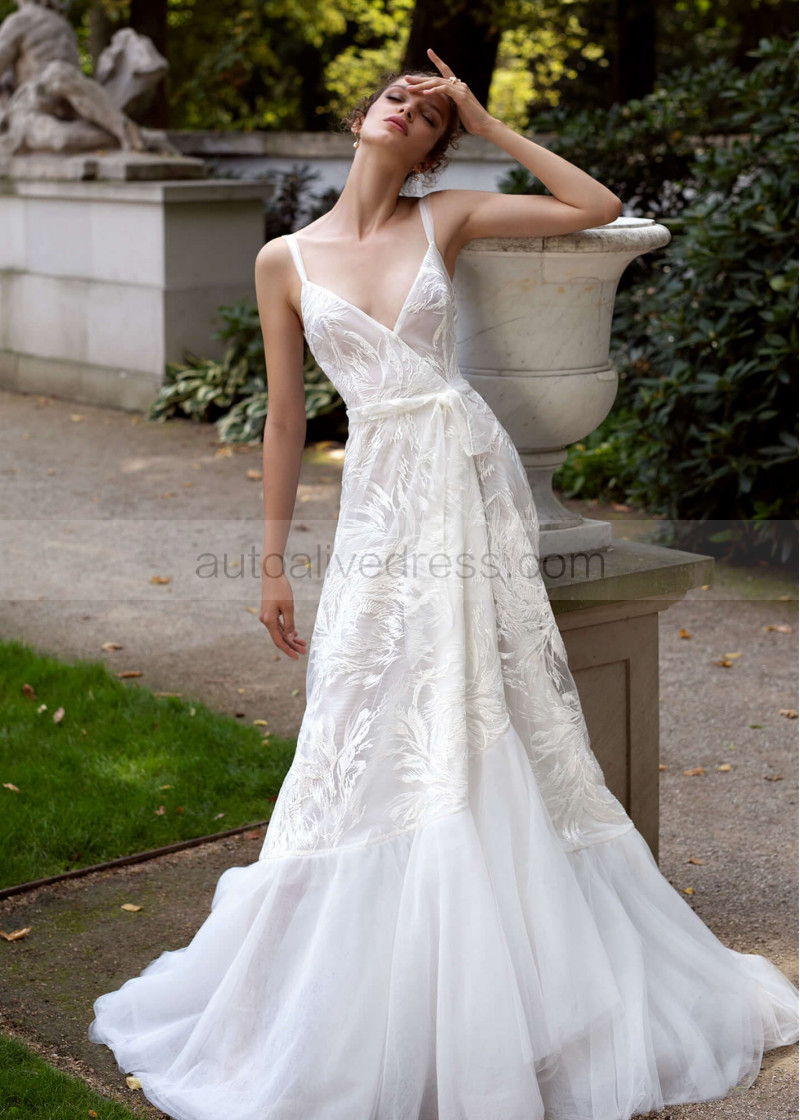 Ivory Wrapped Lace Tulle Slit Wedding Dress