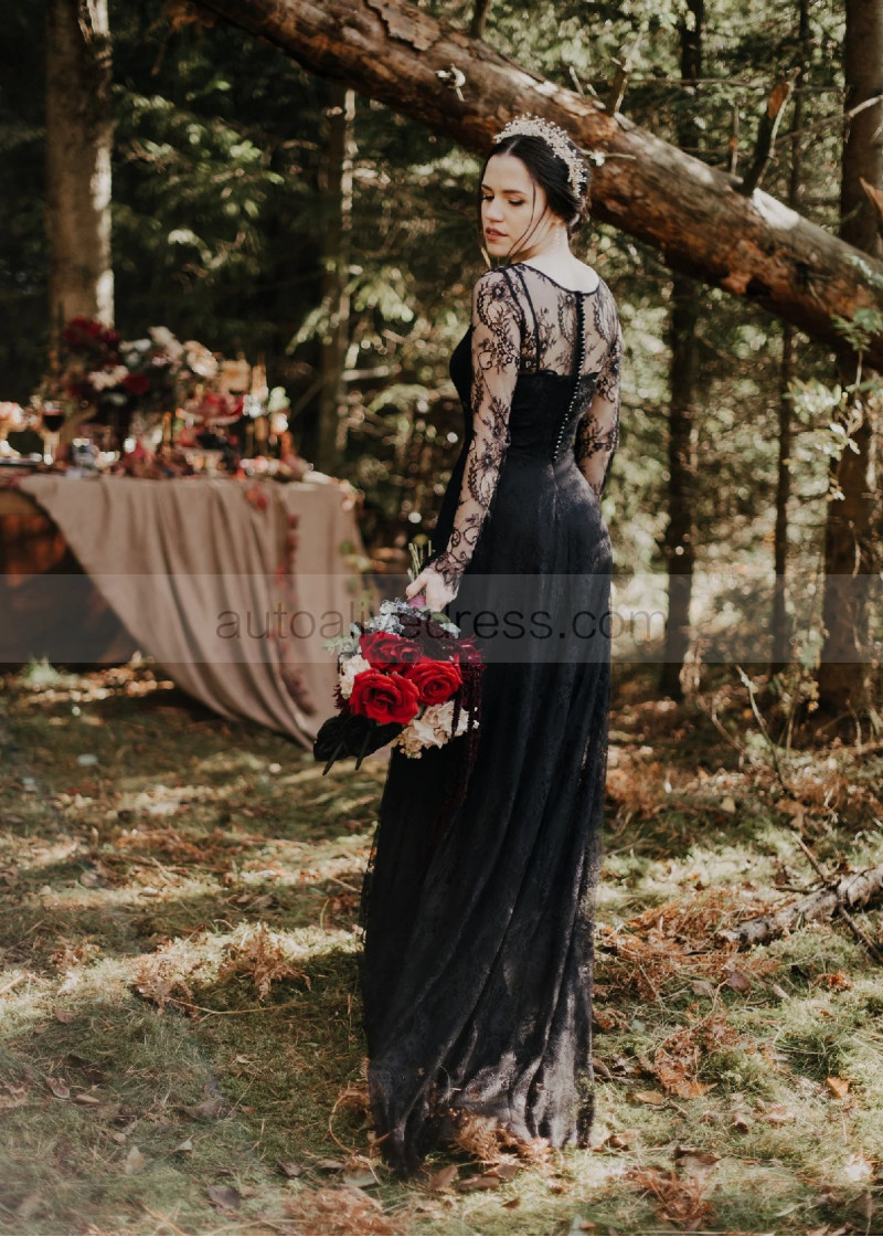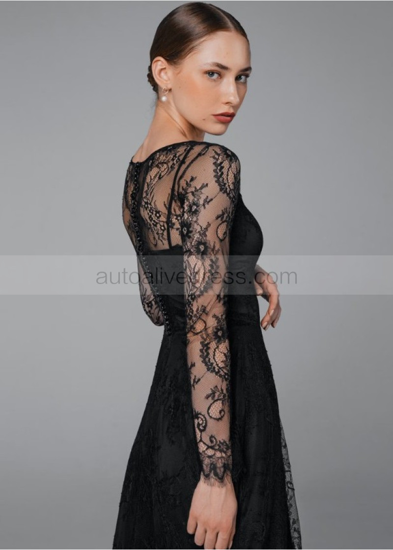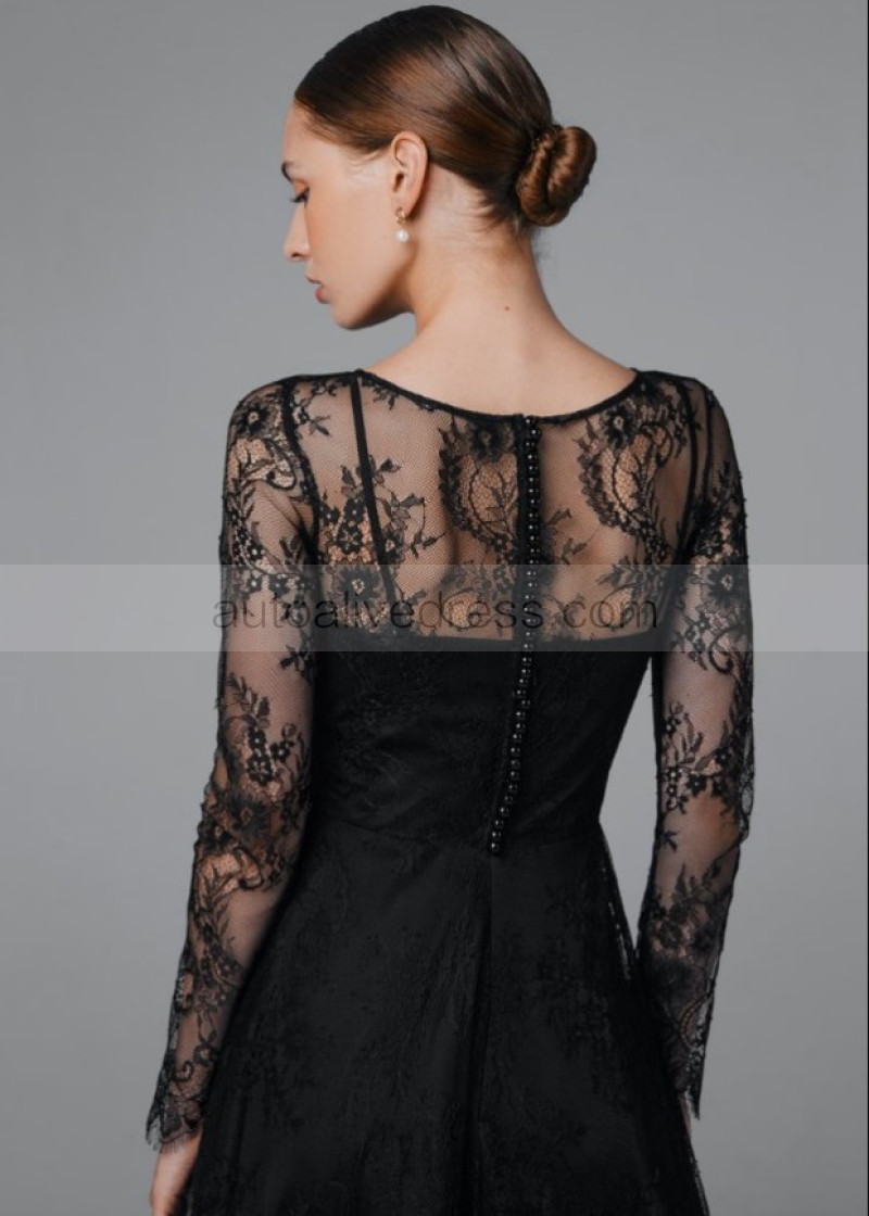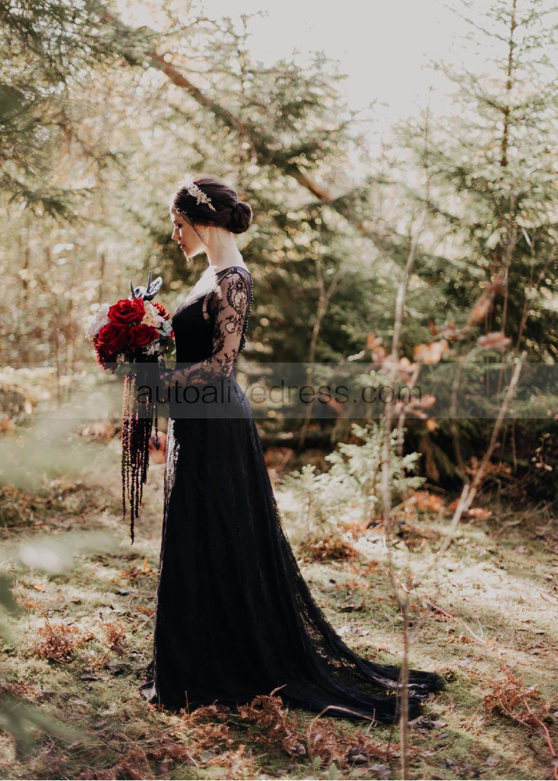 Long Sleeves Black Lace Wedding Dress Photoshoot Dress