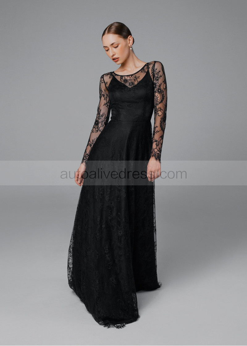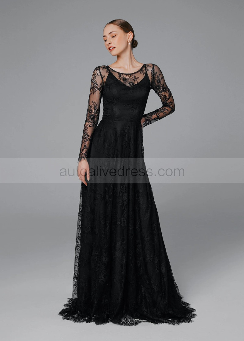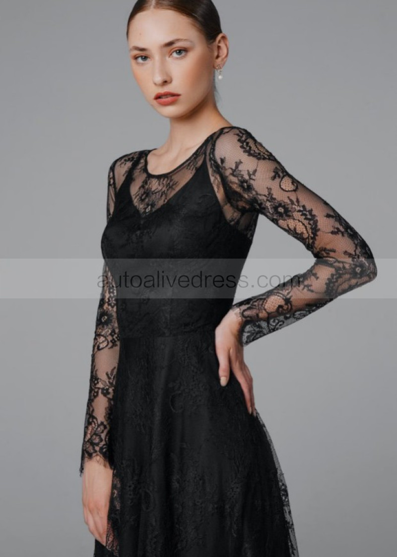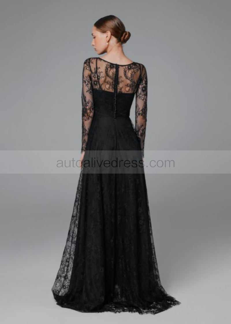Long Sleeves Black Lace Wedding Dress Photoshoot Dress