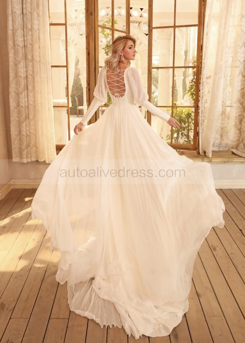 Long Sleeves Ivory Chiffon Corset Back Wedding Dress
