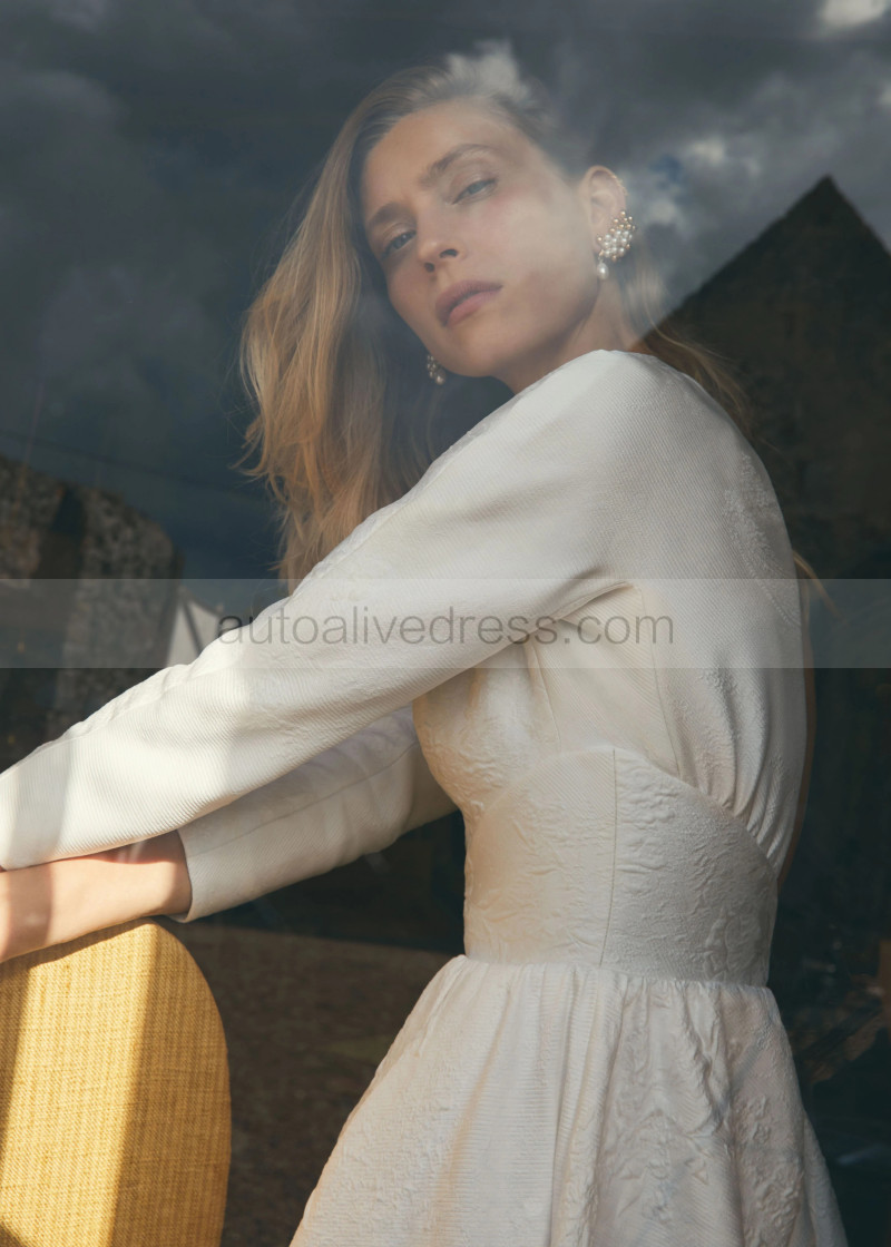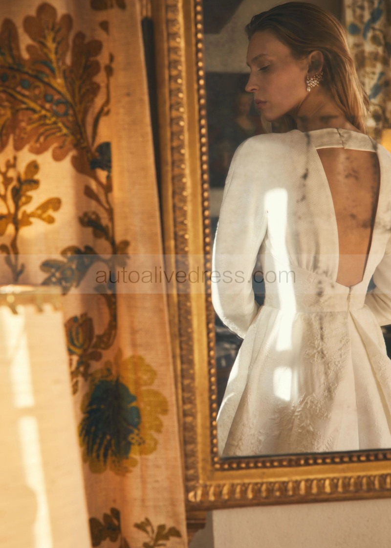 Long Sleeves Ivory Jacquard Keyhole Back Wedding Dress