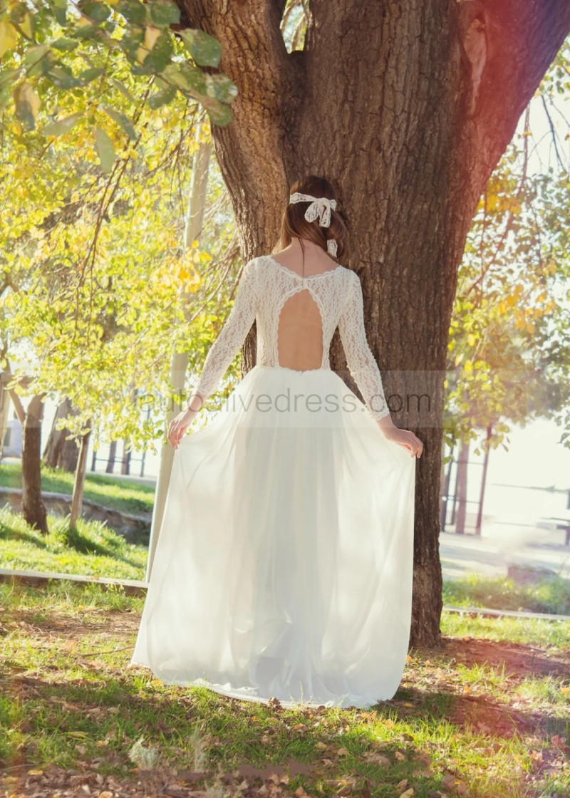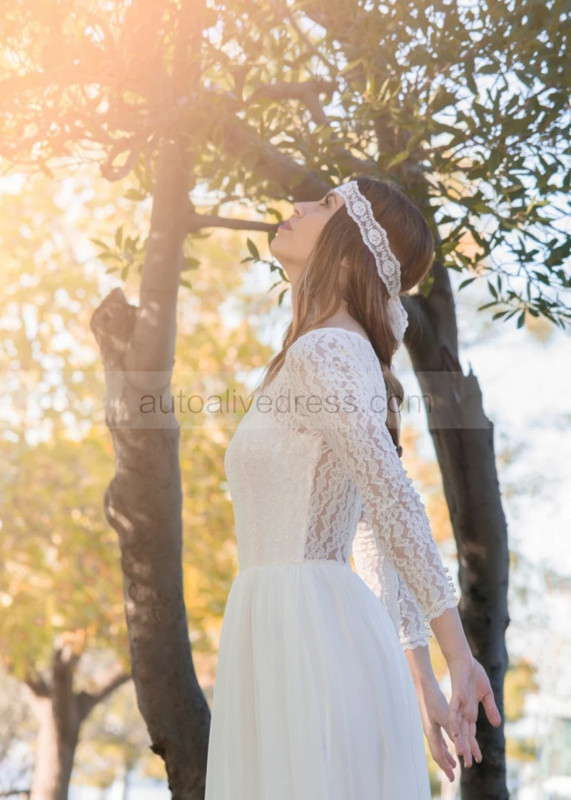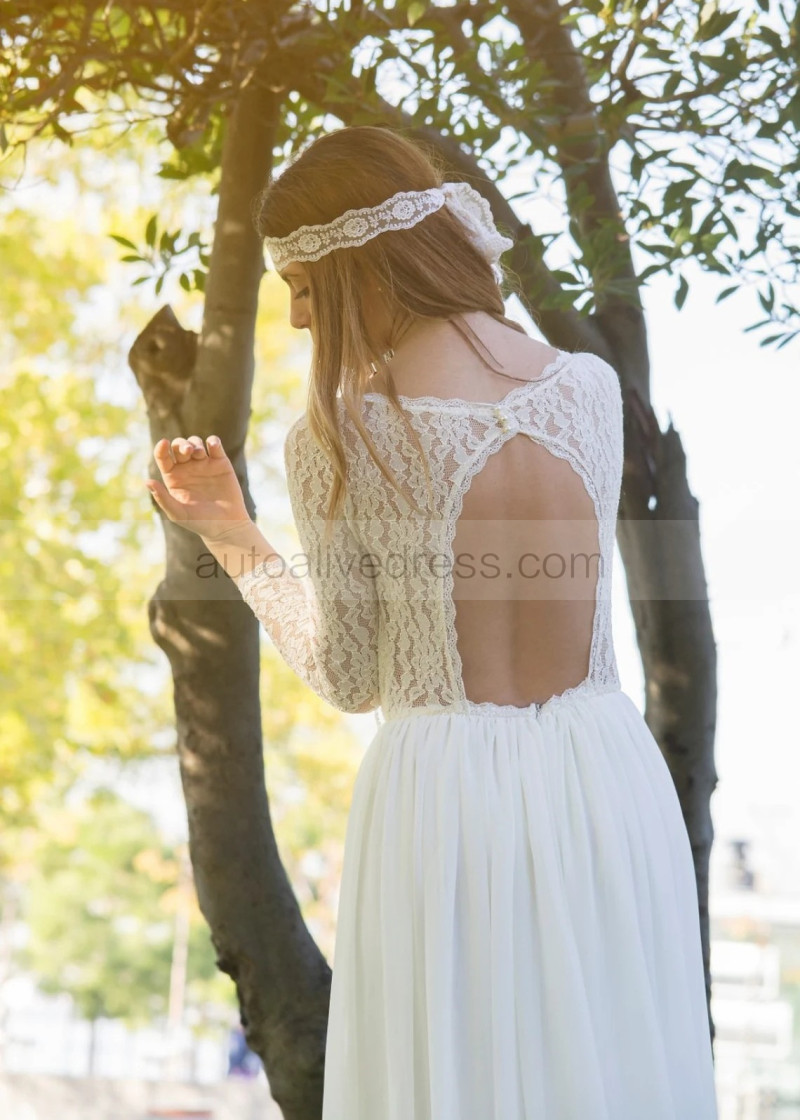 Long Sleeves Ivory Lace Chiffon Bohemian Wedding Dress