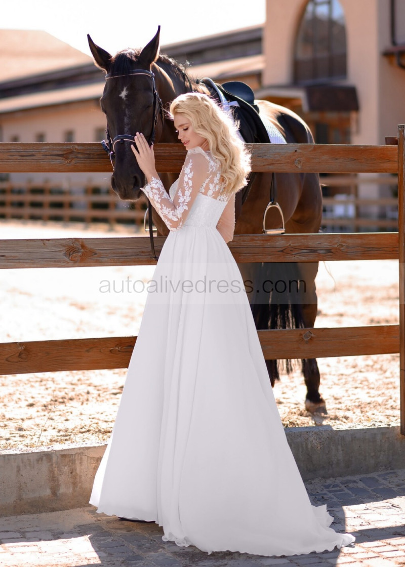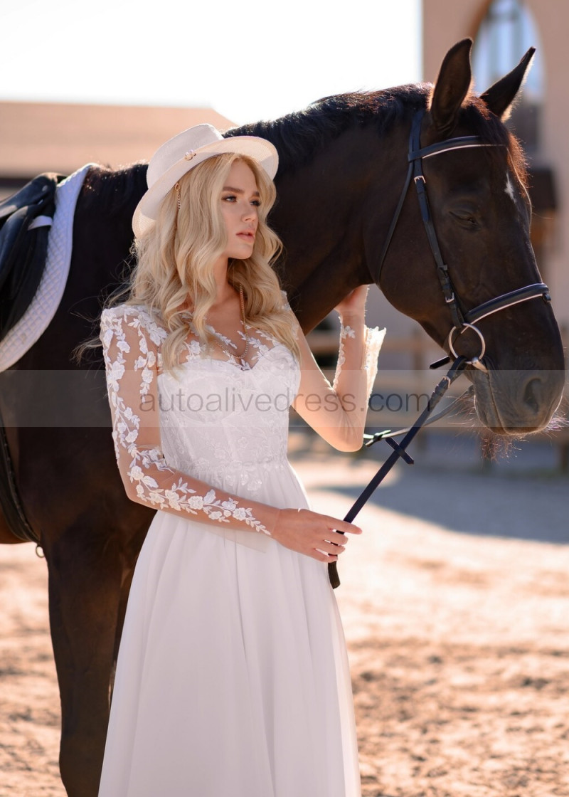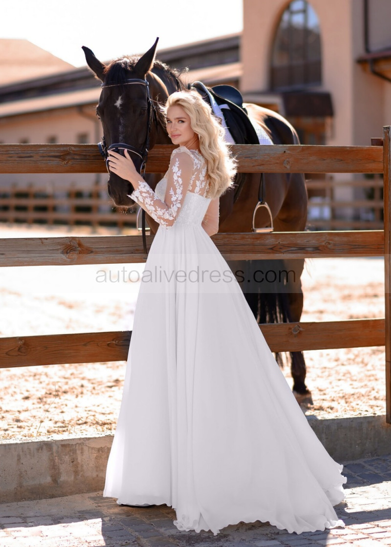 Long Sleeves Ivory Lace Chiffon Classic Wedding Dress