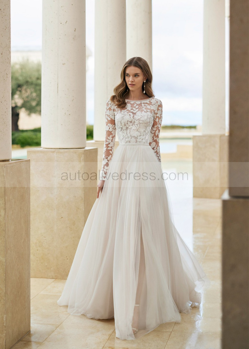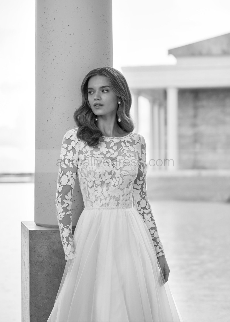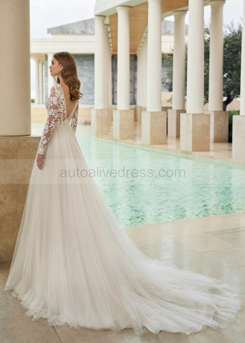 Long Sleeves Ivory Lace Tulle Famous Wedding Dress