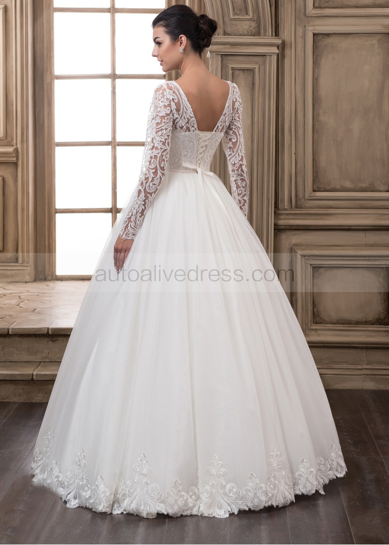 Long Sleeves Ivory Lace Tulle Stylish Wedding Dress