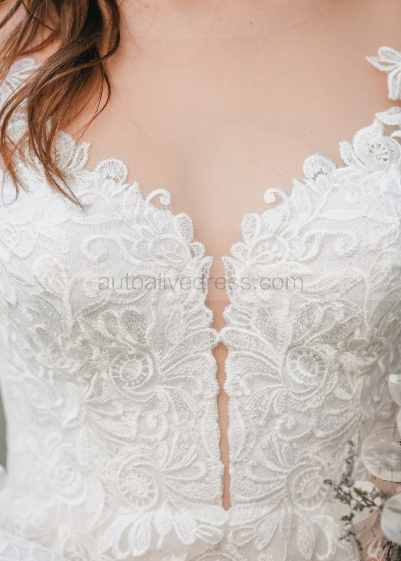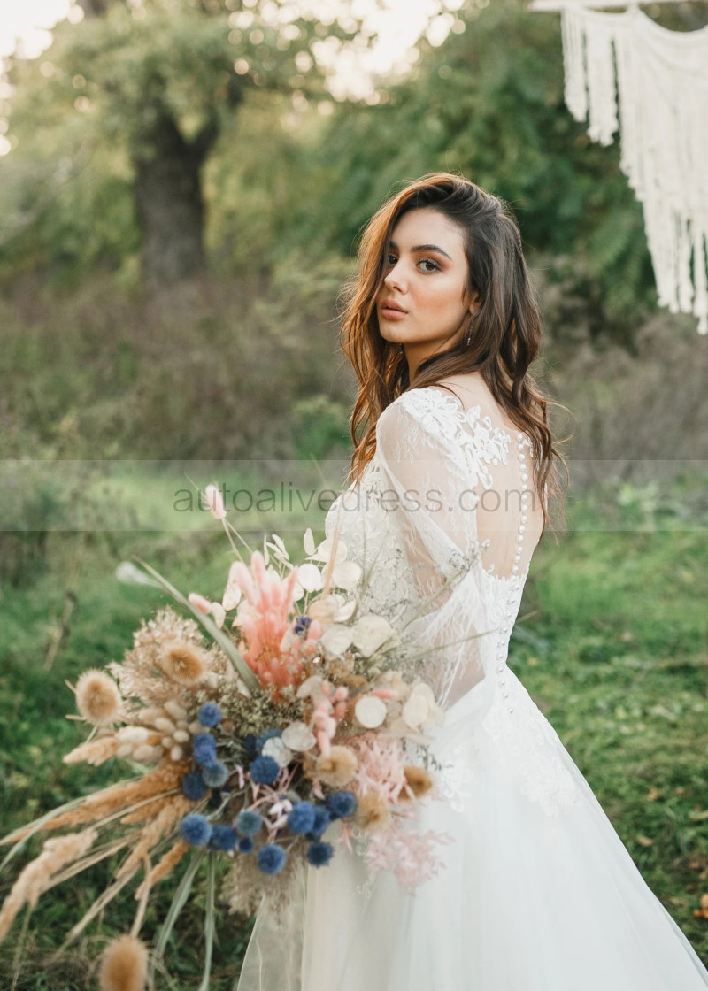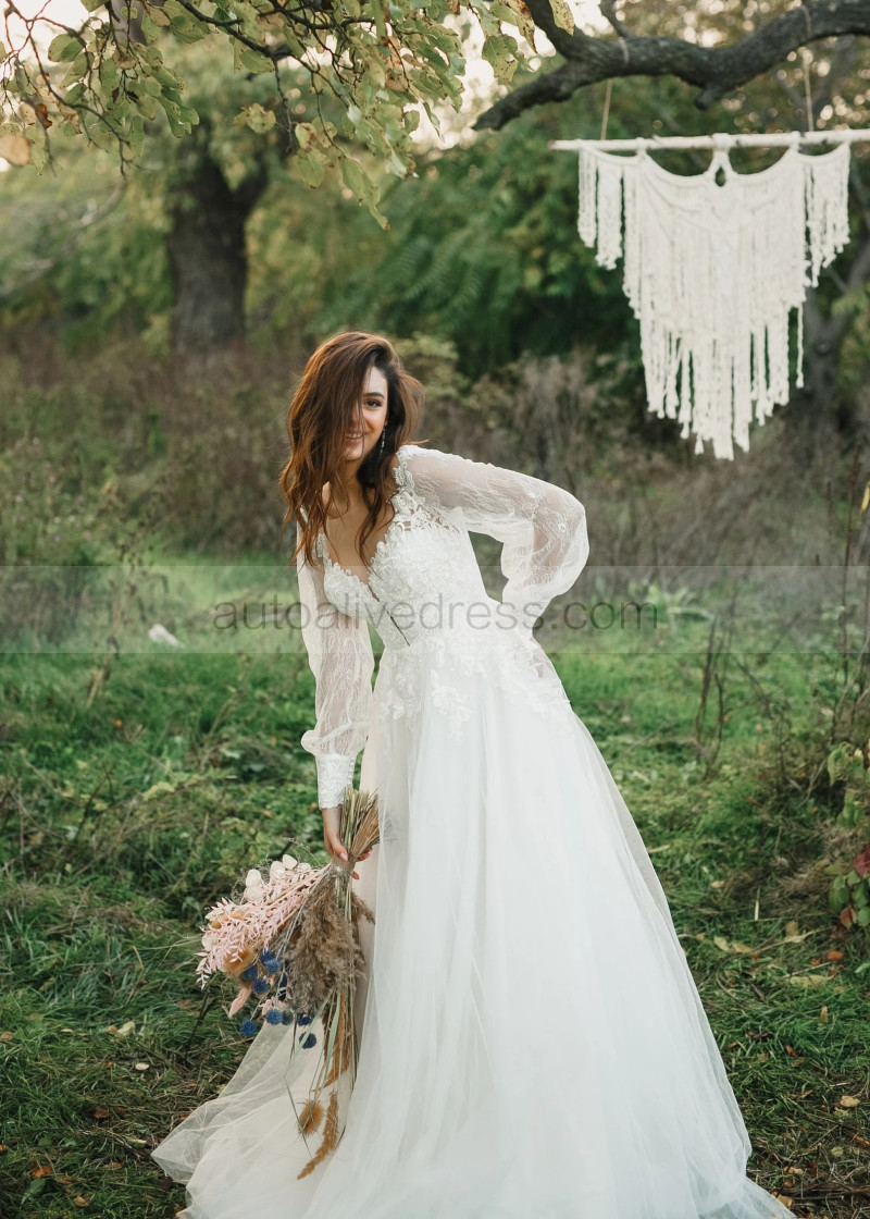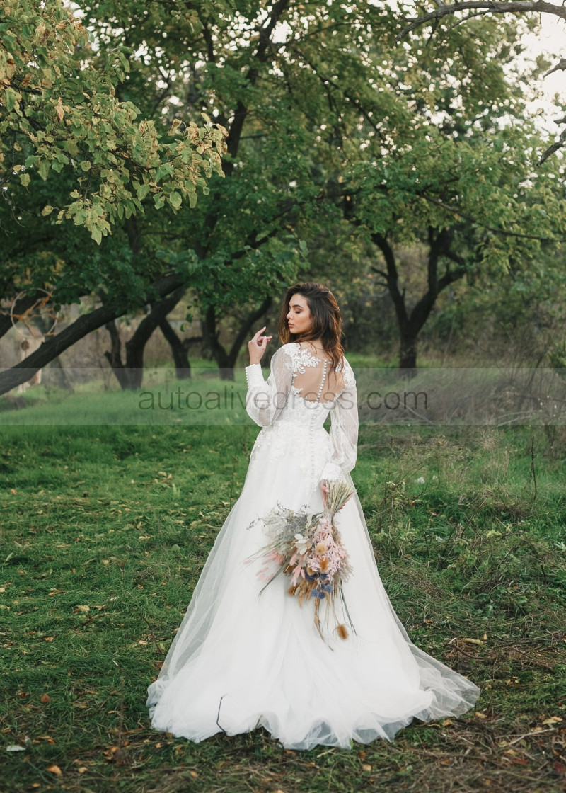 Long Sleeves Ivory Lace Tulle Sweet Wedding Dress