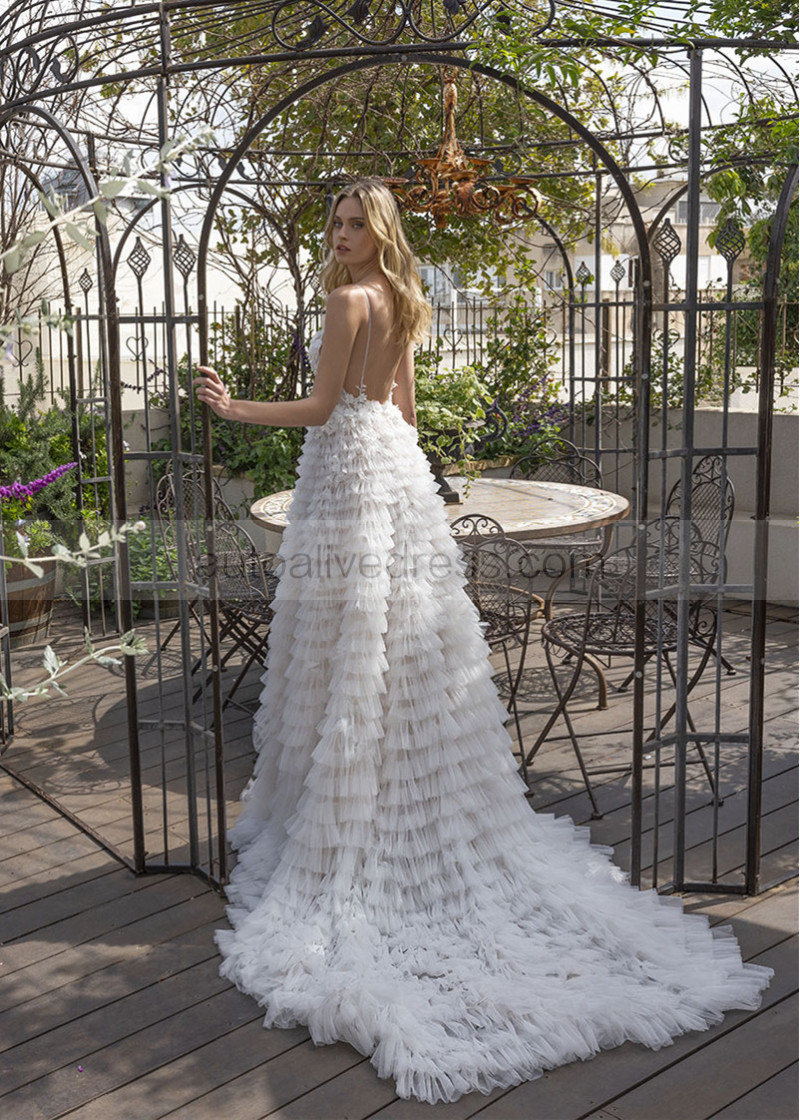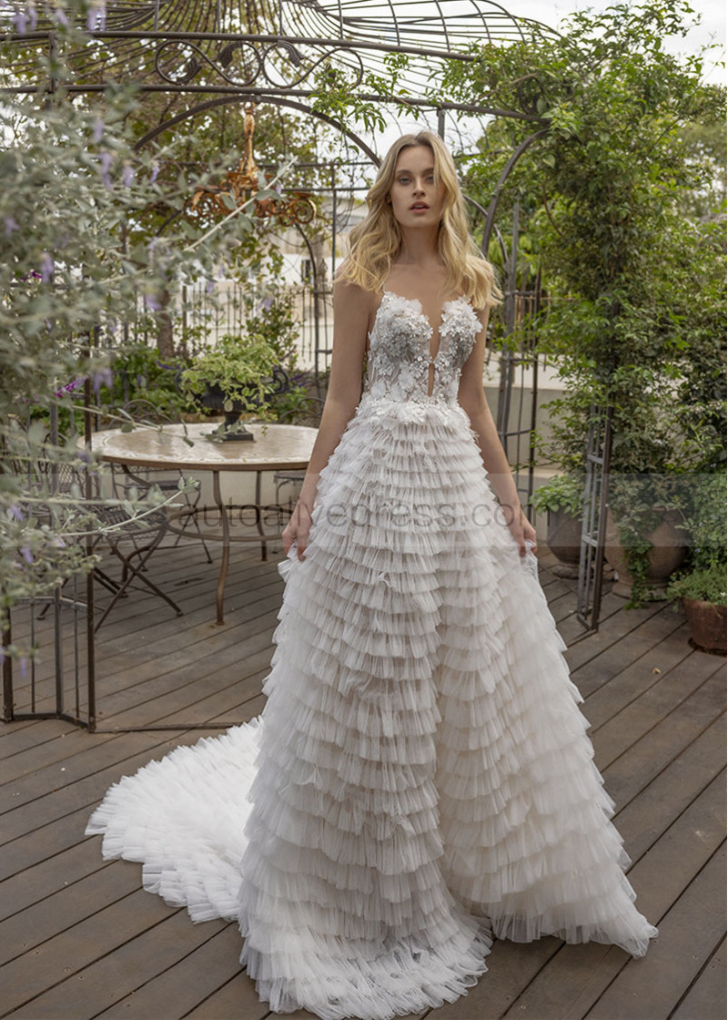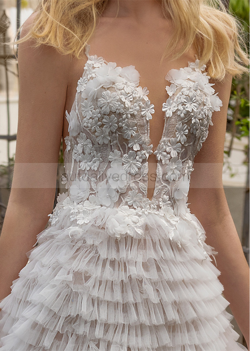 Modern Princess 3D Flowers Ruffled Wedding Dress