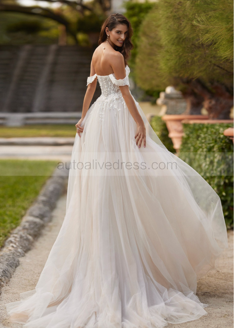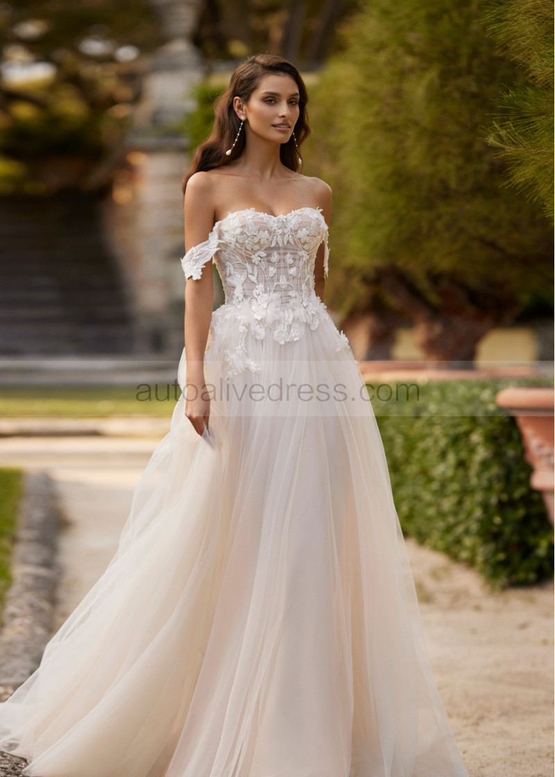 Off Shoulder Beaded 3D Lace Tulle Amazing Wedding Dress