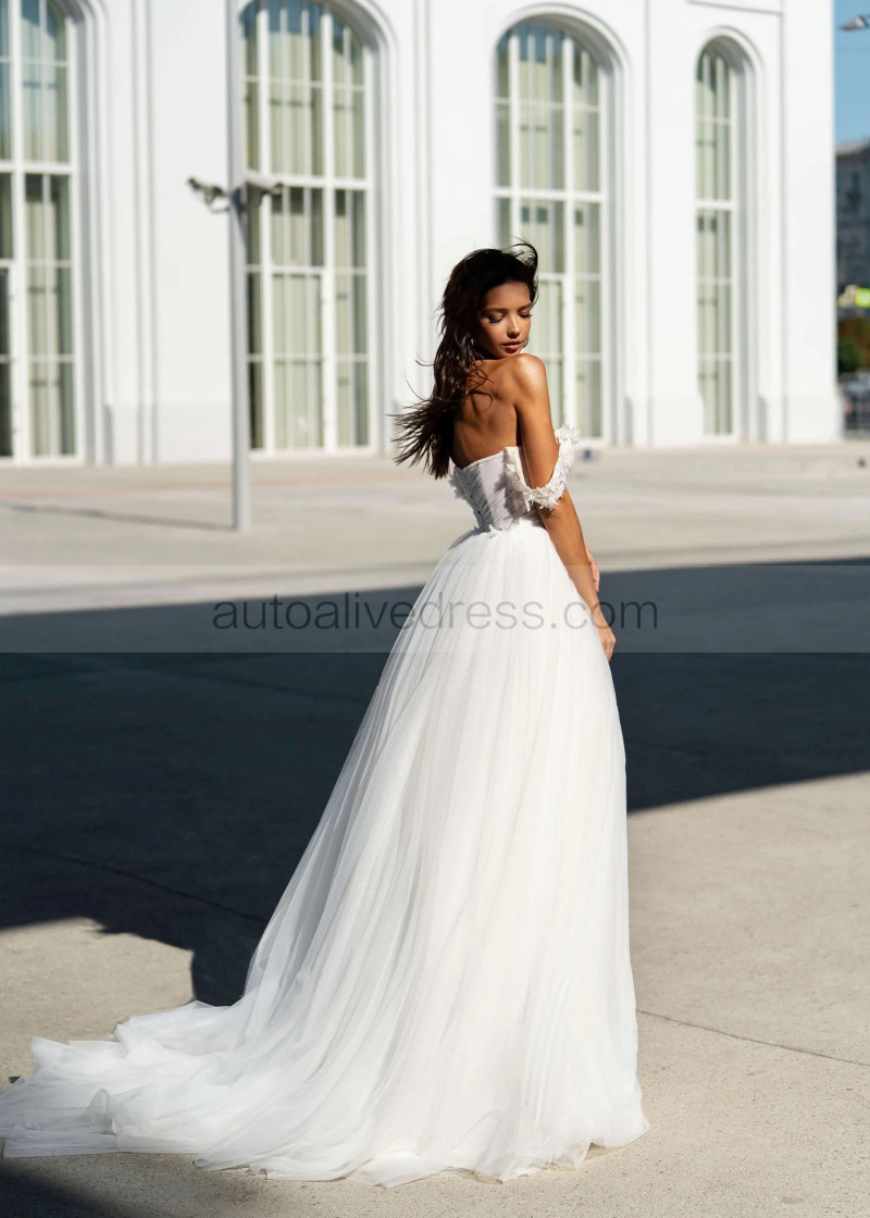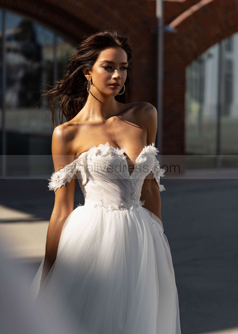 Off Shoulder Beaded White Tulle Dreamy Wedding Dress