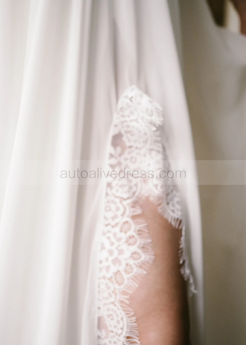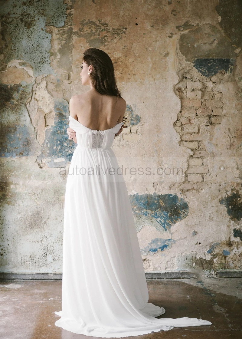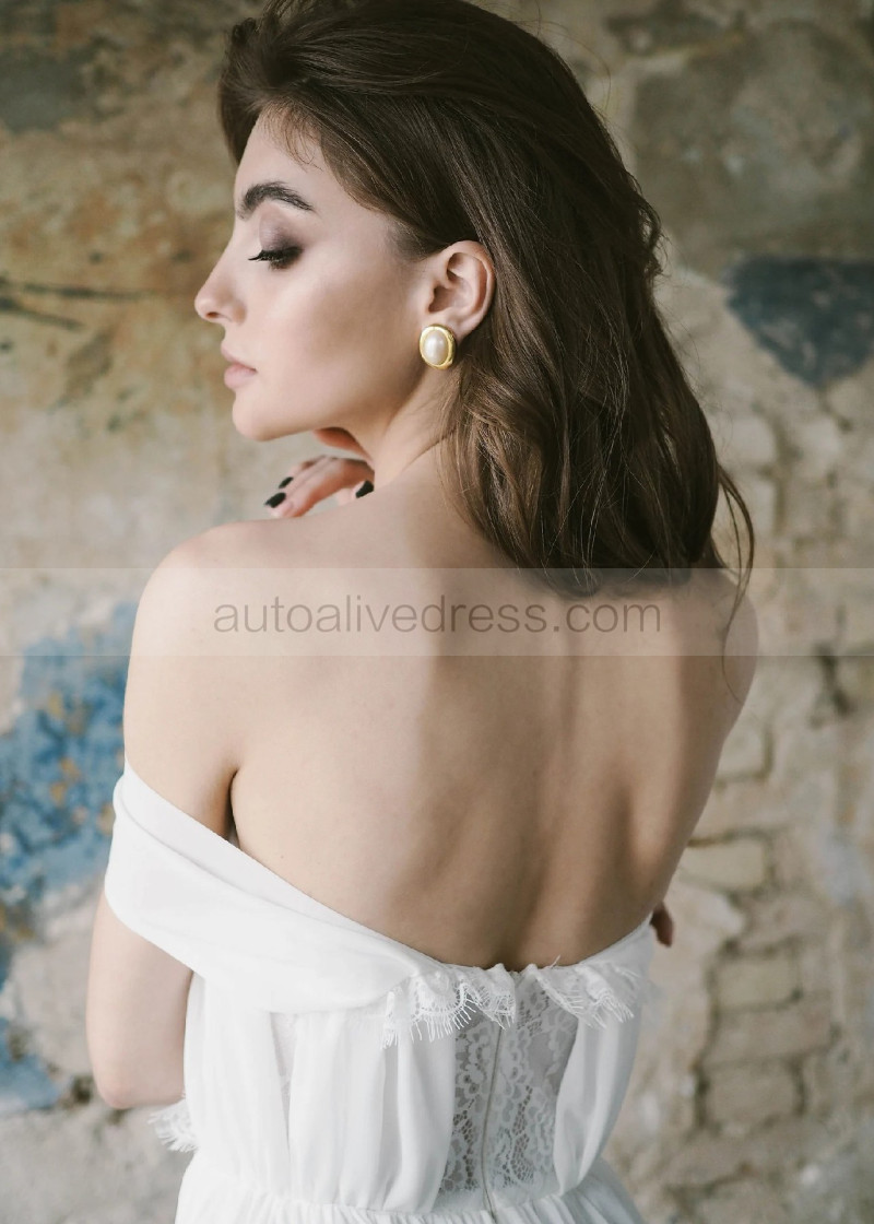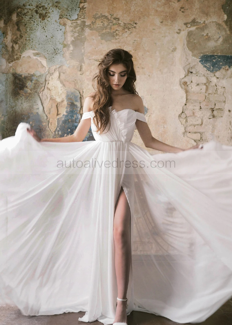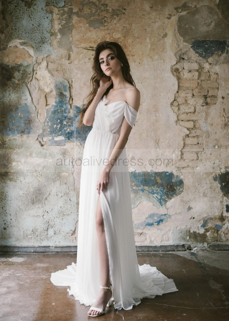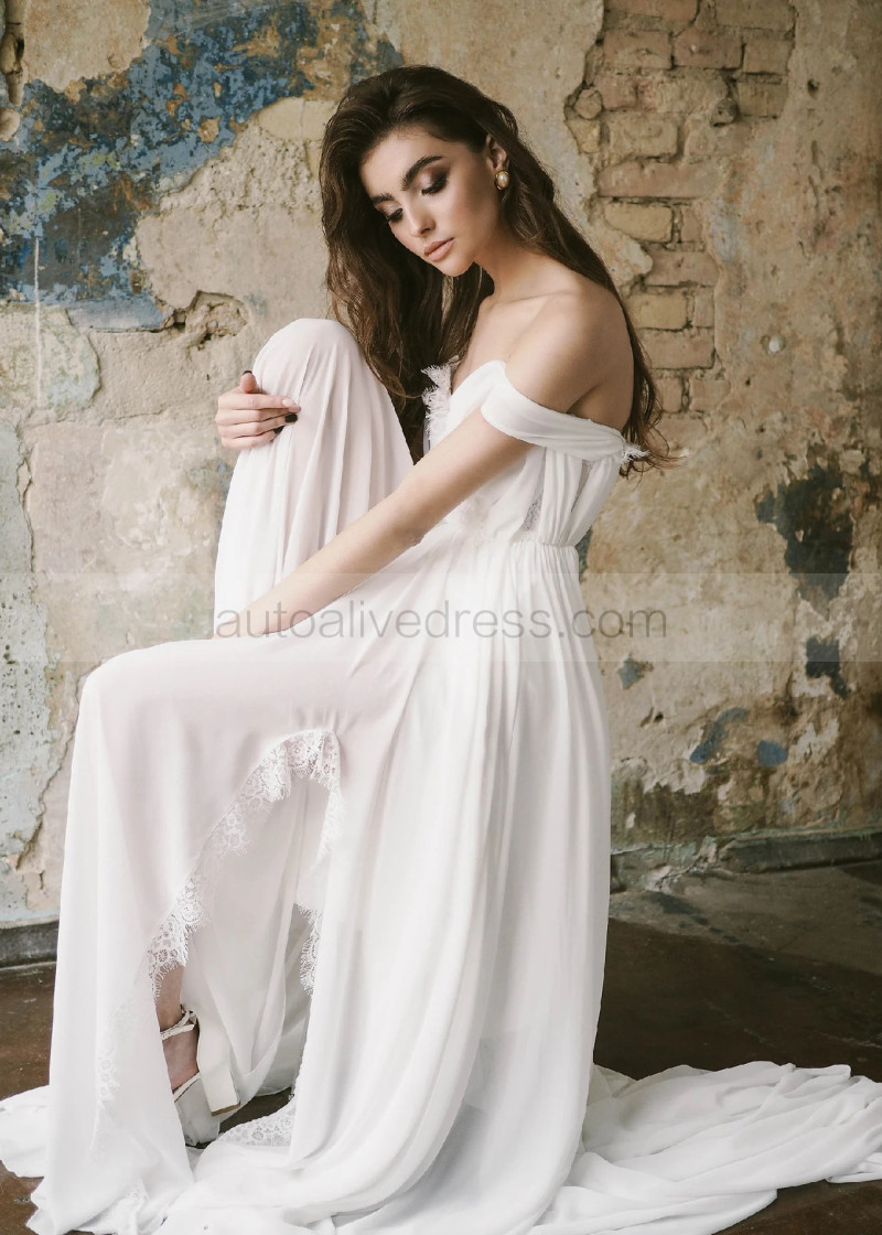 Off Shoulder Ivory Chiffon Lace Slit Bohemian Wedding Dress