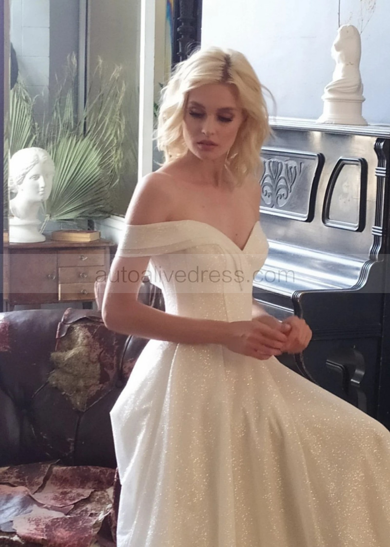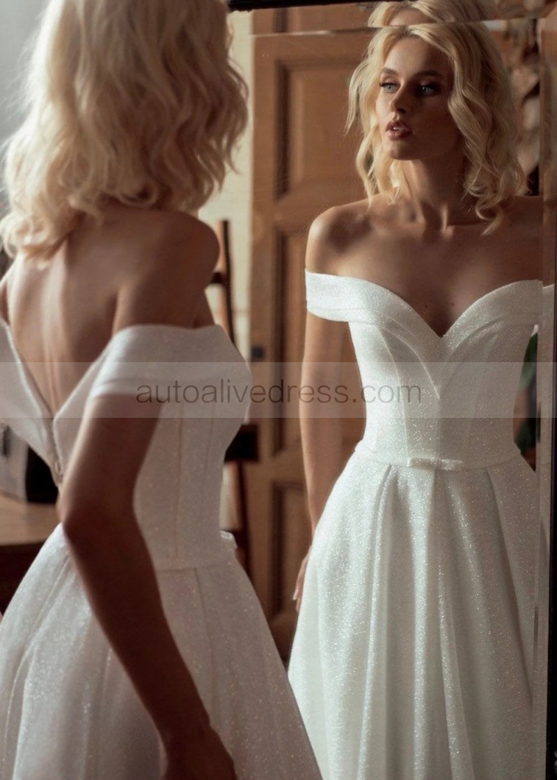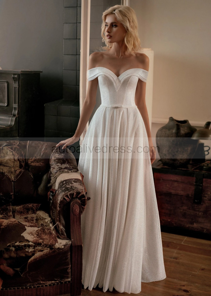 Off Shoulder Ivory Glitter Tulle Modern Wedding Dress