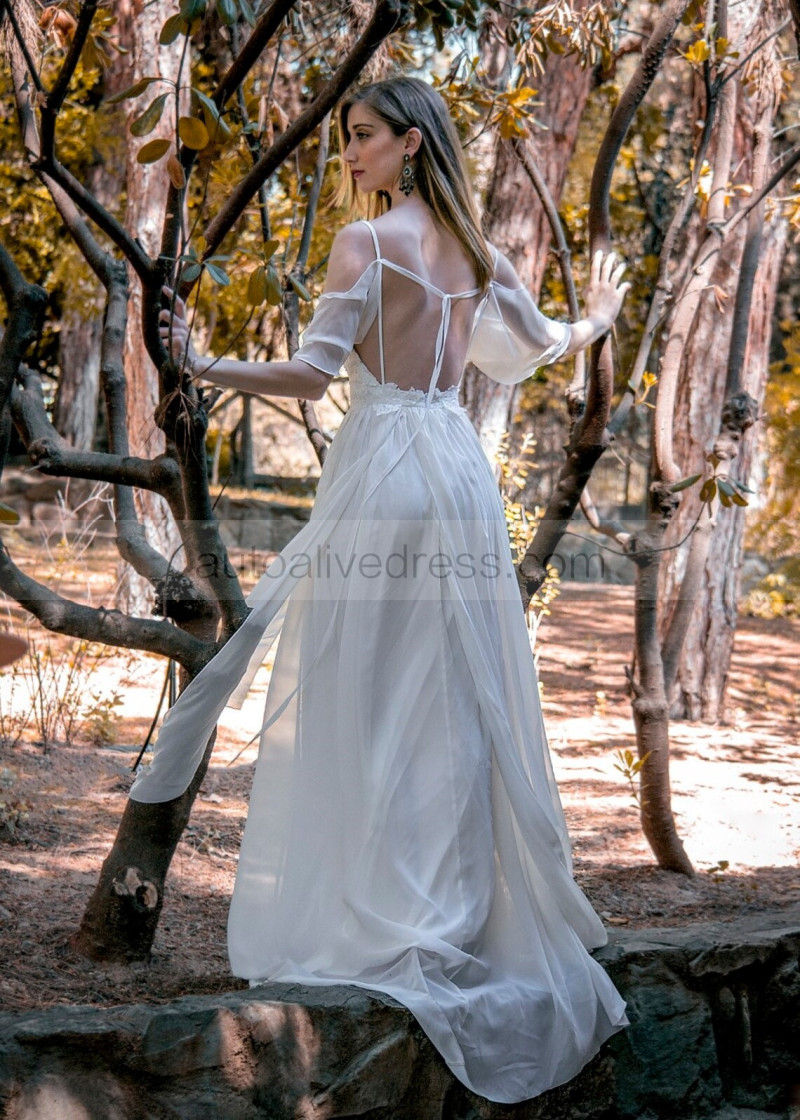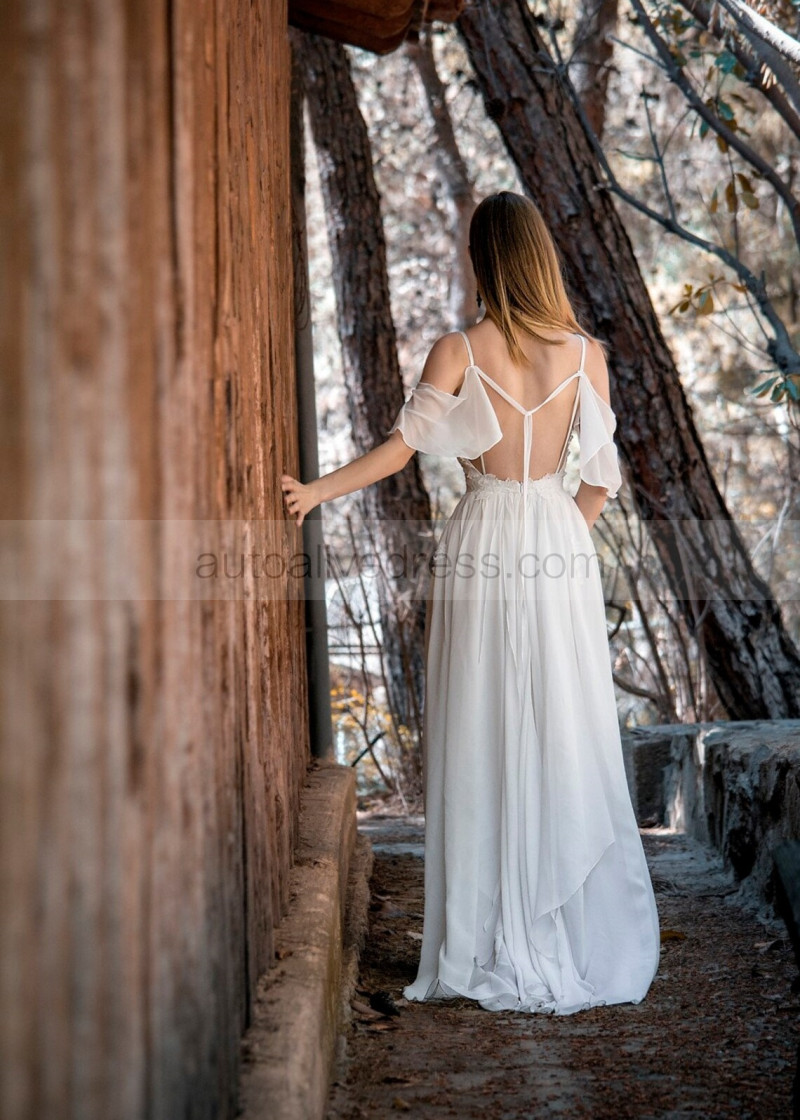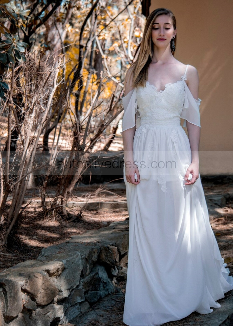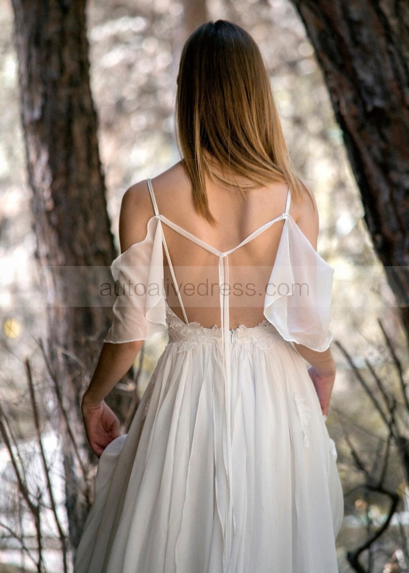 Off Shoulder Ivory Lace Chiffon Handmade Sexy Wedding Dress