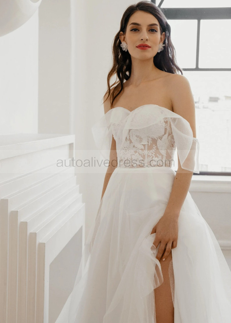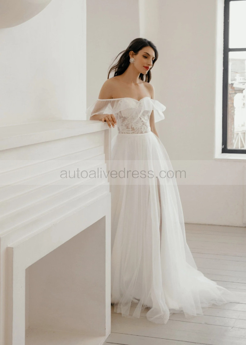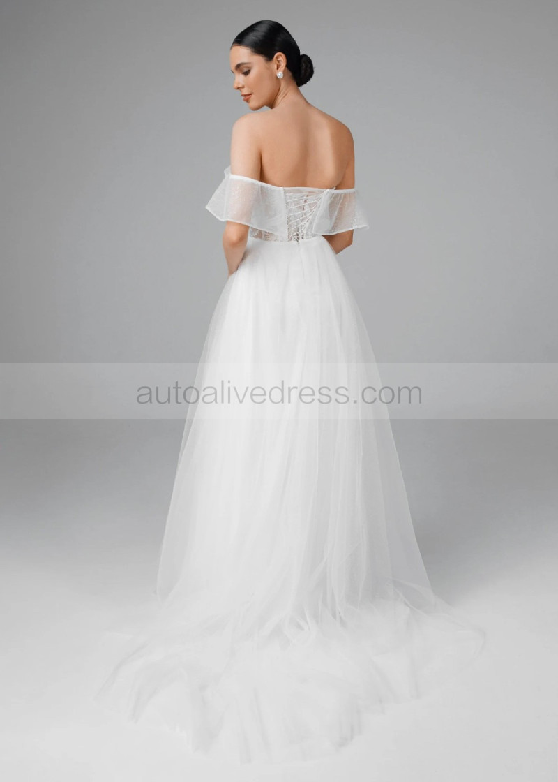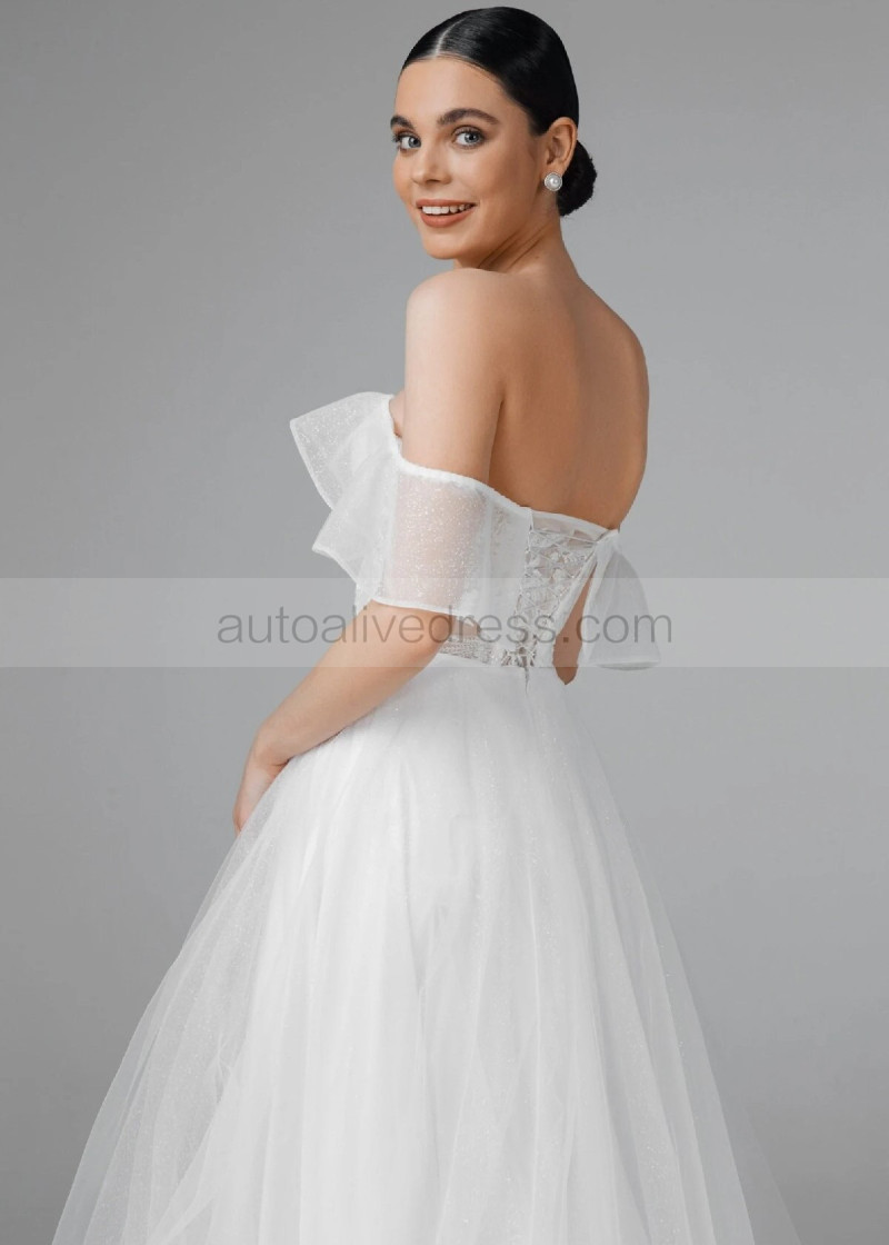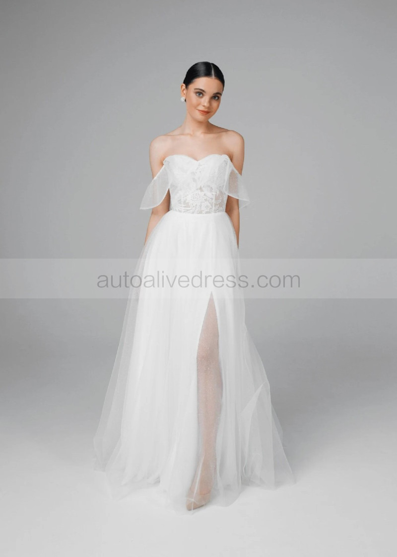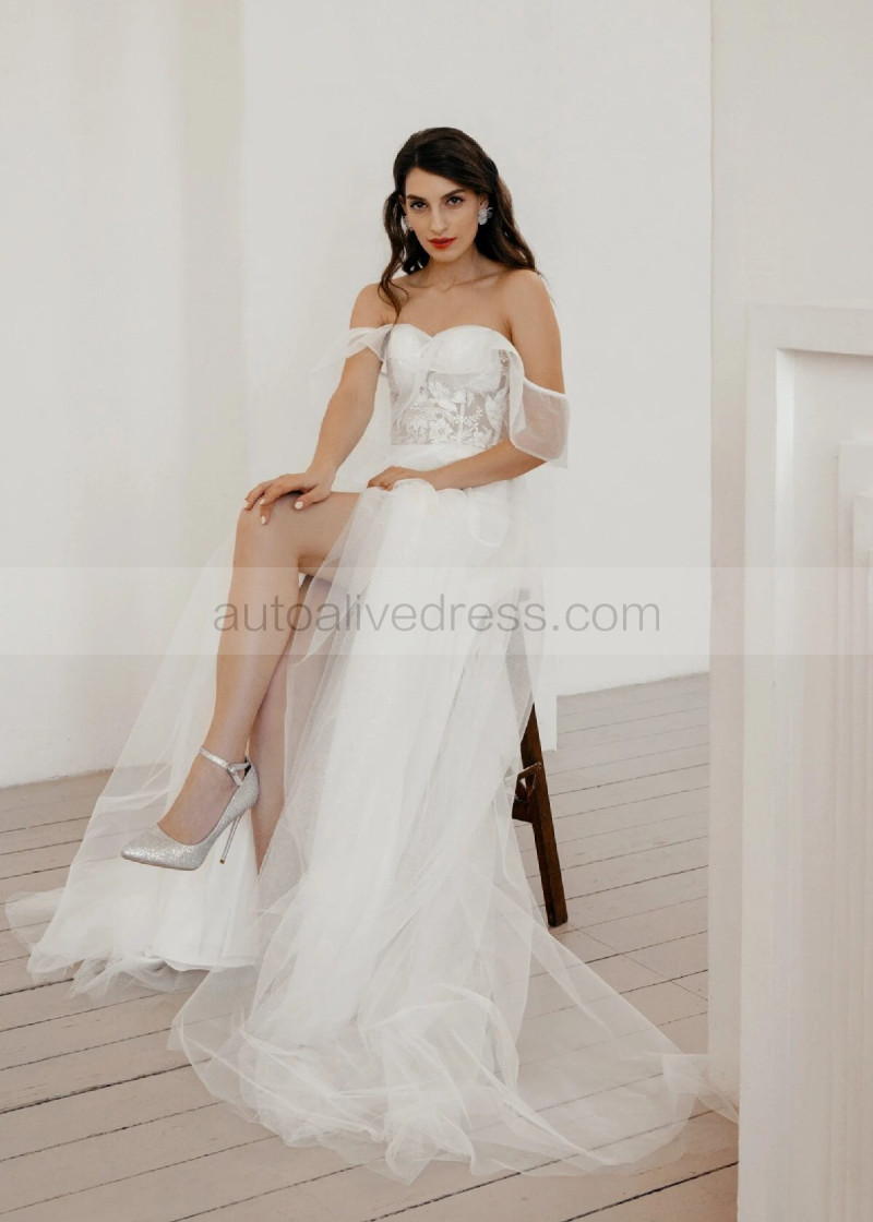 Off Shoulder Ivory Lace Sparkly Tulle Gorgeous Wedding Dress
