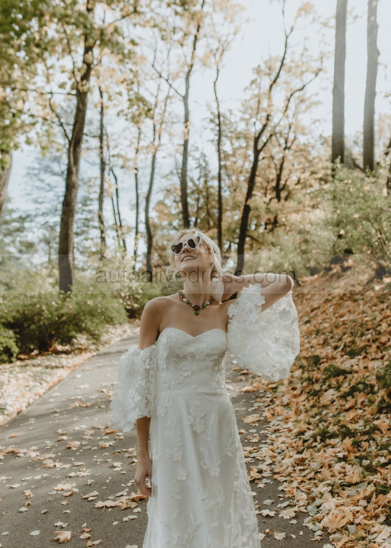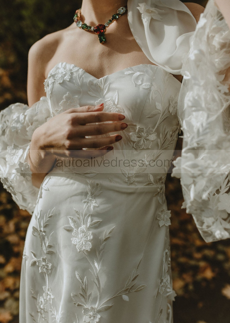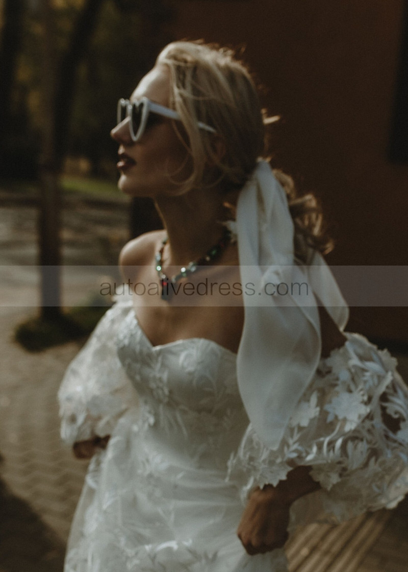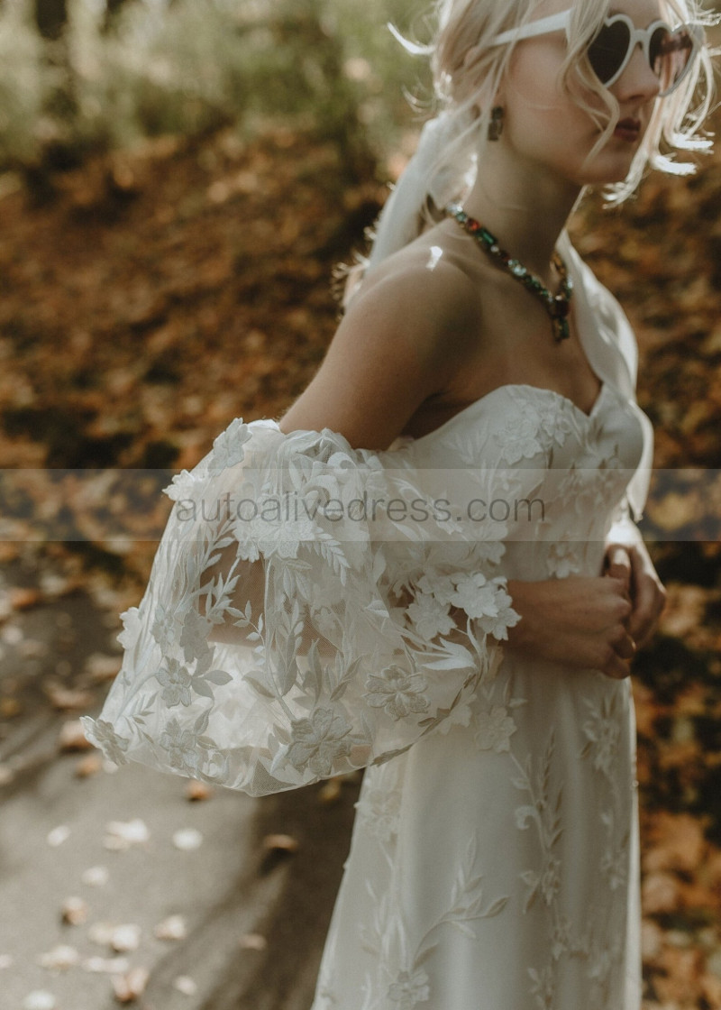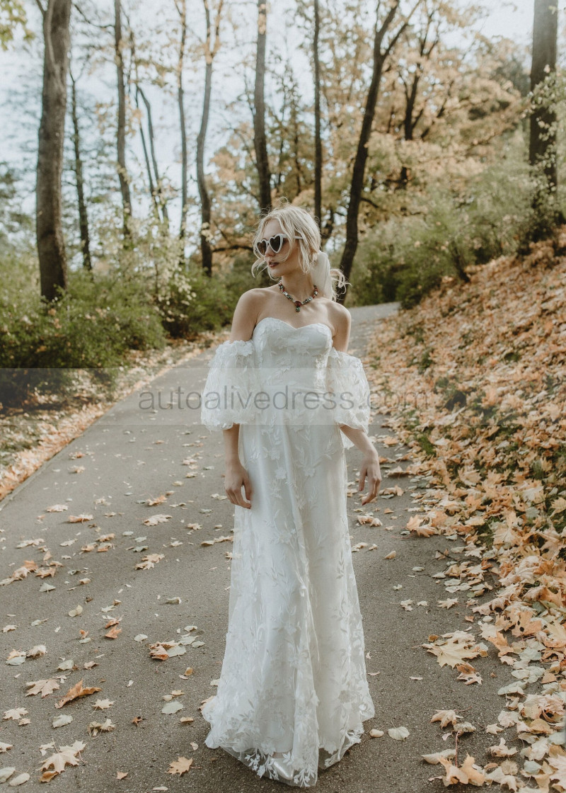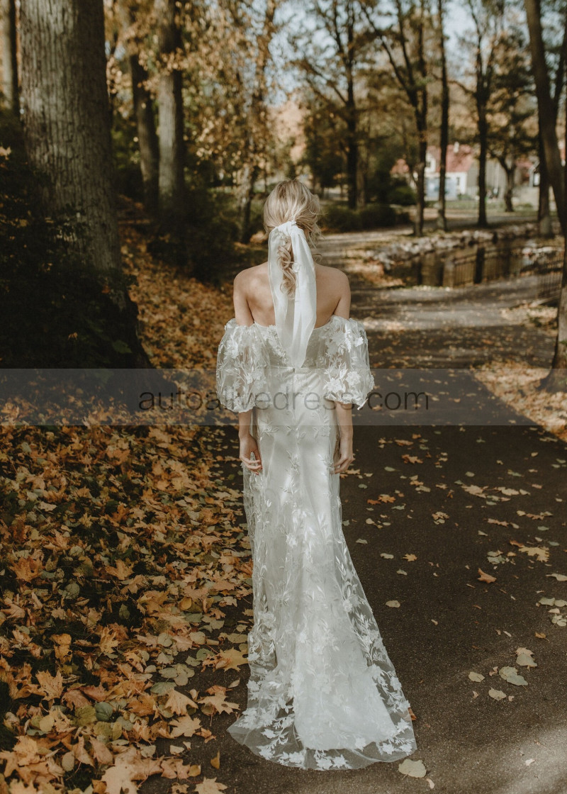 Off Shoulder Ivory Lace Tulle Floral Dreamy Wedding Dress
