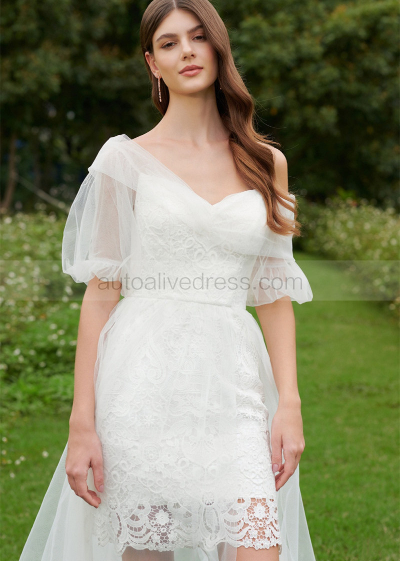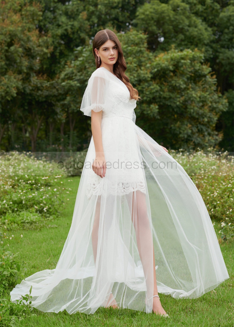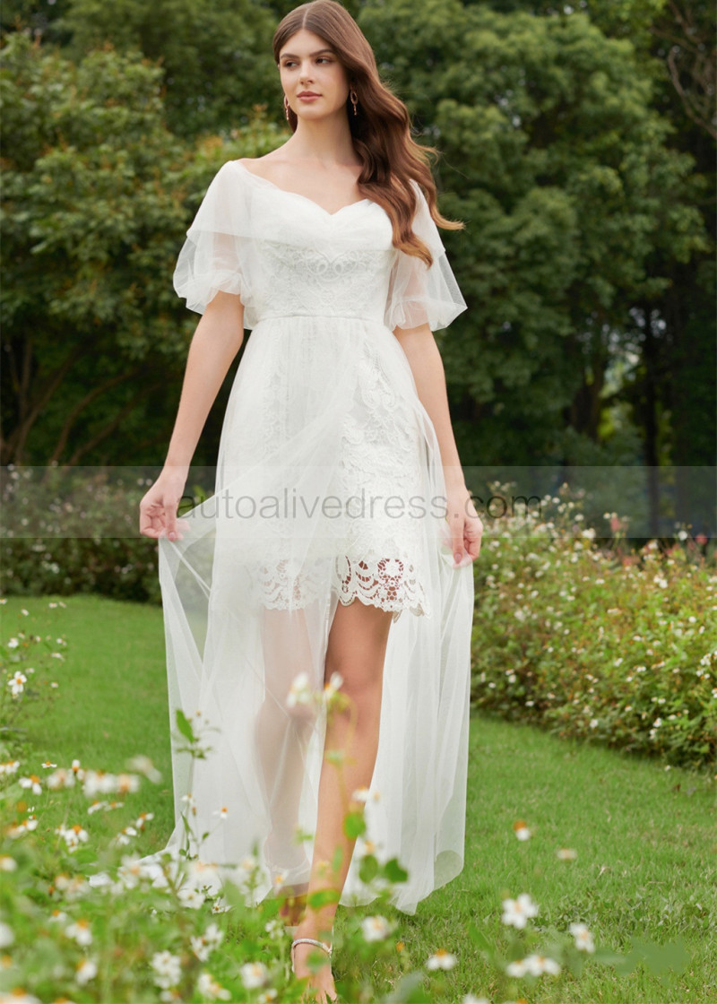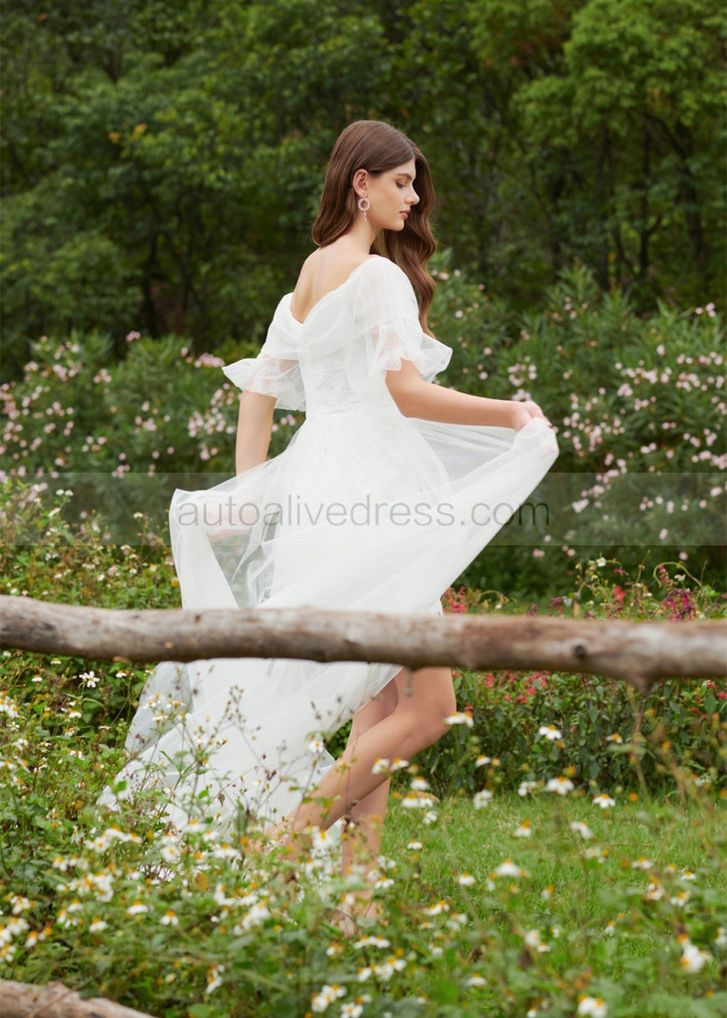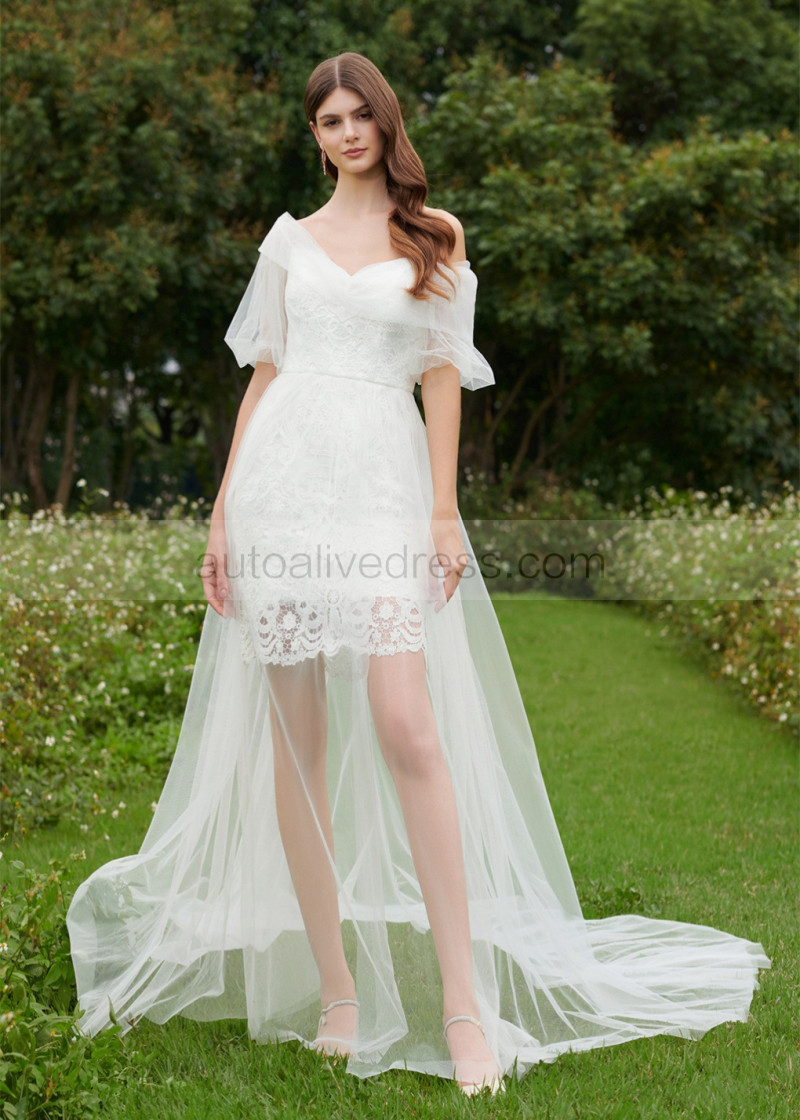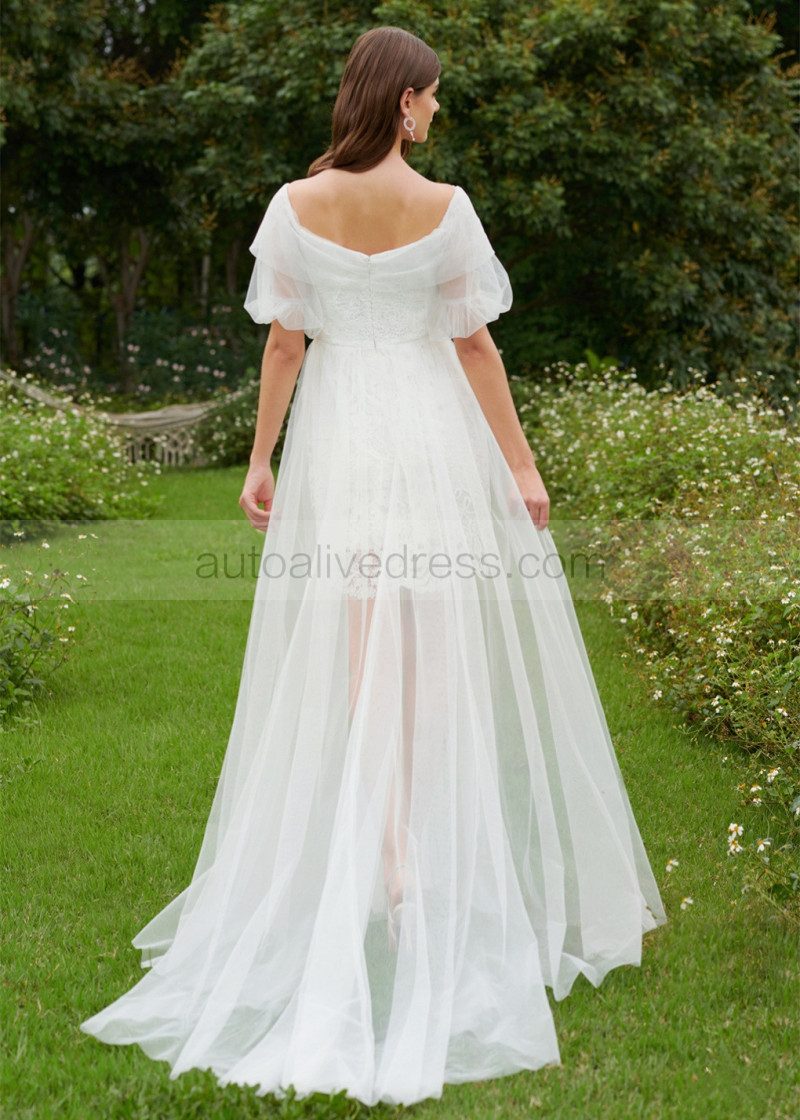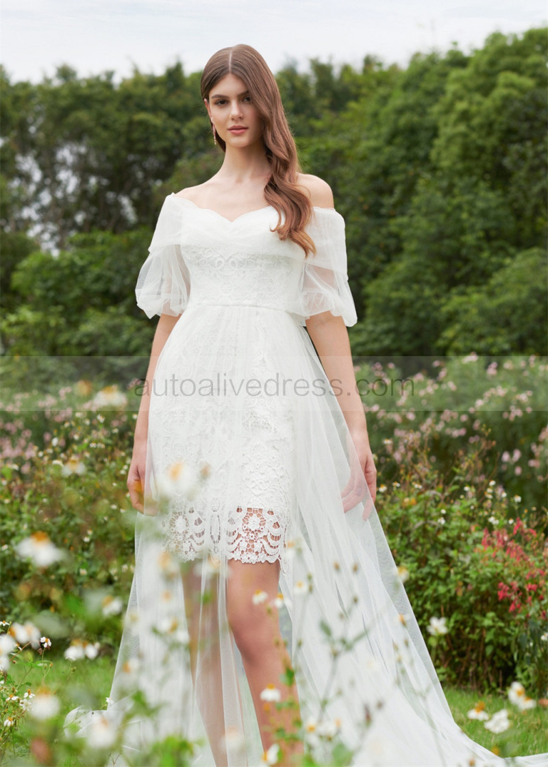 Off Shoulder Ivory Lace Tulle Garden Wedding Dress