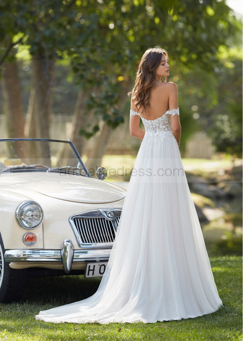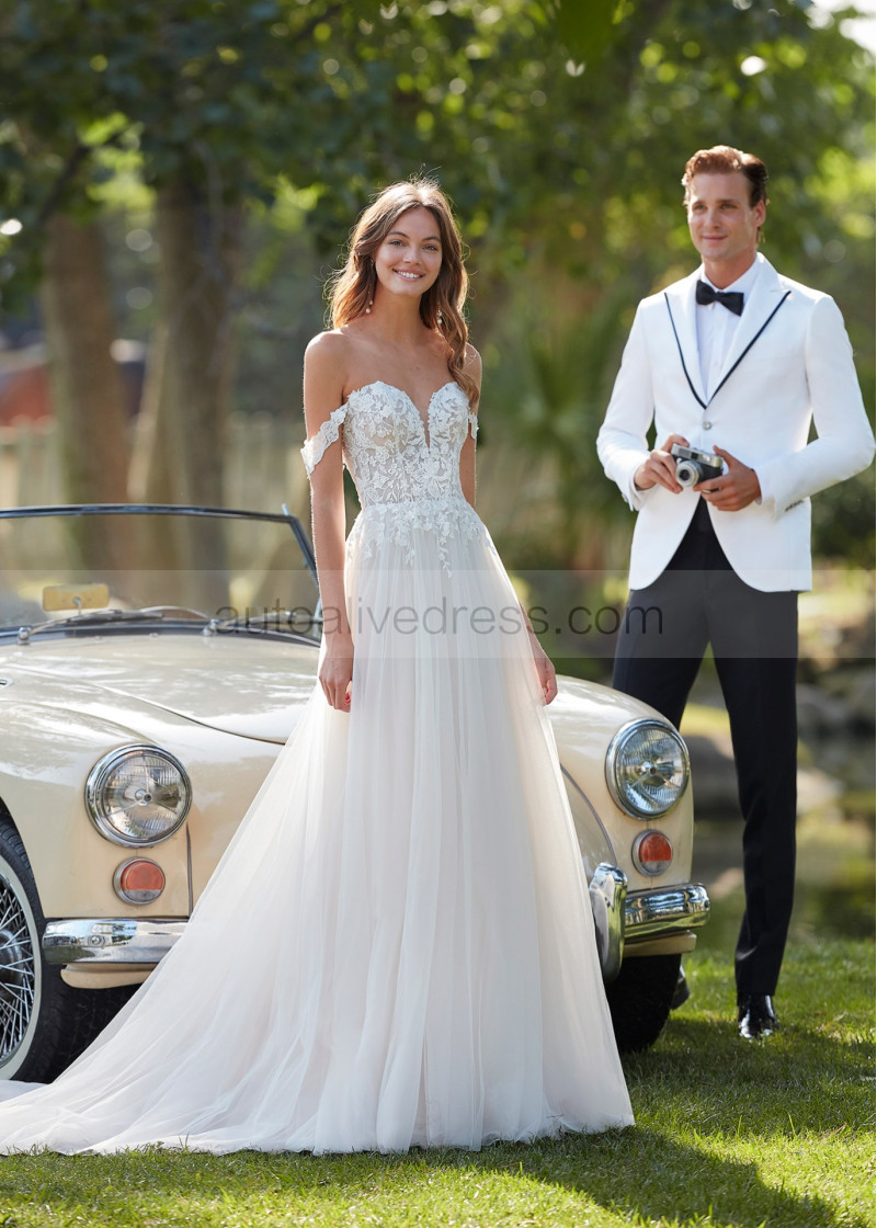 Off Shoulder Ivory Lace Tulle Romantic Wedding Dress